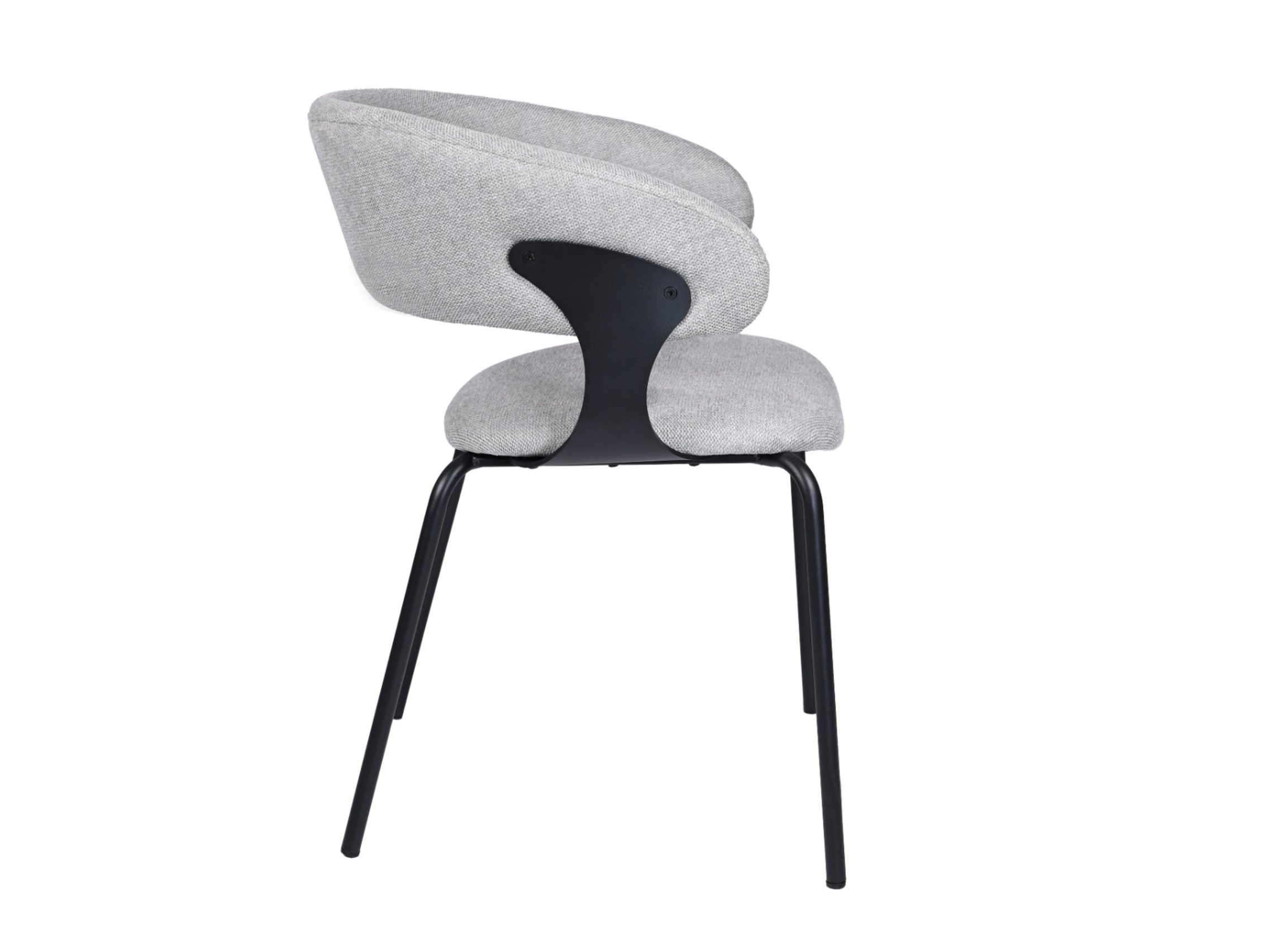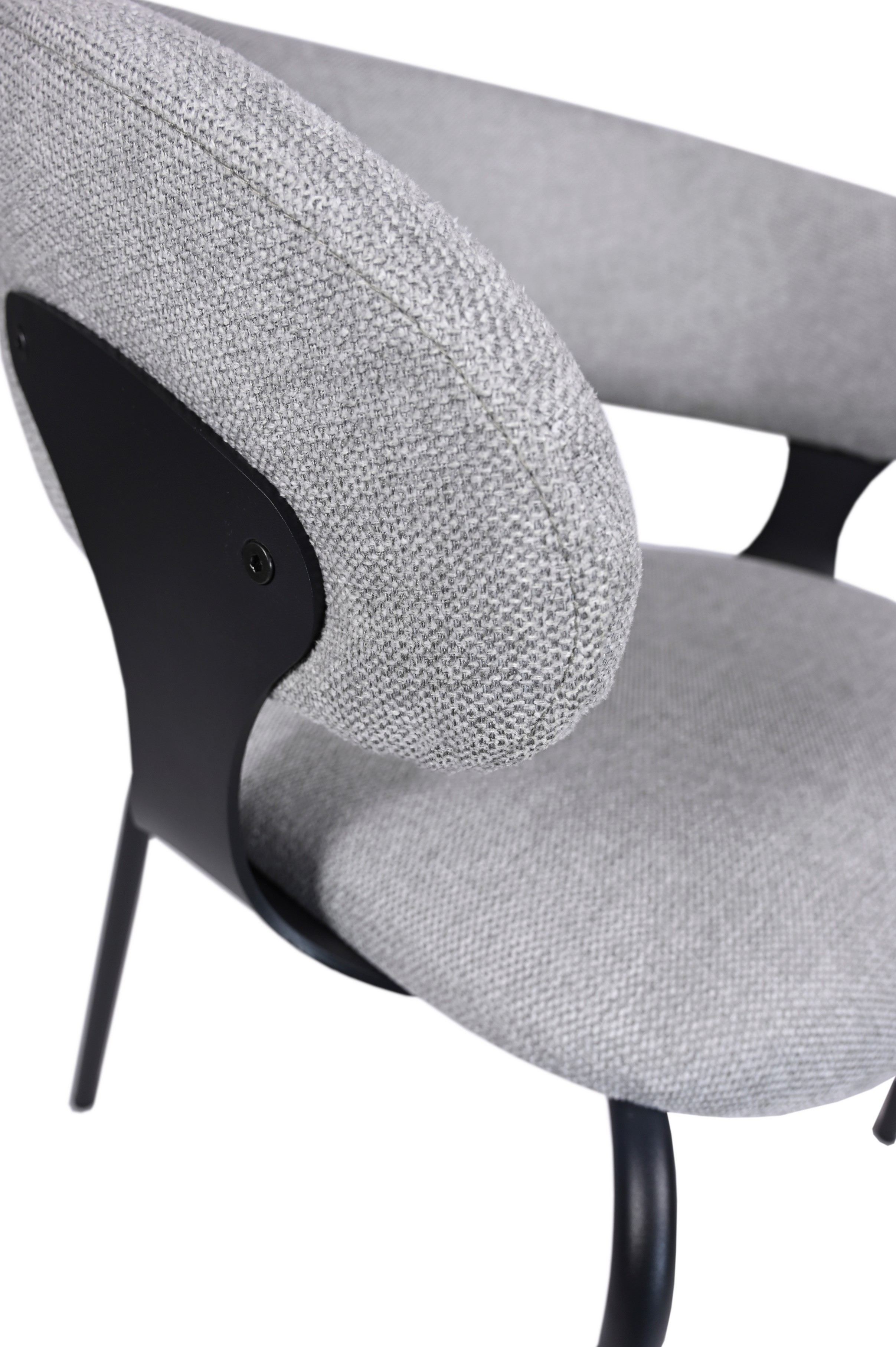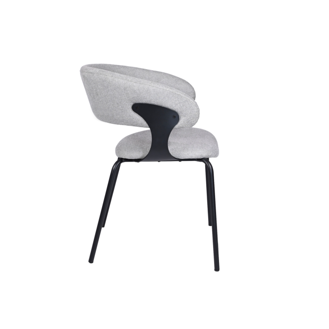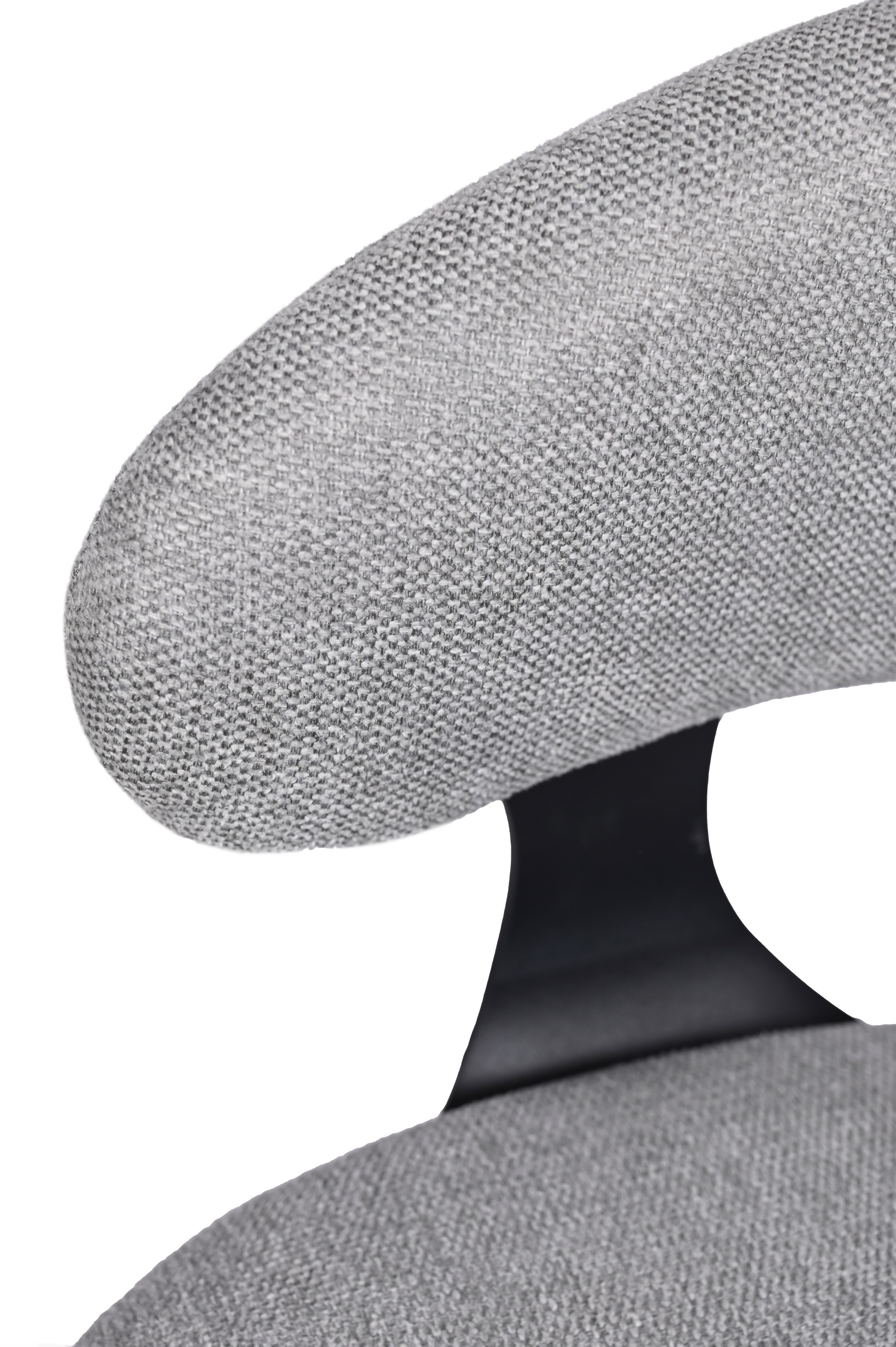 Оббивка з шенілу має приємну на дотик фактуру та стриманий, благородний вигляд. Відтінок "попільний" — універсальний і водночас стильний, чудово поєднується з темними, теплими та природними тонами в інтер'єрі. Чорні металеві ніжки надають конструкції візуальної легкості та стійкості.