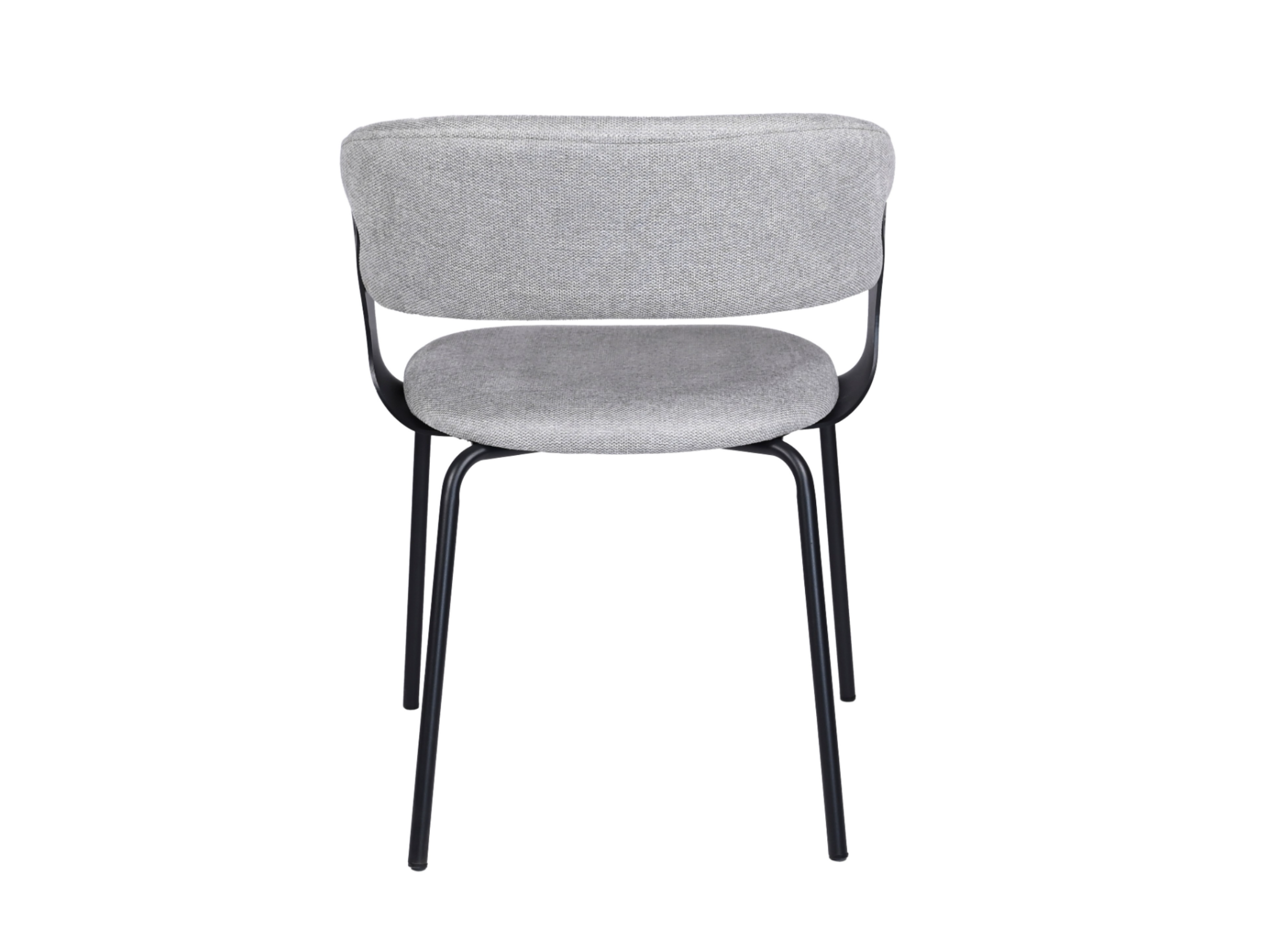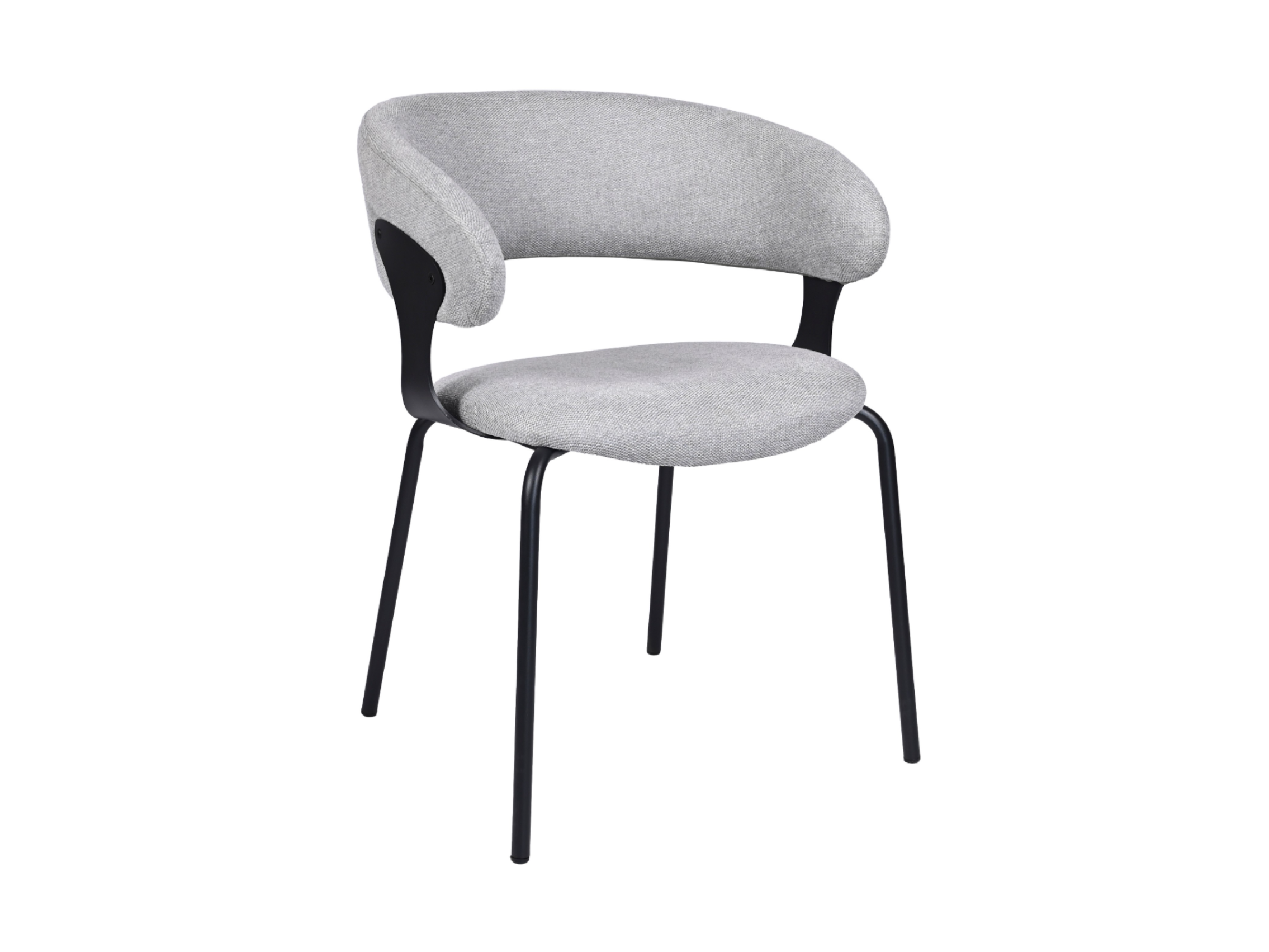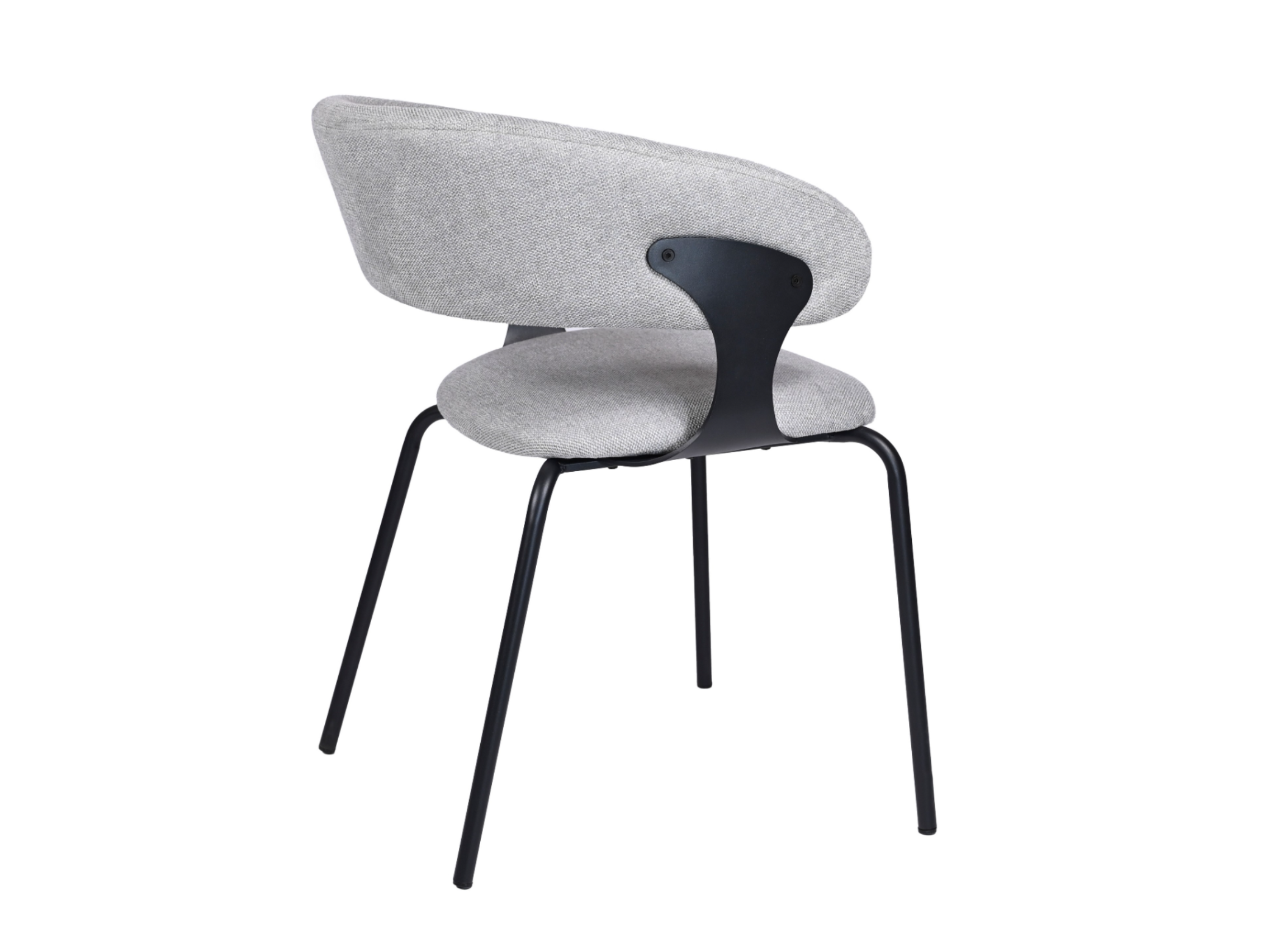 Оббивка з шенілу має приємну на дотик фактуру та стриманий, благородний вигляд. Відтінок "попільний" — універсальний і водночас стильний, чудово поєднується з темними, теплими та природними тонами в інтер'єрі. Чорні металеві ніжки надають конструкції візуальної легкості та стійкості.