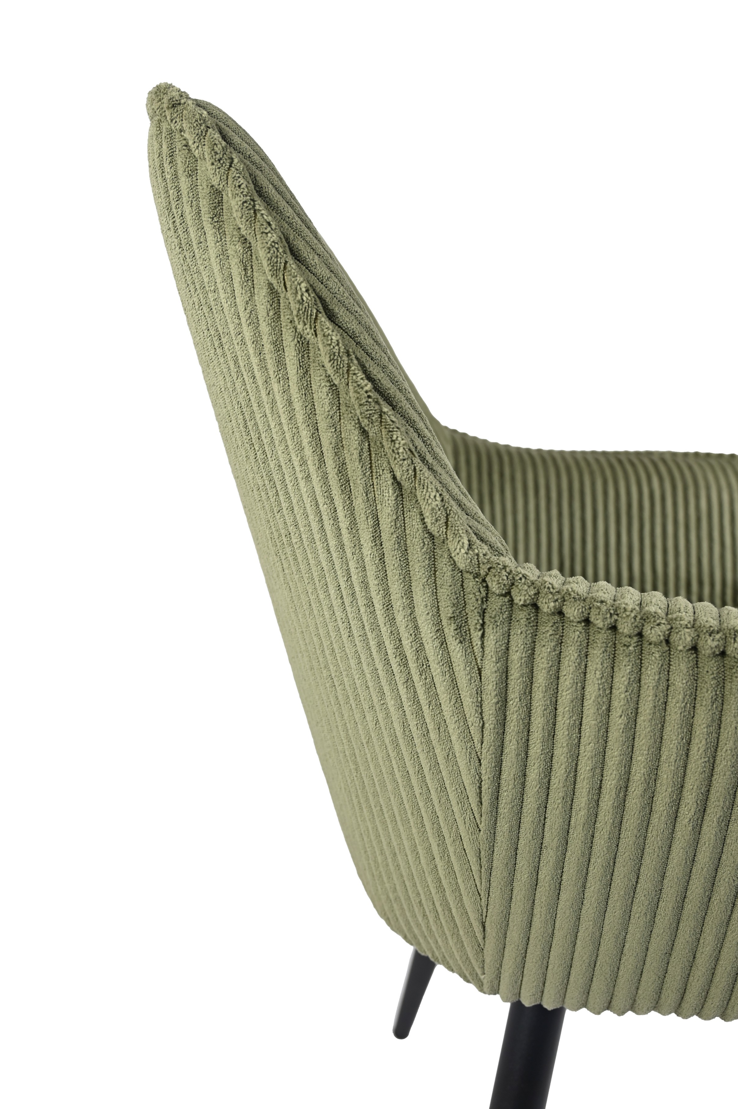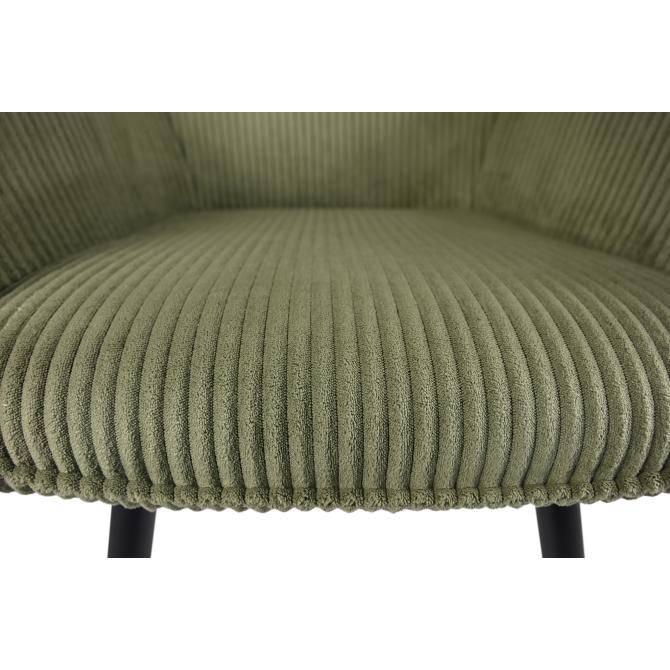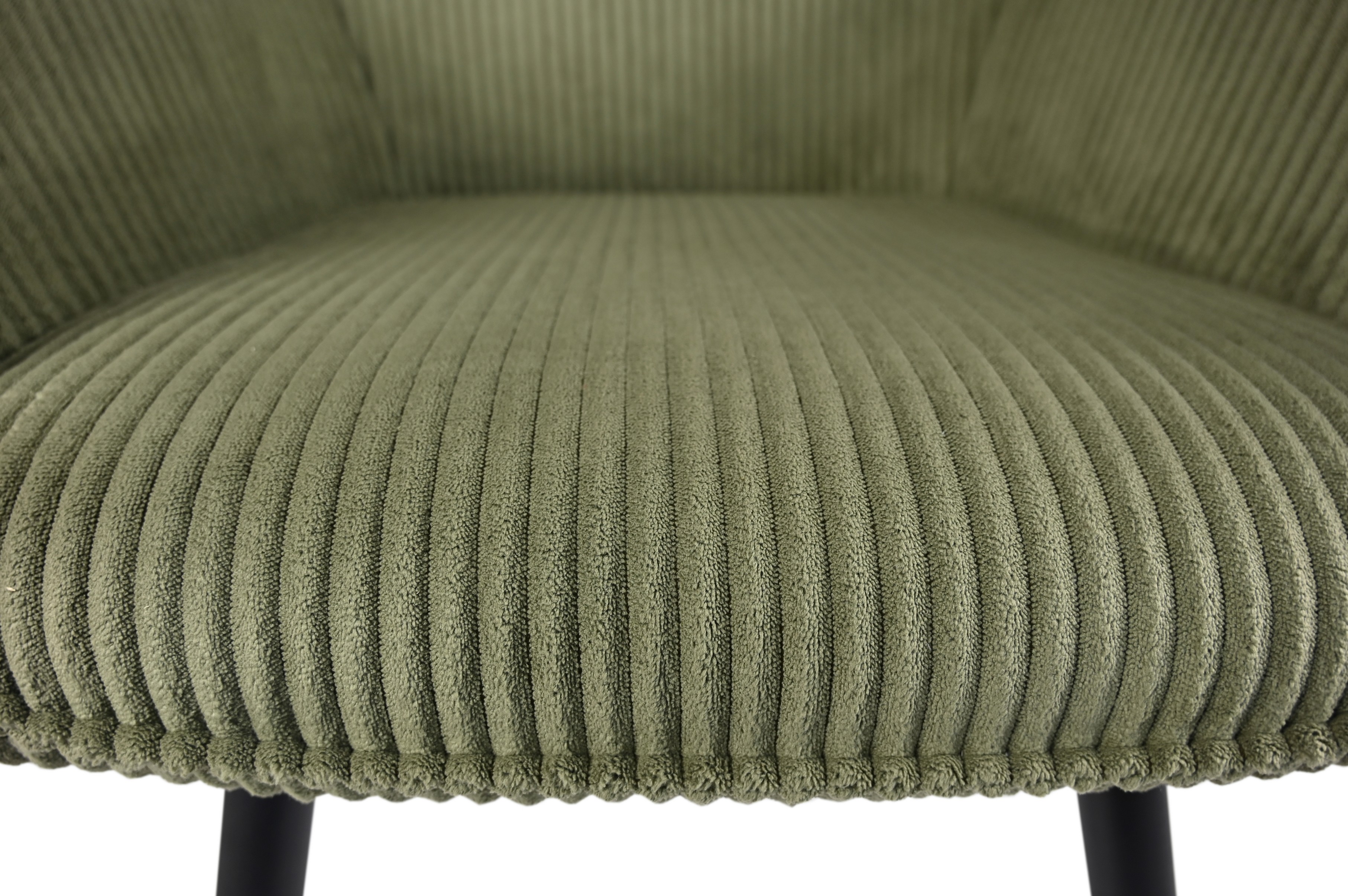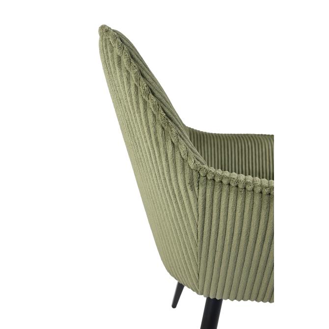 Ця модель має унікальне поєднання м'якості й сучасного стилю. Оббивка з вельвету рубчик у теплому відтінку "мигдаль" виглядає розкішно і приємно на дотик. Колір мигдалю створює атмосферу спокою та затишку, що гармонійно доповнюється ніжним капучино в металевих ніжках, додаючи конструкції елегантності та легкості.