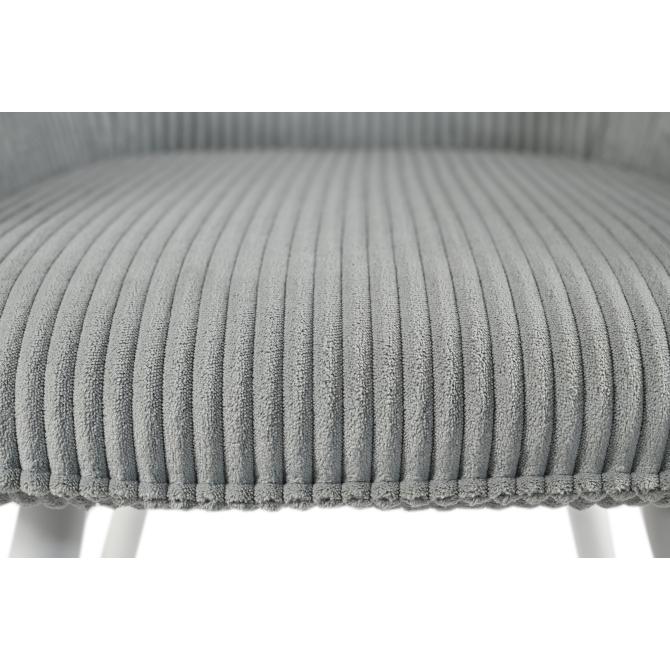 Ця модель має унікальне поєднання м'якості й сучасного стилю. Оббивка з вельвету рубчик у теплому відтінку "мигдаль" виглядає розкішно і приємно на дотик. Колір мигдалю створює атмосферу спокою та затишку, що гармонійно доповнюється ніжним капучино в металевих ніжках, додаючи конструкції елегантності та легкості.