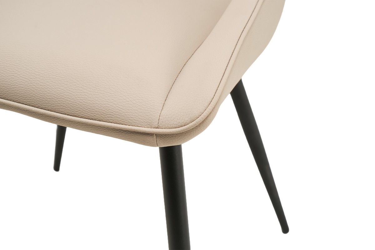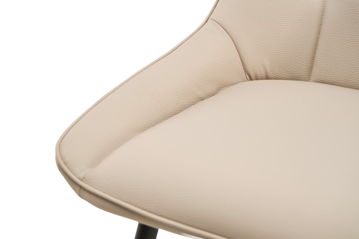 Стілець обтягнутий шкірзамінником, який виглядає естетично та нагадує натуральну шкіру. Цей матеріал легко чистити, що є важливим для підтримки чистоти меблів у повсякденному використанні.