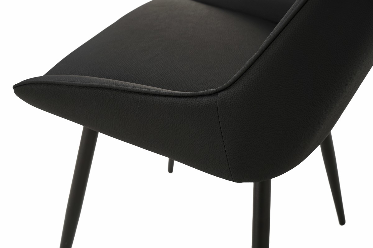 Стілець обтягнутий шкірзамінником, який виглядає естетично та нагадує натуральну шкіру. Цей матеріал легко чистити, що є важливим для підтримки чистоти меблів у повсякденному використанні.