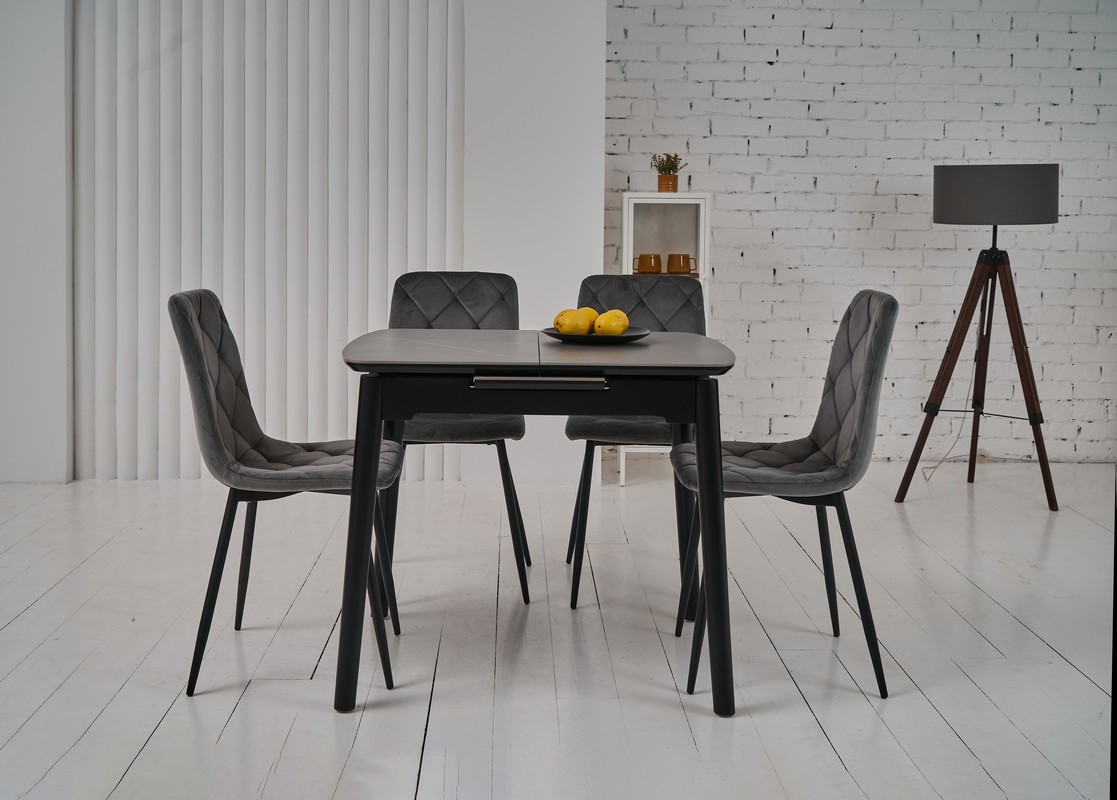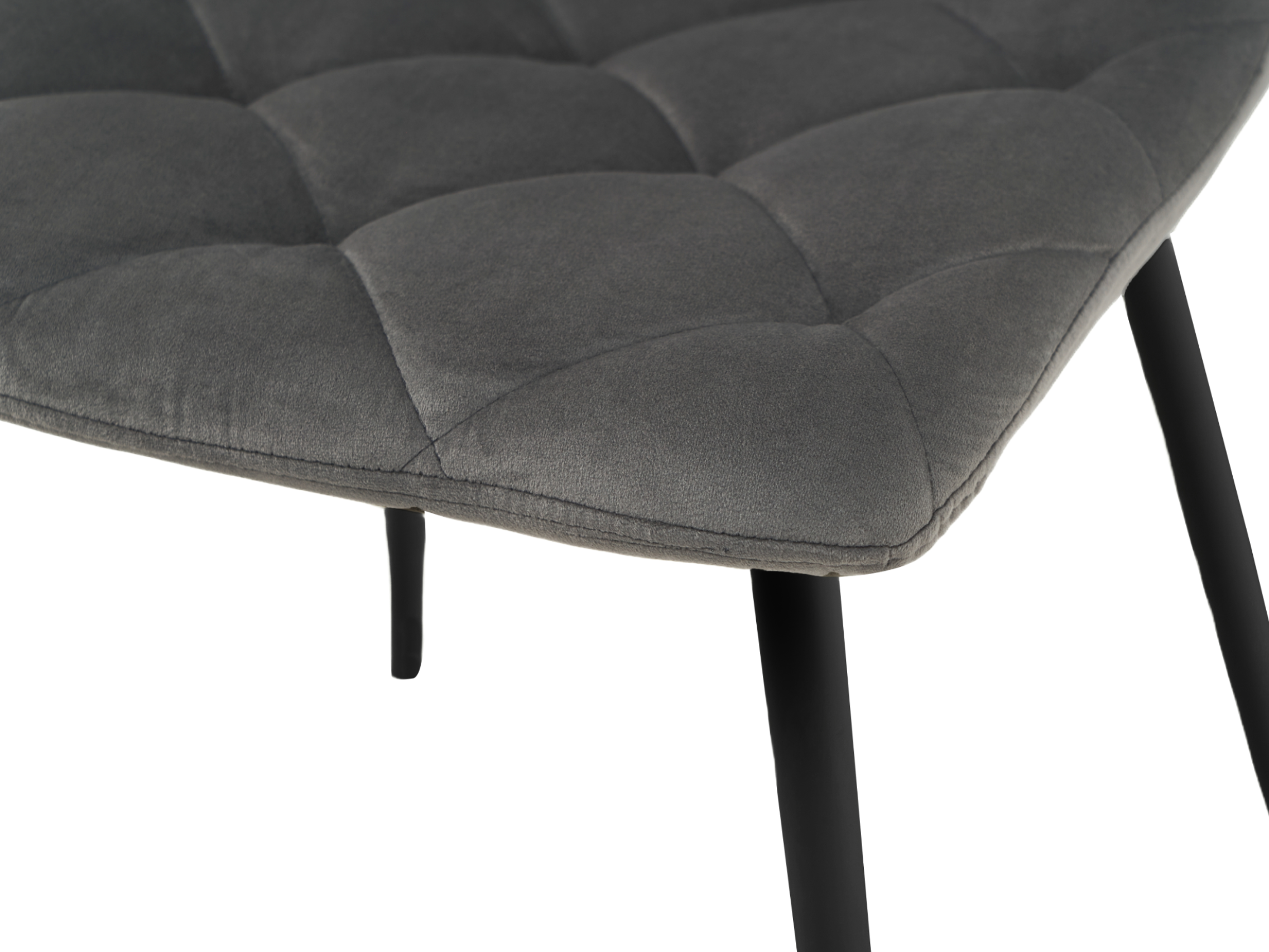 Чорний велюр практичний у використанні, оскільки легко очищується від пилу та забруднень. А фарбований метал не потребує додаткового догляду, що робить цей стілець практичним рішенням для щоденного використання.