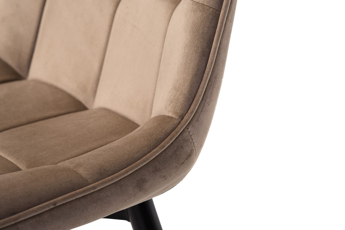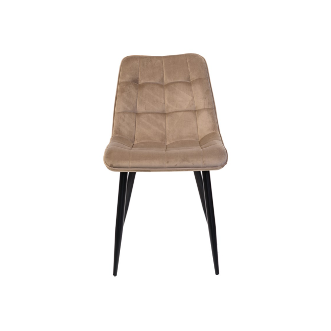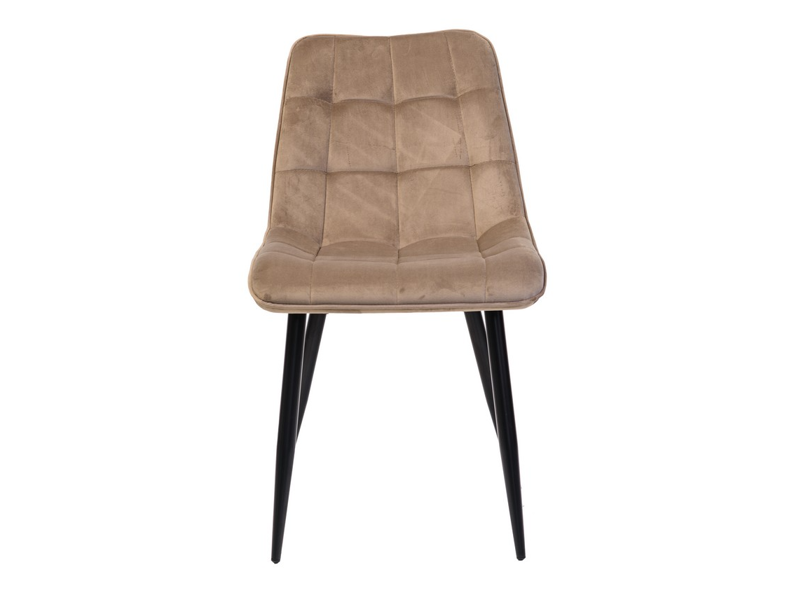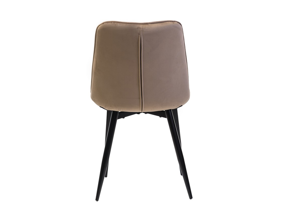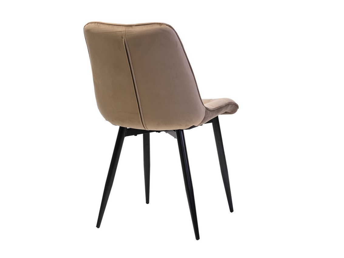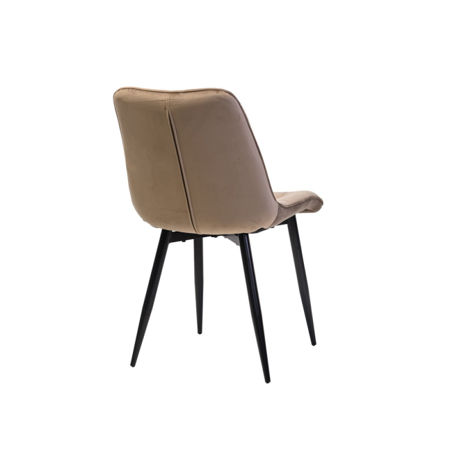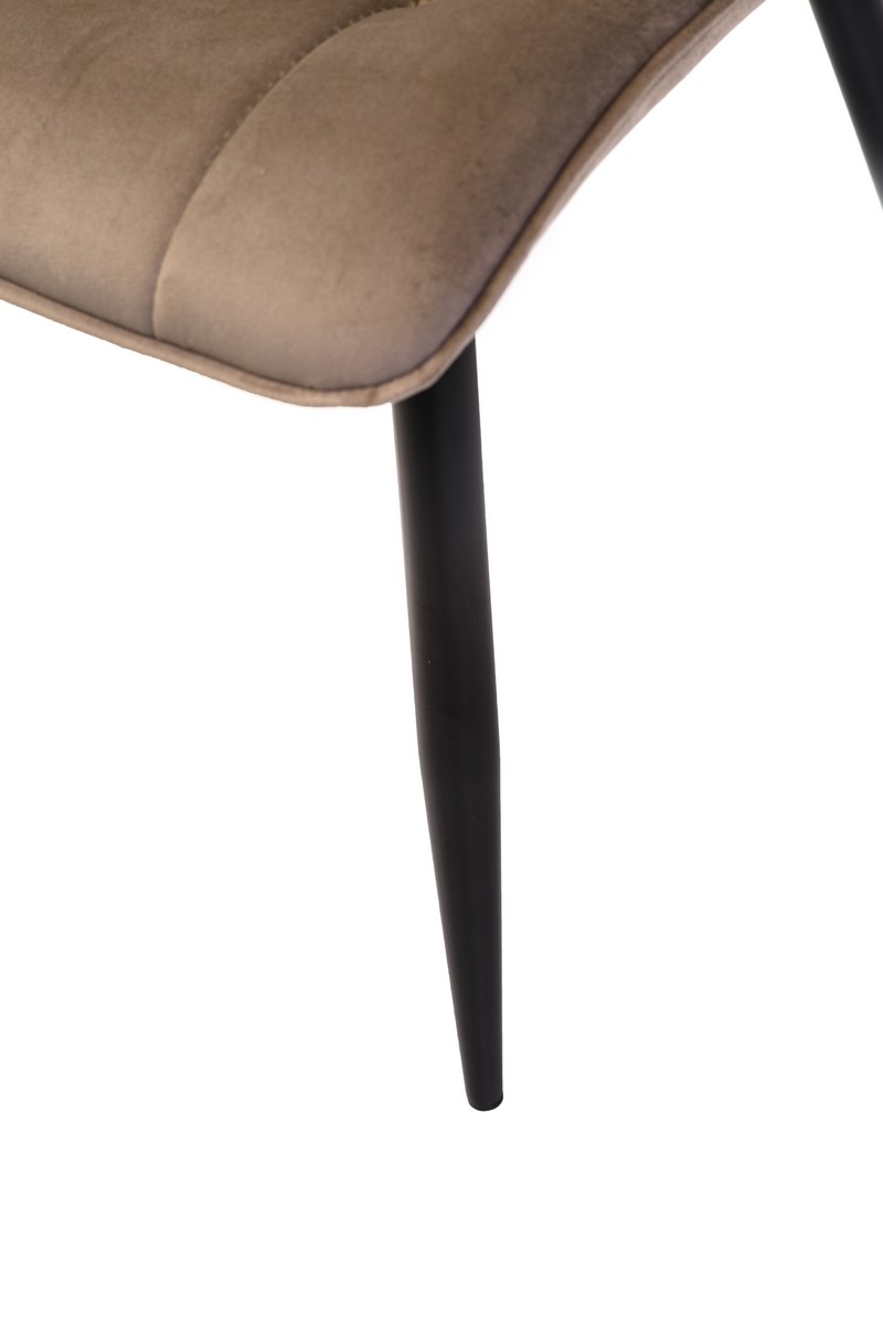 Чорний металевий каркас створює стильний контраст із теплим тоном велюру, забезпечуючи стійкість і довговічність. Завдяки ергономічній формі спинки й сидіння цей стілець дарує комфорт навіть під час тривалого використання.