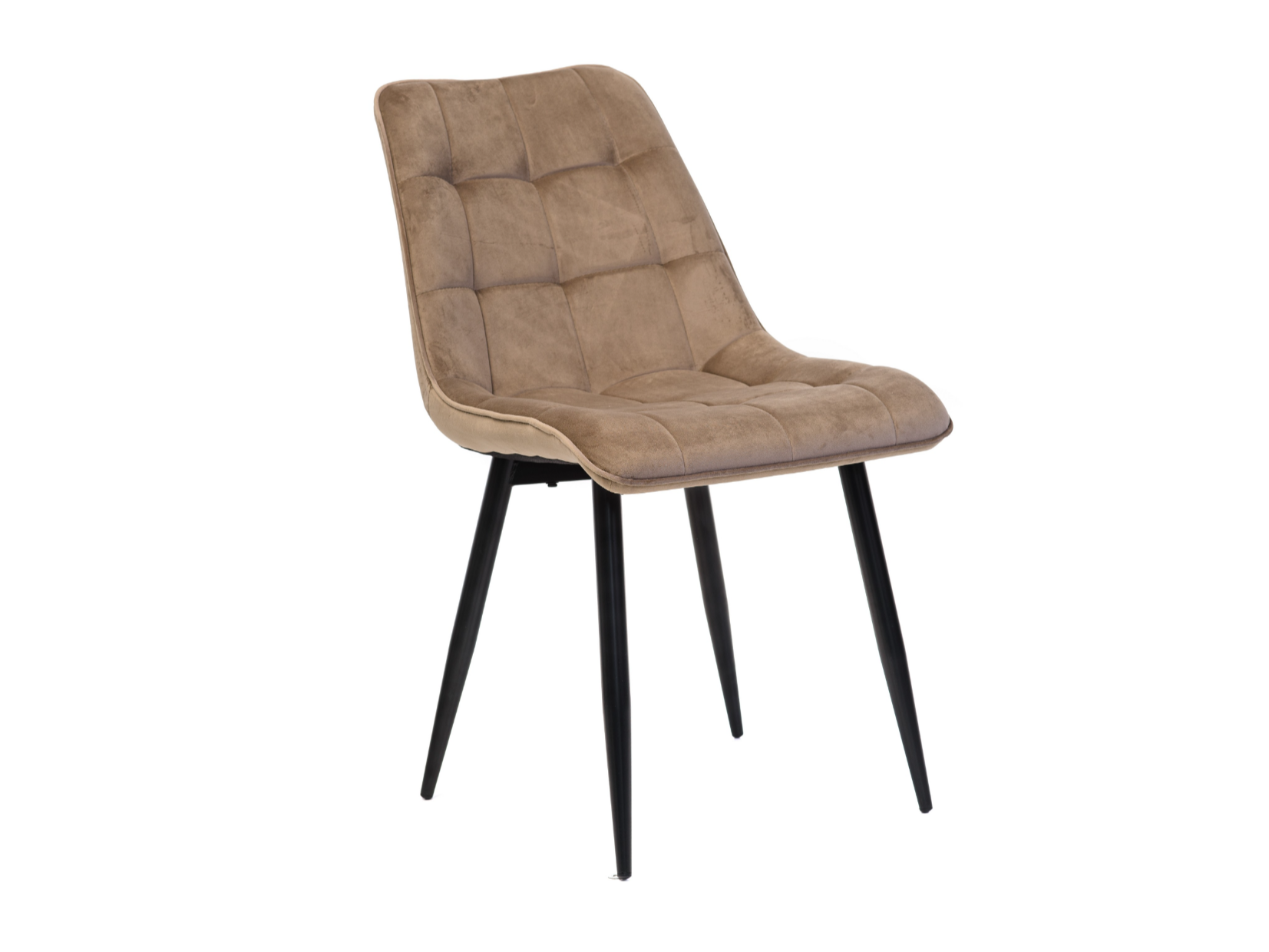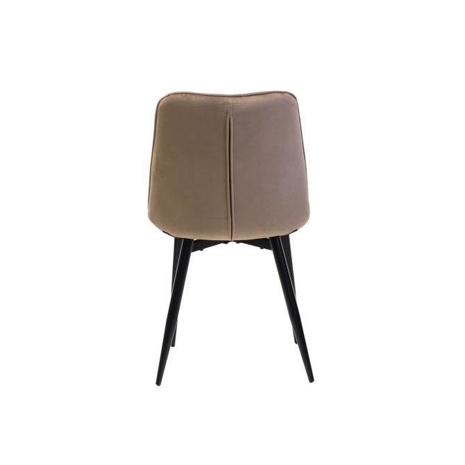 Стілець N-46 у капучиновому велюрі з чорною металевою основою – це гармонія теплих відтінків і сучасного стилю. Оббивка у вишуканому кольорі капучино виглядає елегантно й додає м’якості простору, створюючи атмосферу затишку. М’який велюр приємний на дотик і надає стільцю преміального вигляду, підкреслюючи його сучасний характер.