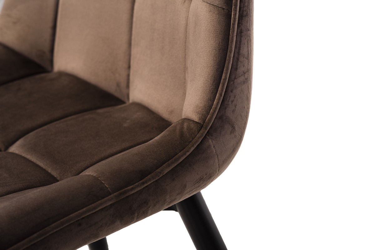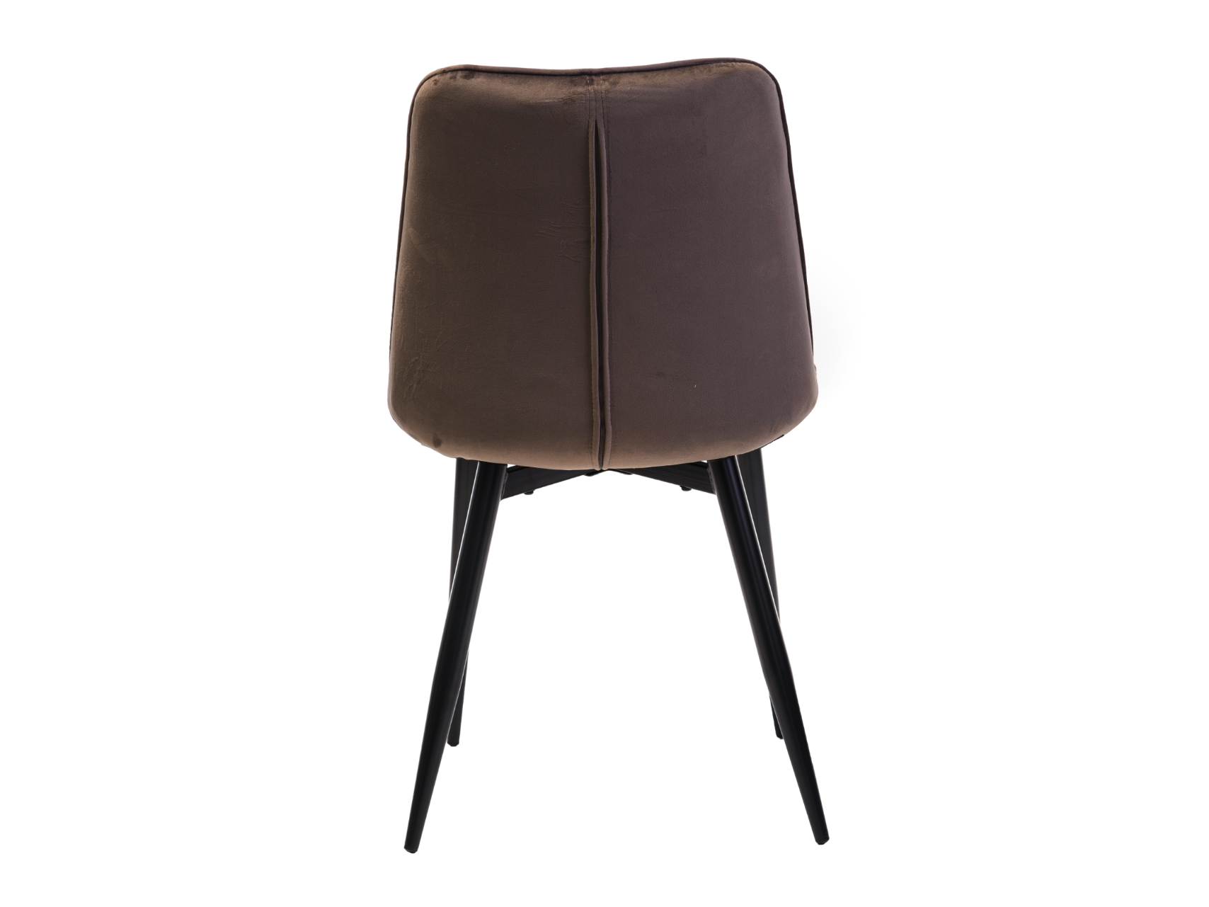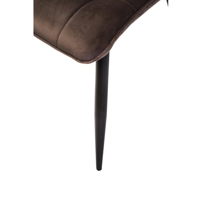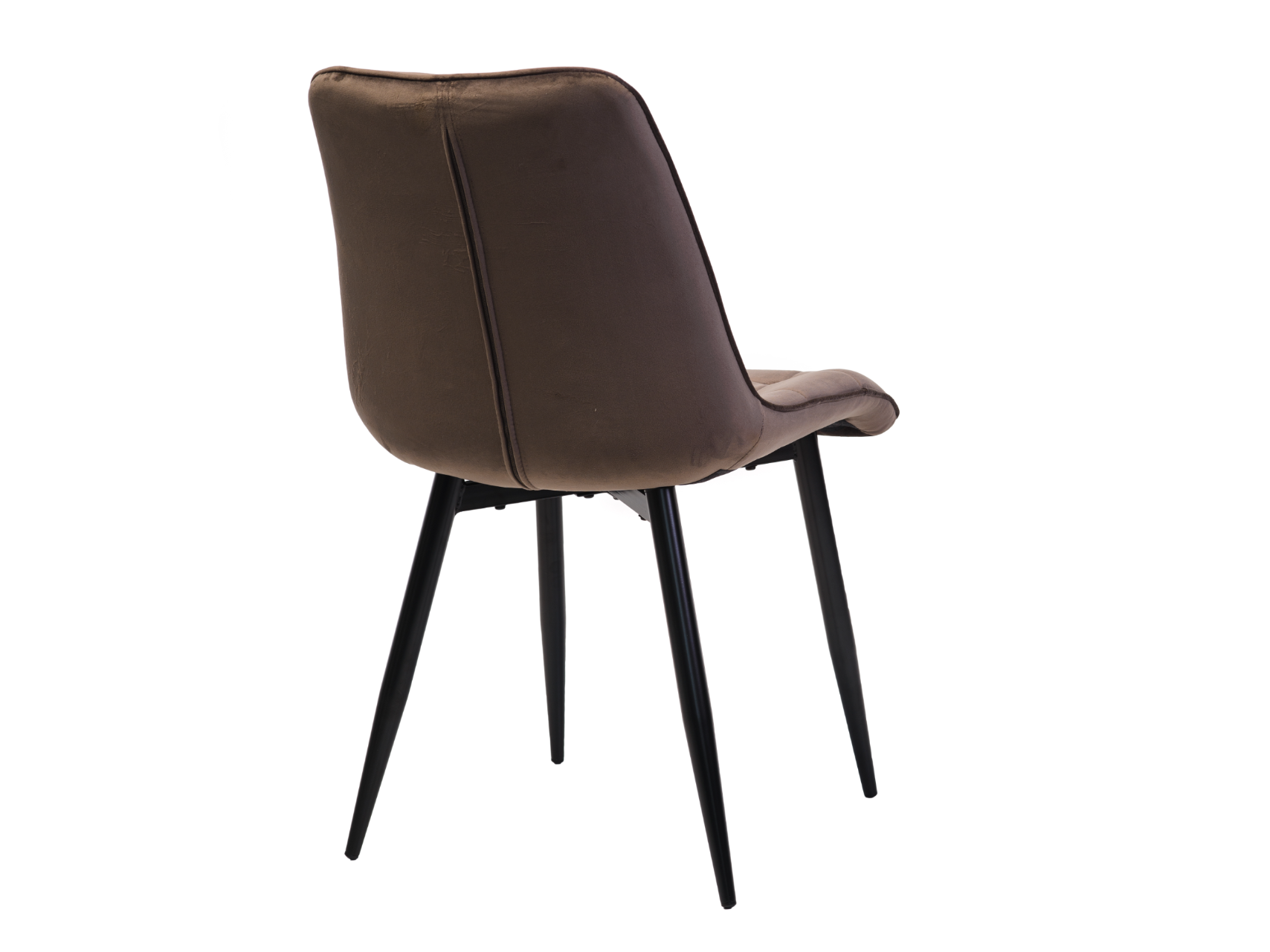 Чорний металевий каркас створює стильний контраст із теплим тоном велюру, забезпечуючи стійкість і довговічність. Завдяки ергономічній формі спинки й сидіння цей стілець дарує комфорт навіть під час тривалого використання.