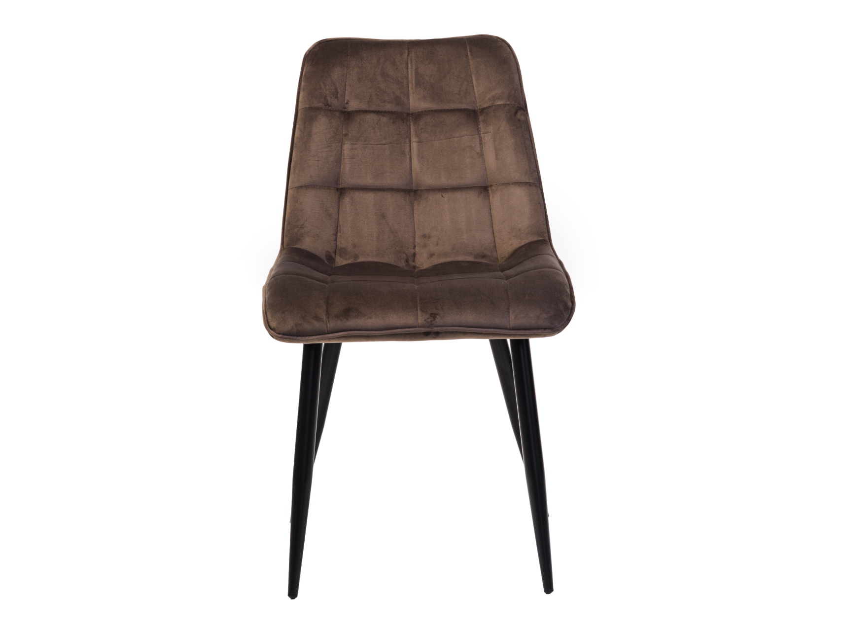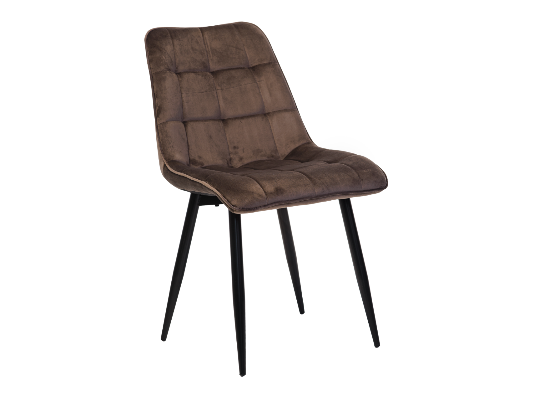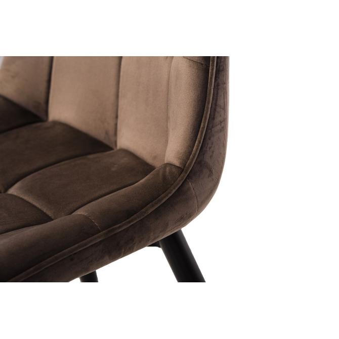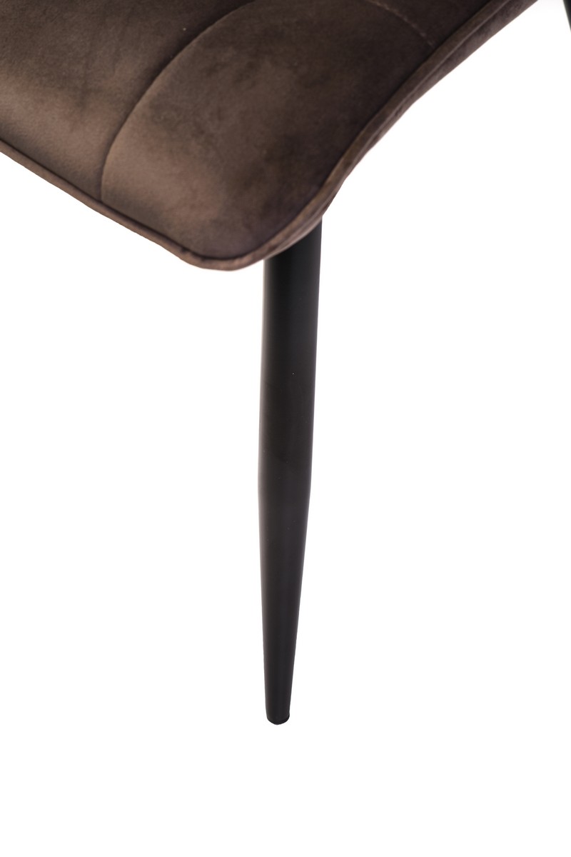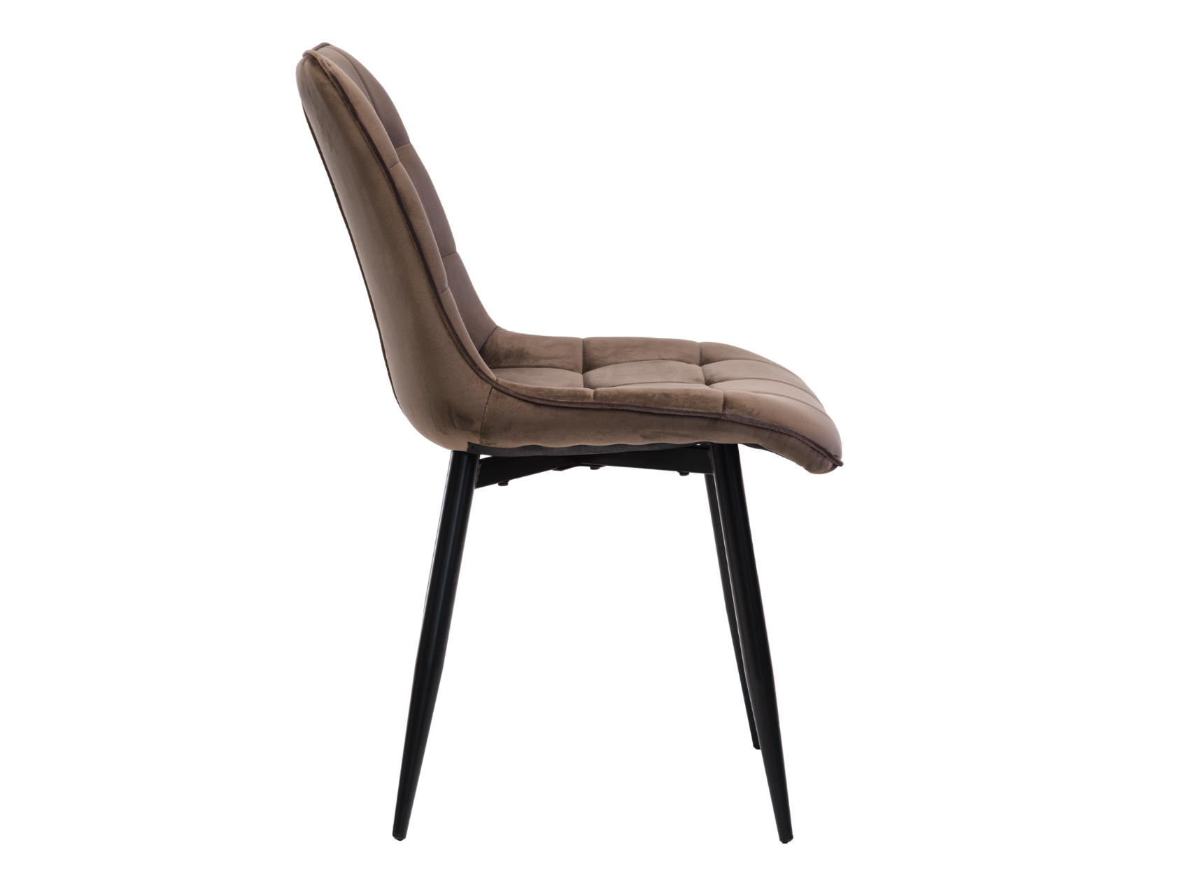 Чорний металевий каркас створює стильний контраст із теплим тоном велюру, забезпечуючи стійкість і довговічність. Завдяки ергономічній формі спинки й сидіння цей стілець дарує комфорт навіть під час тривалого використання.