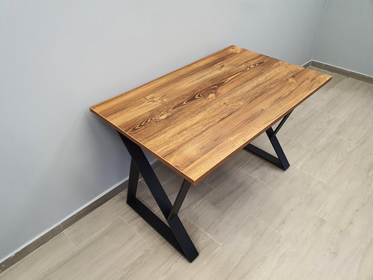 Обідній стіл (підстілля з металевого профілю з ДСП стільницею) буде вдалим елементом інтер’єру кімнати в стилі Лофт.