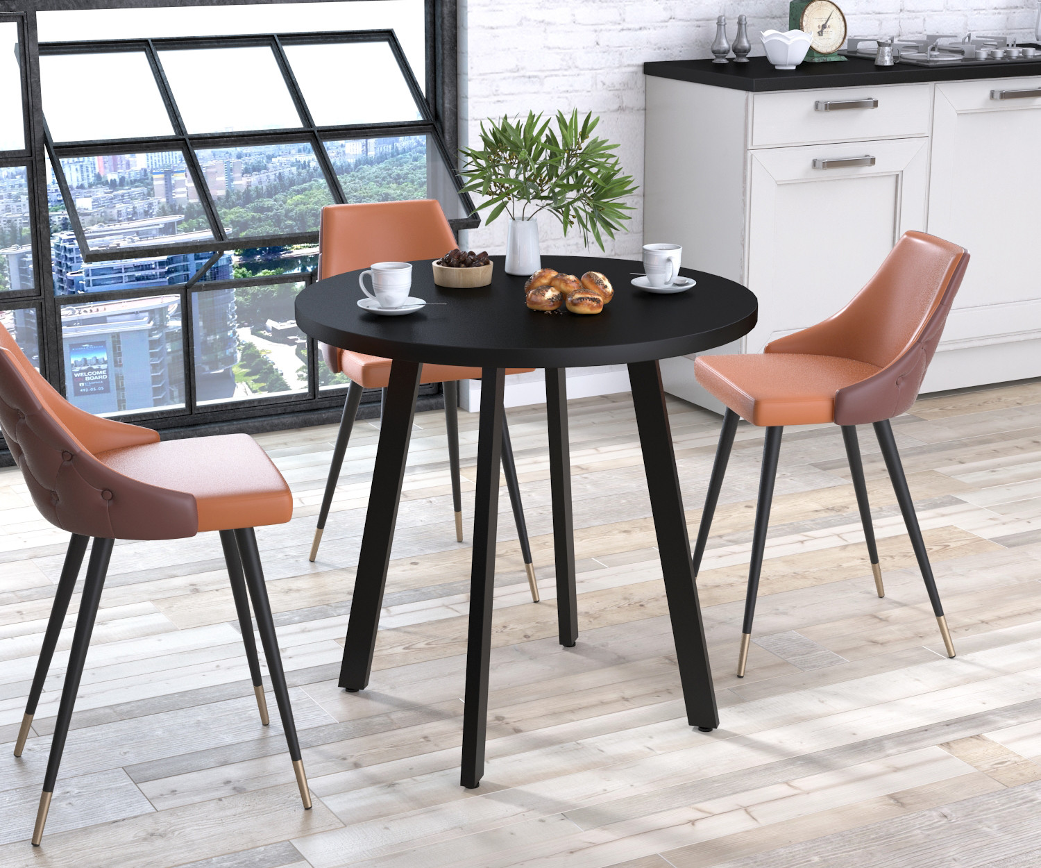 Круглый стол Лерой от компании Loft Design - красивая и утончённая модель стола. Этот стол станет прекрасным выбором для вашей кухни, обеденной зоны в офисе или кафе. Великолепное сочетание стиля и современности придают ему элегантный вид, который будет впечатлять в любом интерьере.