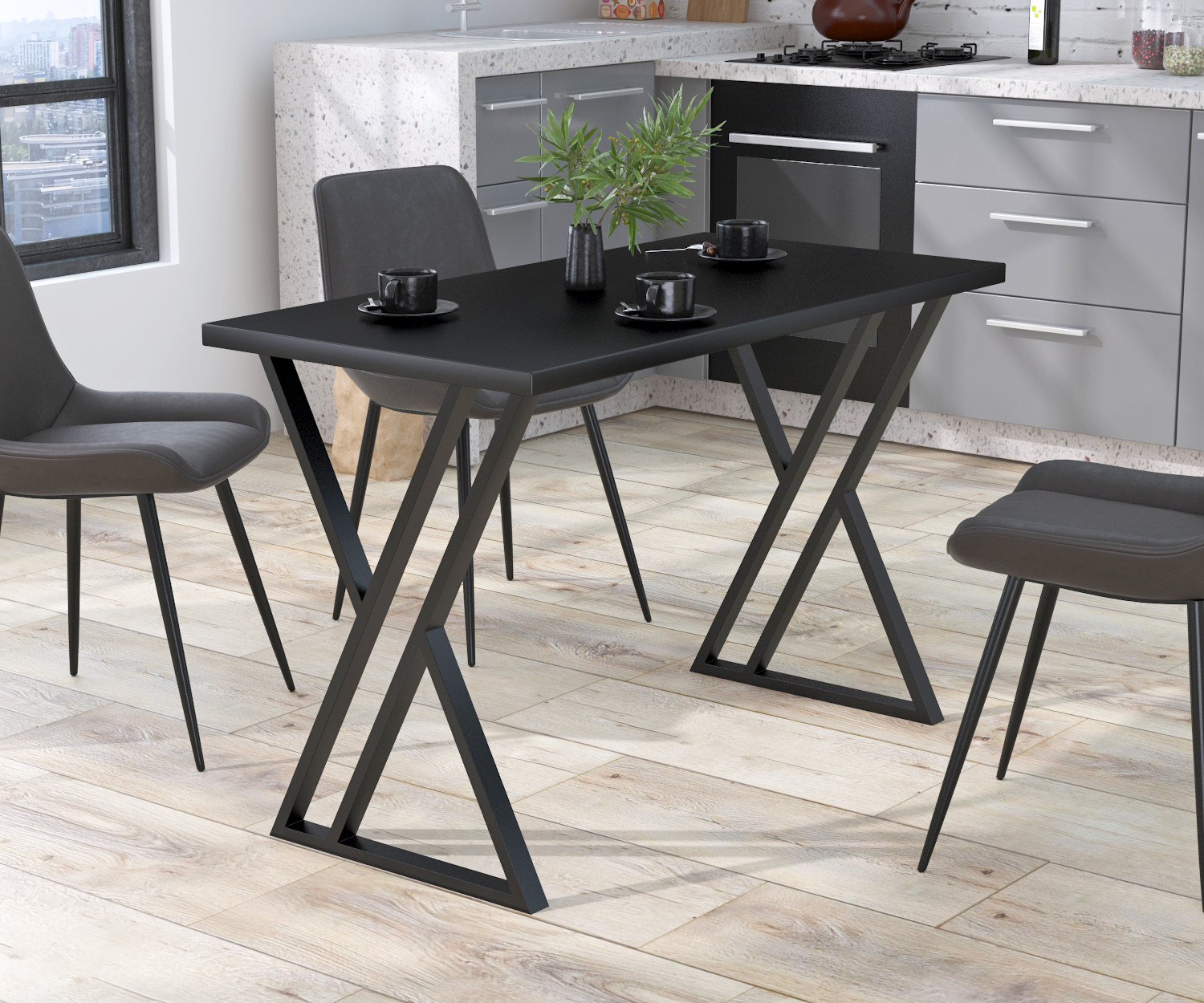 Обеденный стол Уолес от компании Loft Design выполнен в стиле Лофт в самом классическом понимании: необычные металлические ножки сочетаются с массивной столешницей с красивой текстурой имитирующей дорогие породы дерева. Оригинальная конструкция ножек смотрится очень стильно свежо. Этот стол подойдёт для любой современной кухни. Несмотря на свои внушительные размеры, стол выглядит элегантно и стильно.
