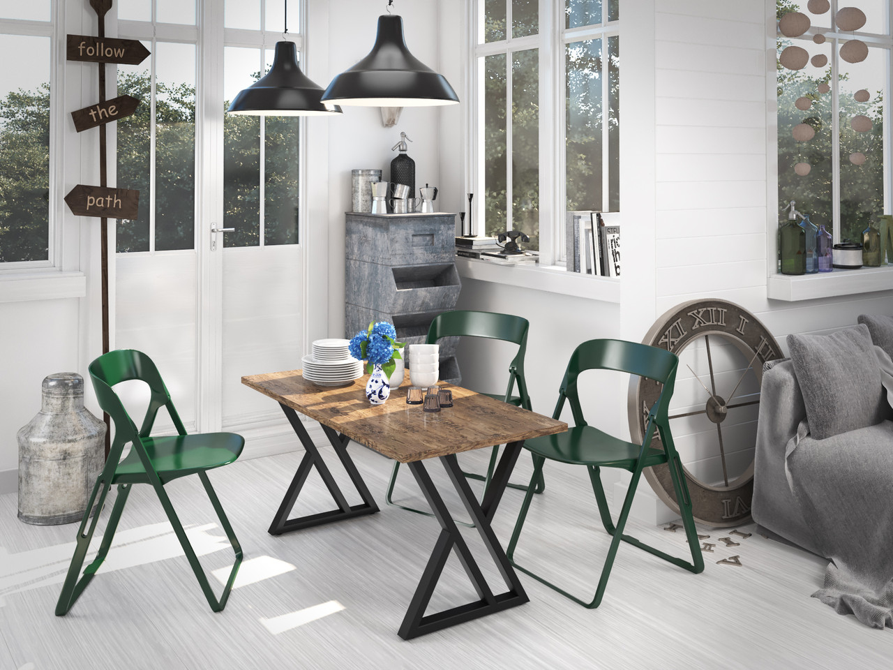 Обідній стіл (підстілля з металевого профілю з ДСП стільницею) буде вдалим елементом інтер’єру кімнати в стилі Лофт. Конструкція дуже міцна та практична, а порошкове фарбування забезбечує виробу стійкість до потряпин. Колір металу/розмір Підстілля 740х600 1200х750 1600х800 білий, бежевий, коричневий, чорний оксамит, сірий оксамит 4415 8310 9226 чорне/срібло, чорне/золото, чорна мідь, біле/срібло, білий/оксамит 4744 8639 9555