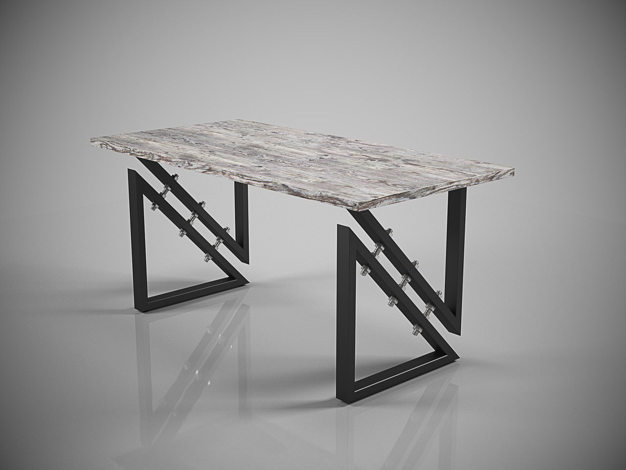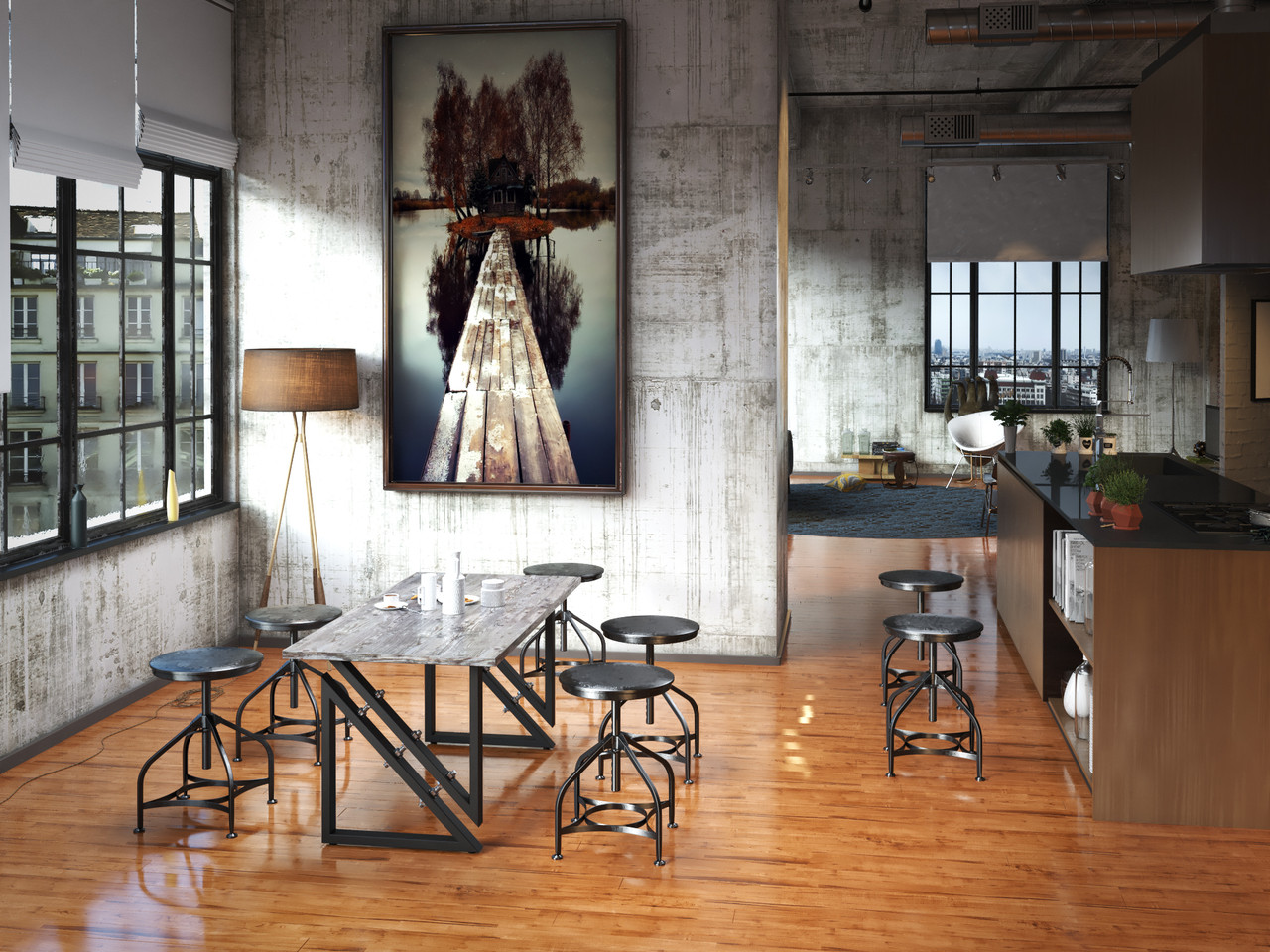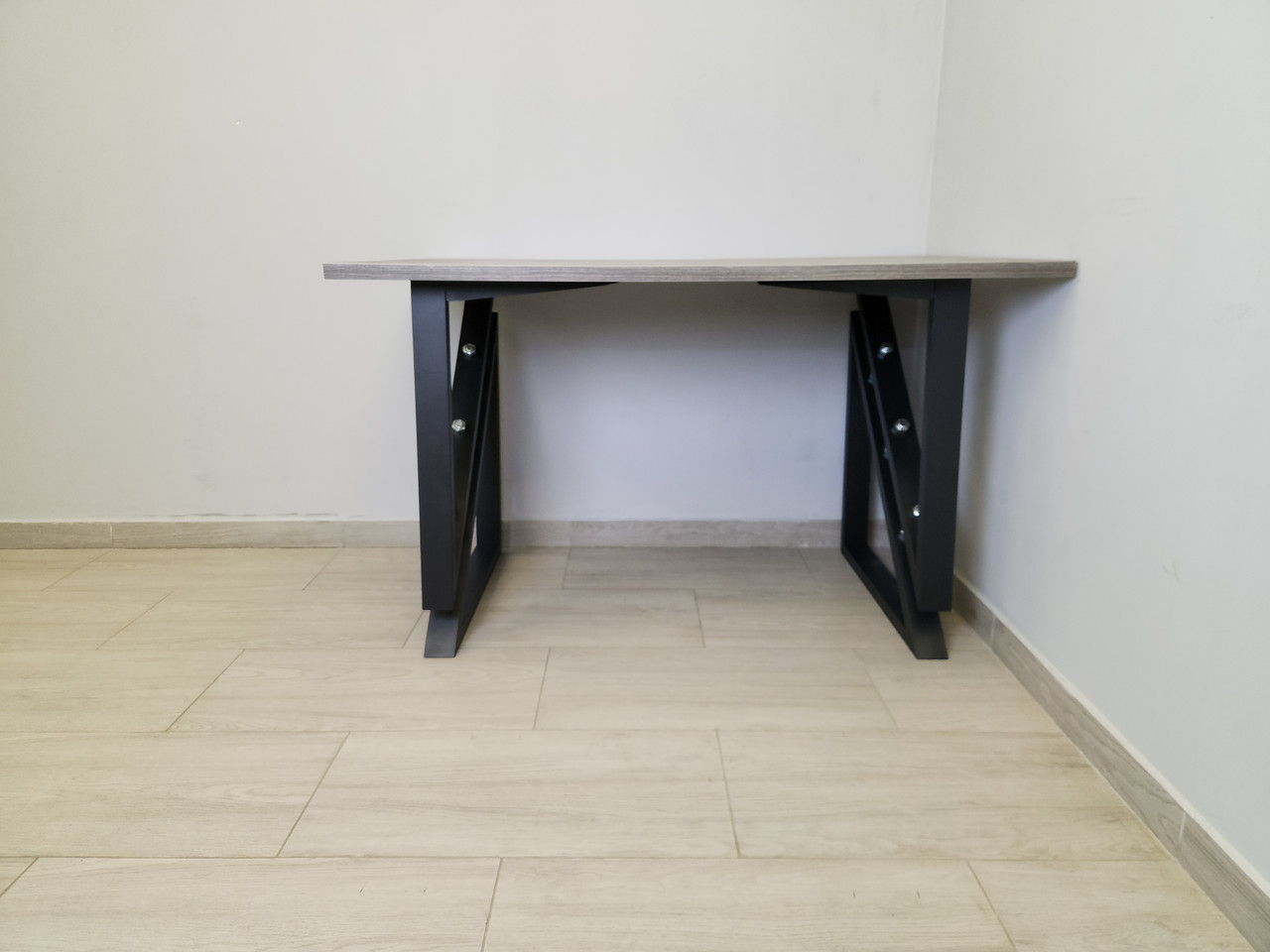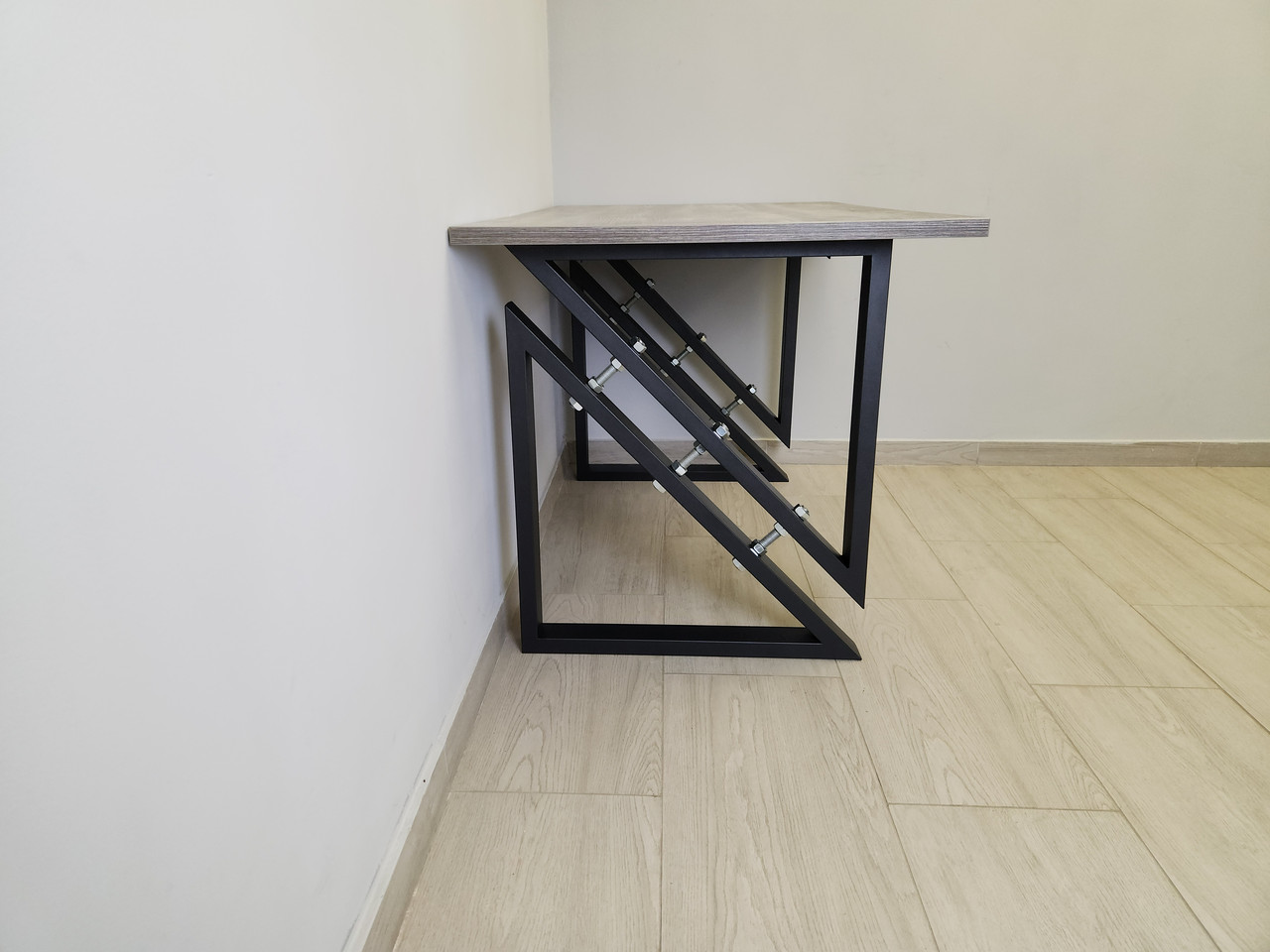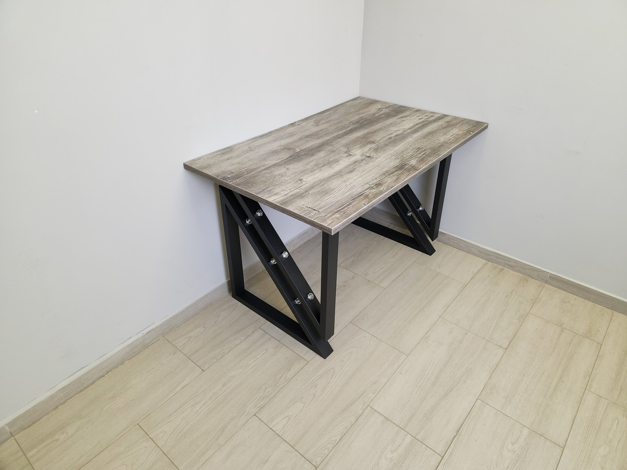Обідній стіл (підстілля з металевого профілю з ДСП стільницею) буде вдалим елементом інтер’єру кімнати в стилі Лофт.