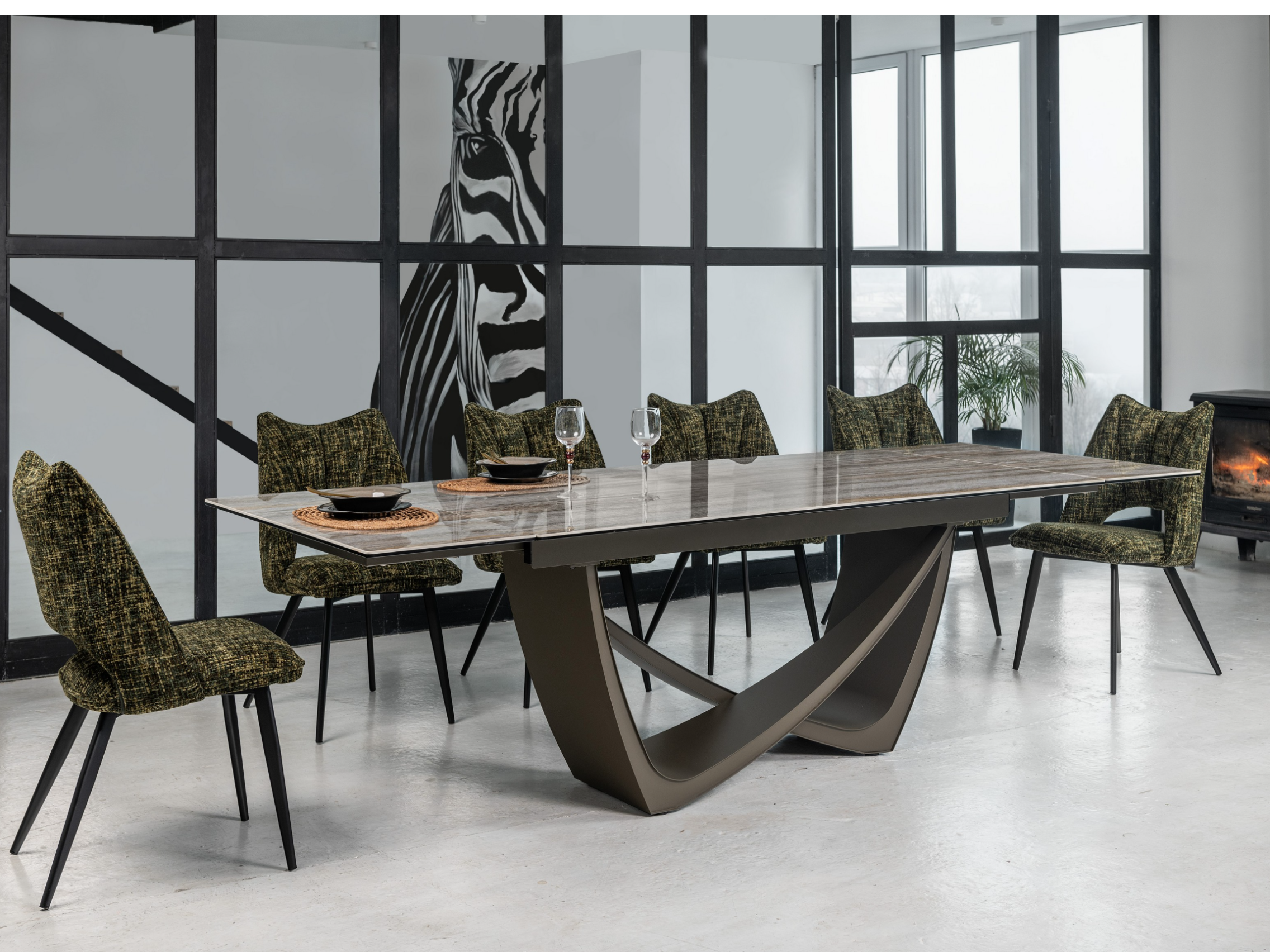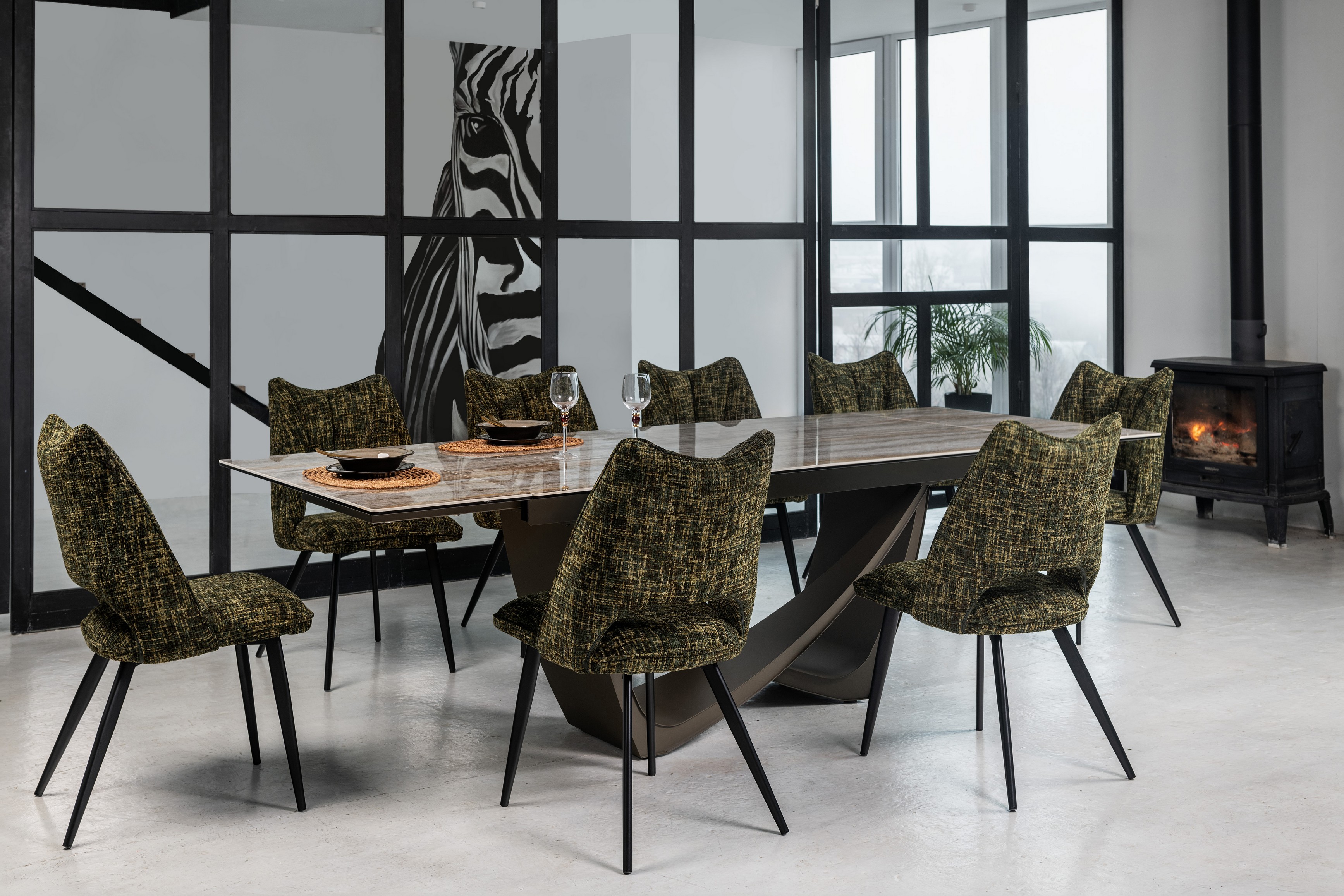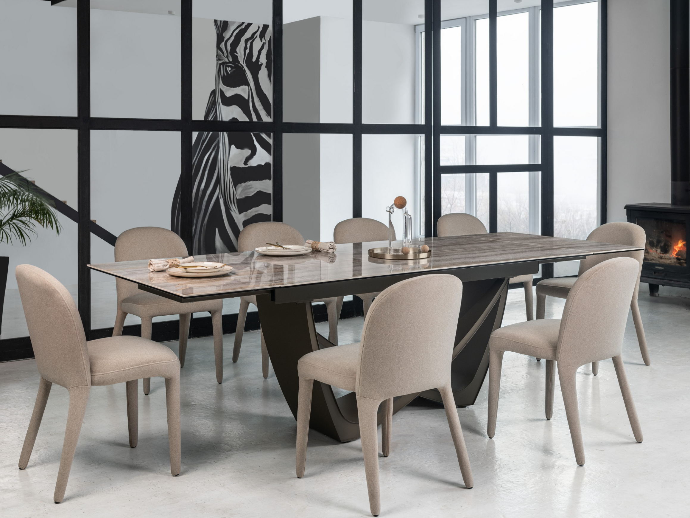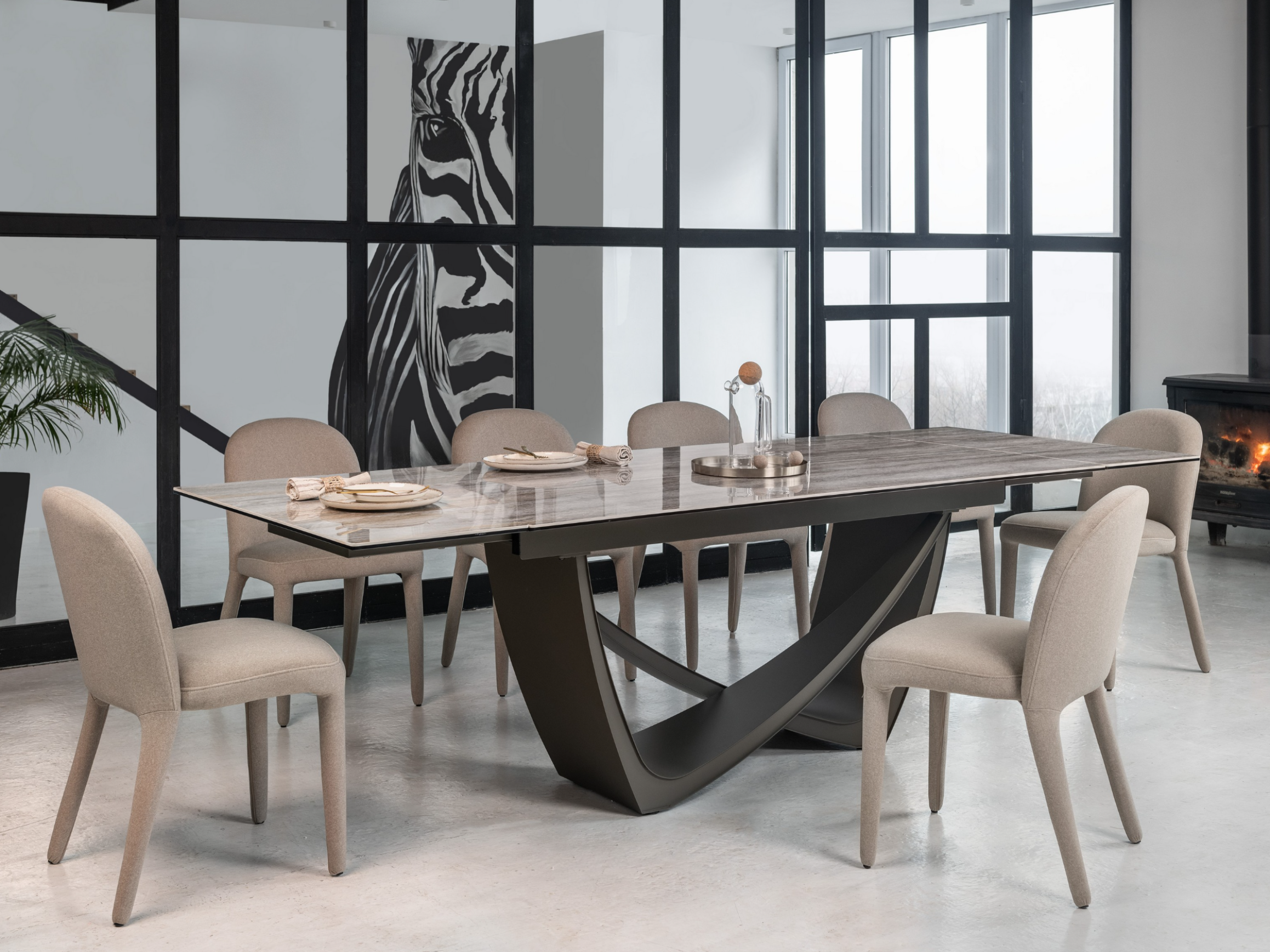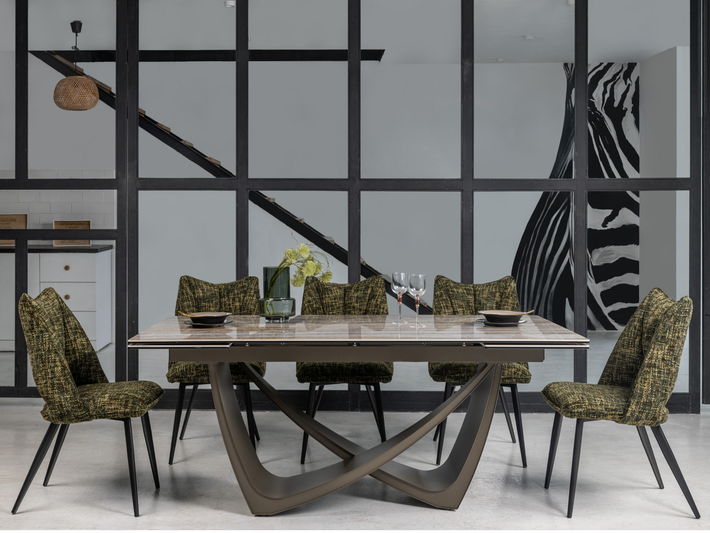 Цей стіл ідеальний для просторих кухонь або віталень, де важлива поєднання стилю, надійності та функціональності.