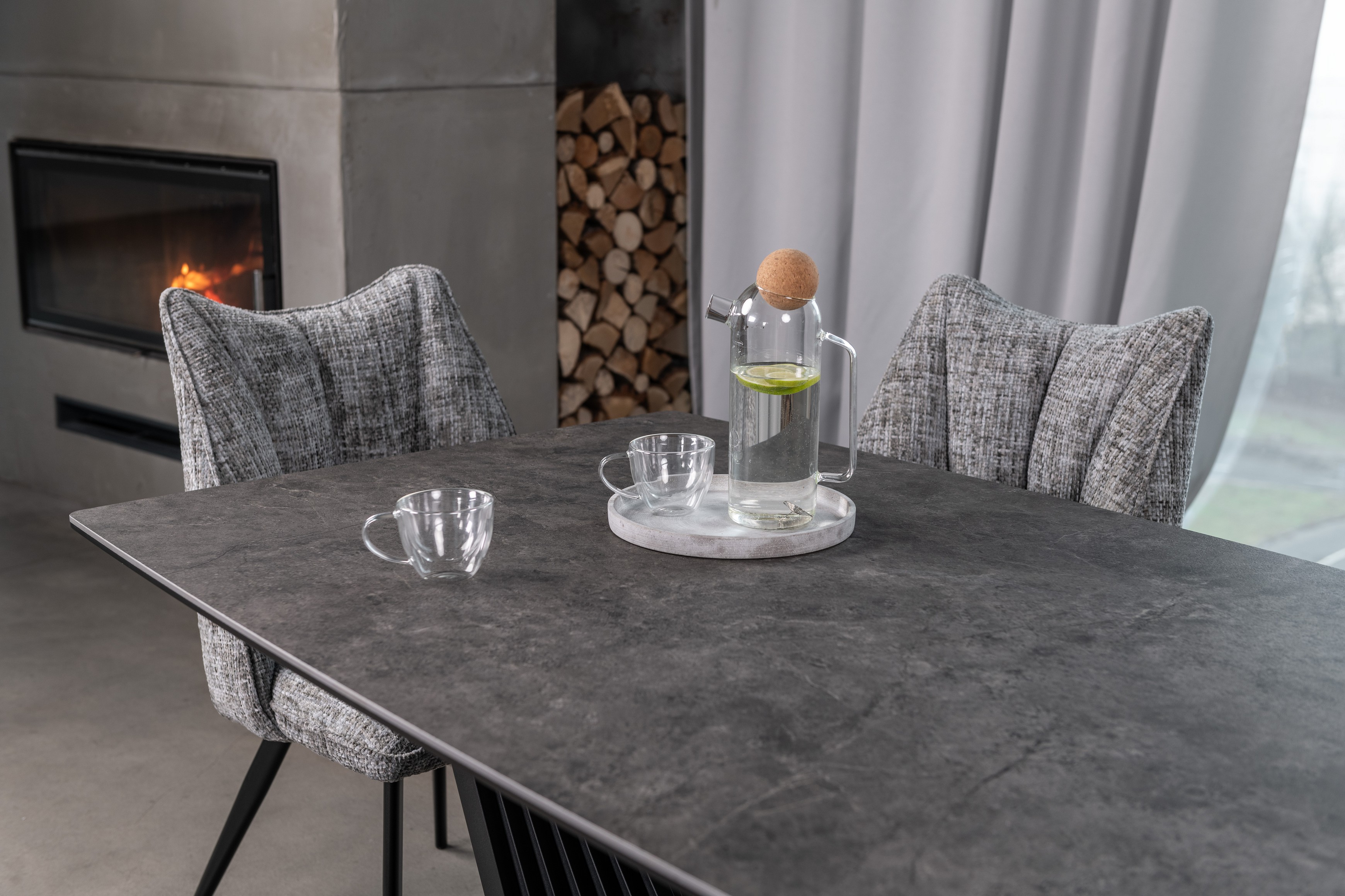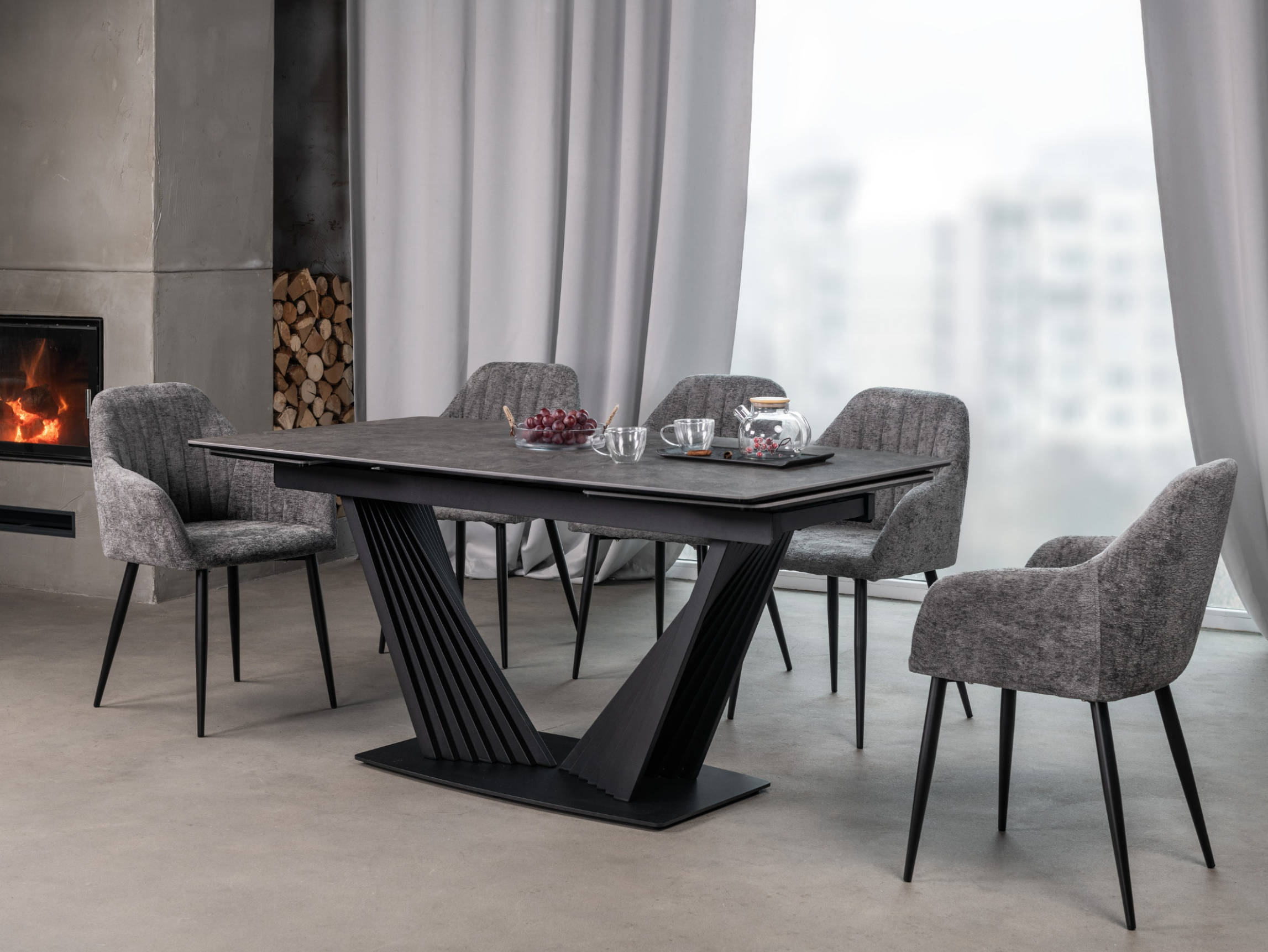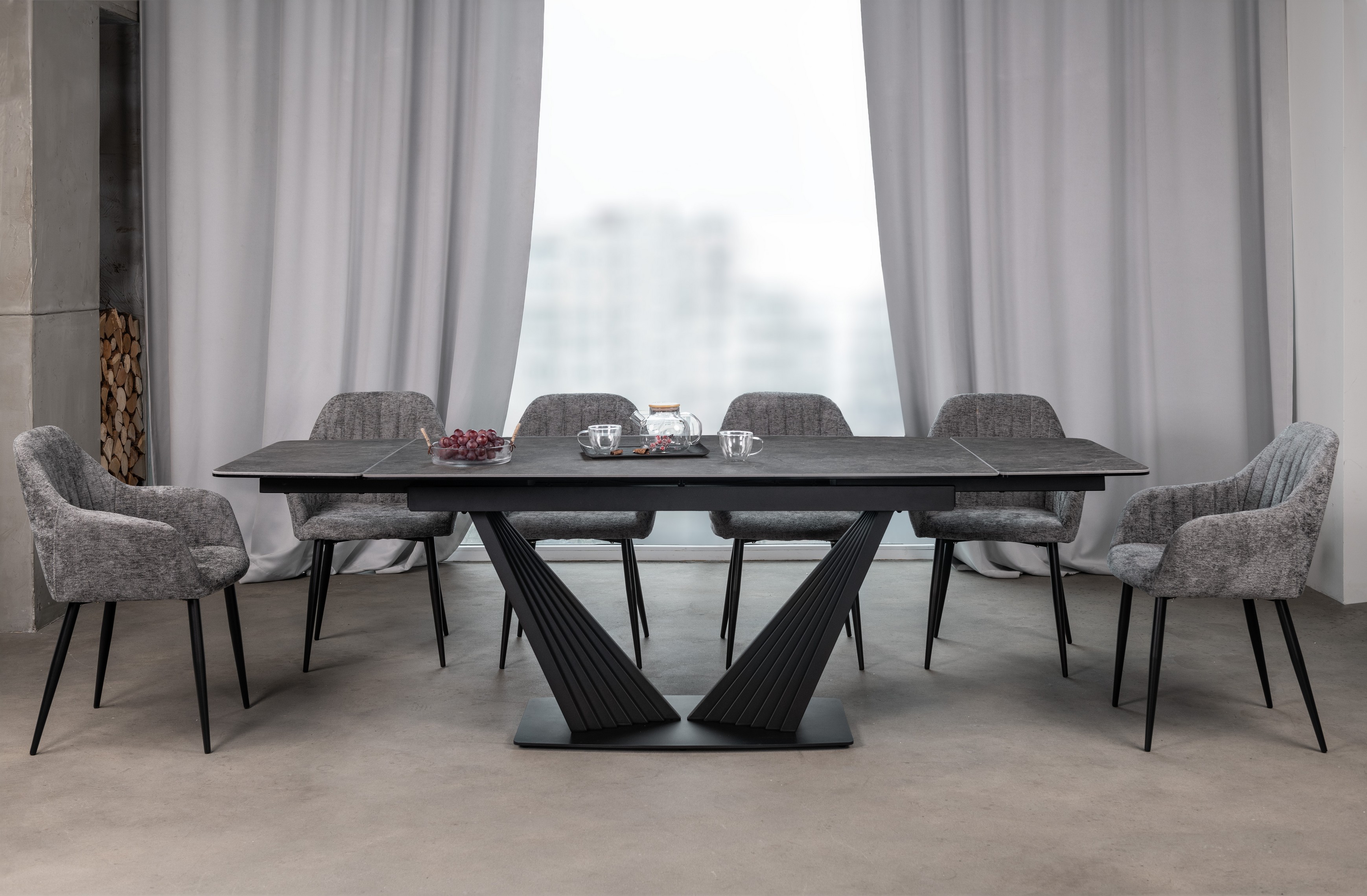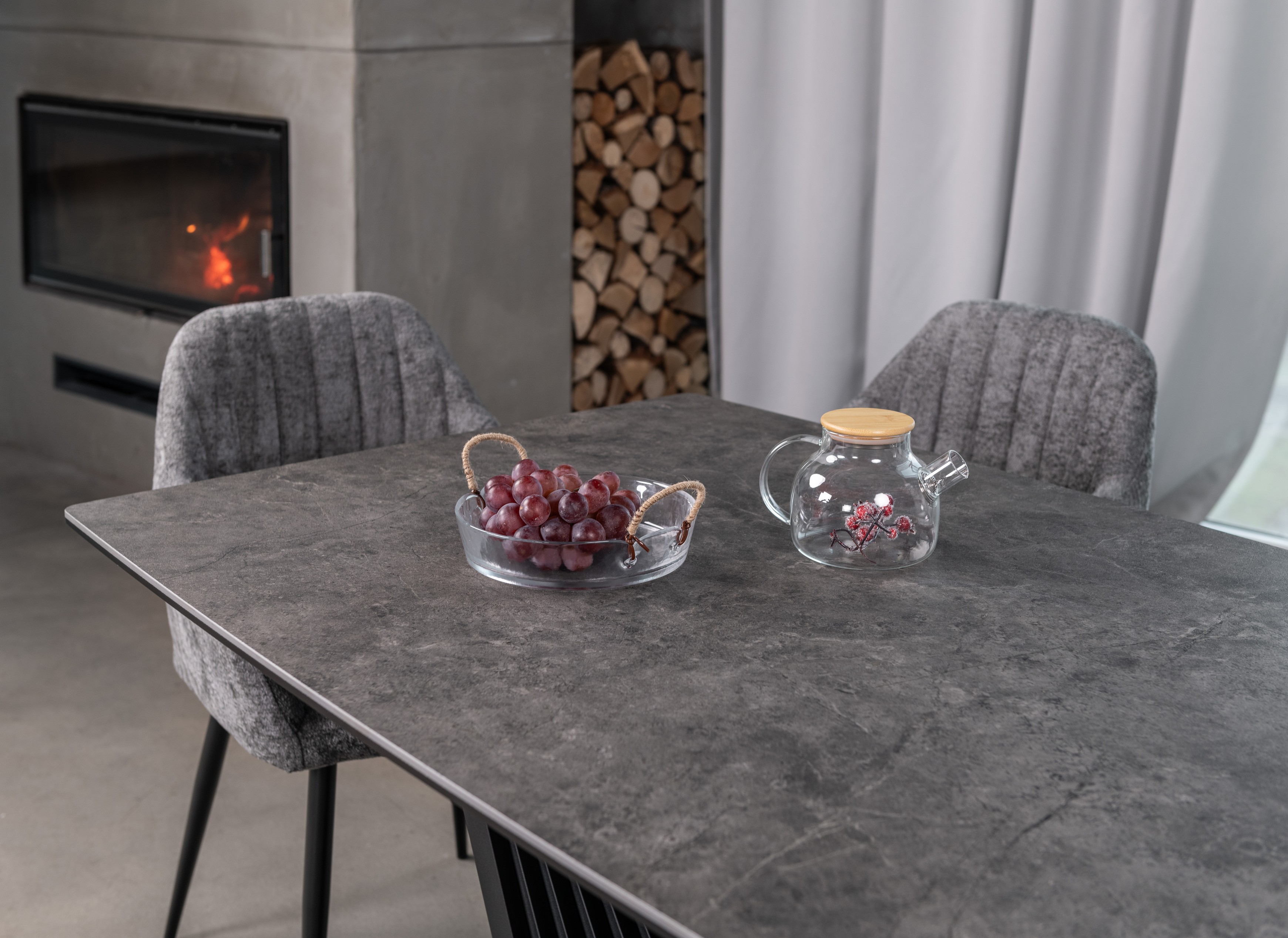 Матова кераміка з поєднанням гартованого скла надає столу особливий вигляд і підвищує його стійкість до подряпин і плям. Колір «грей шторм» додає елегантності та сучасності.