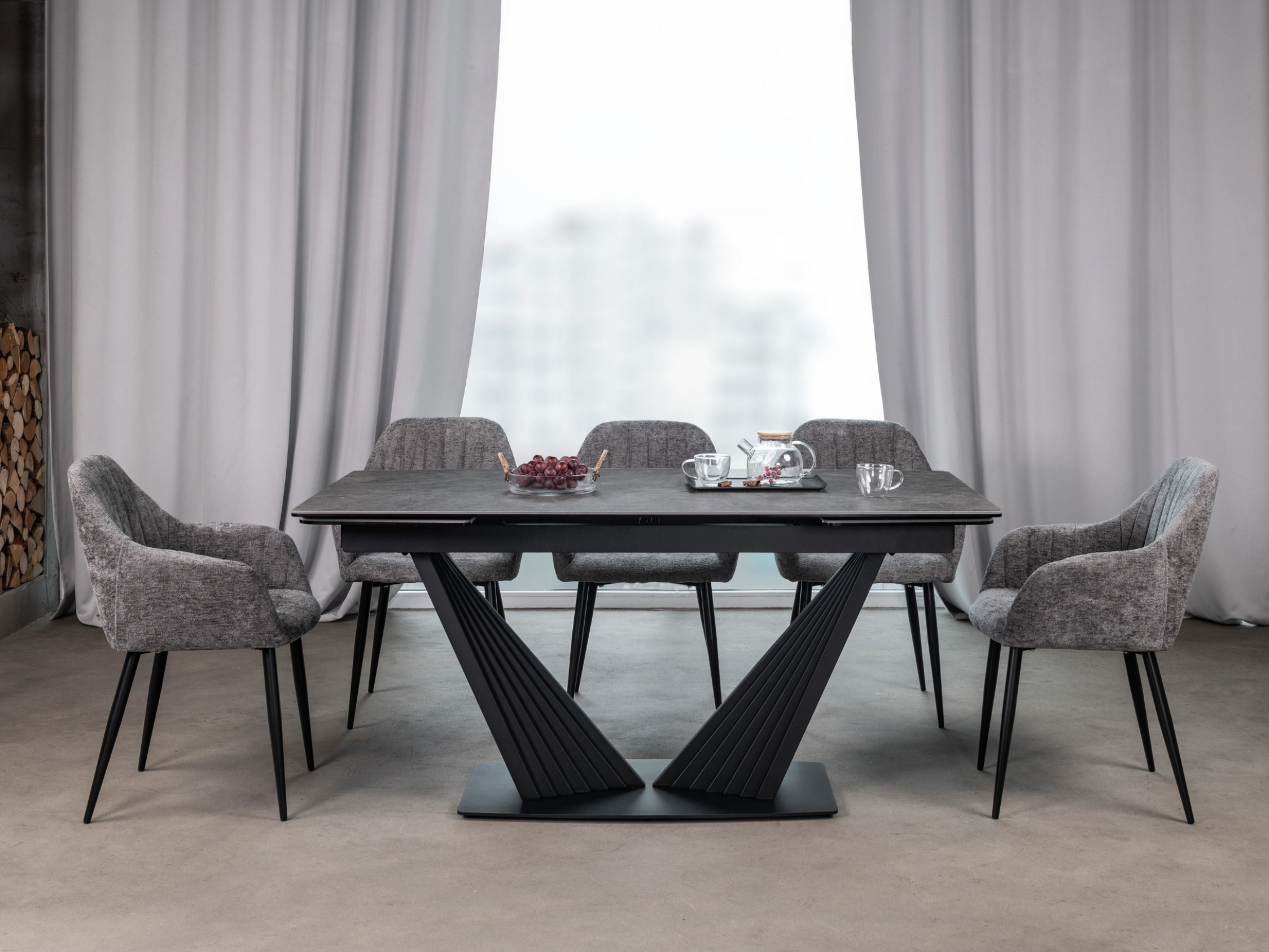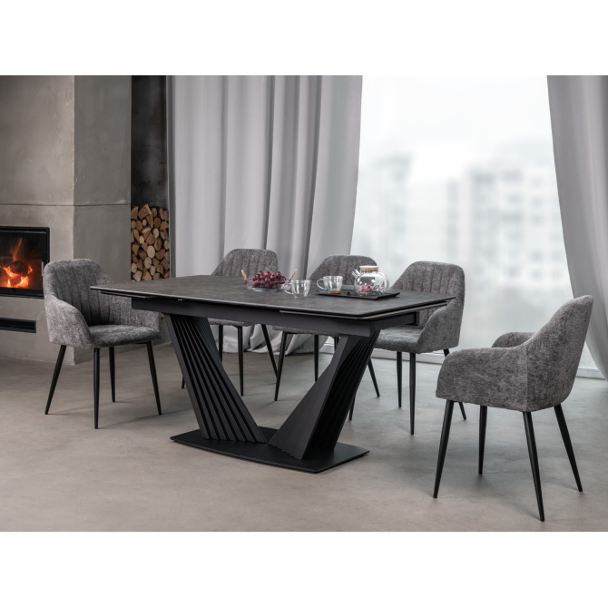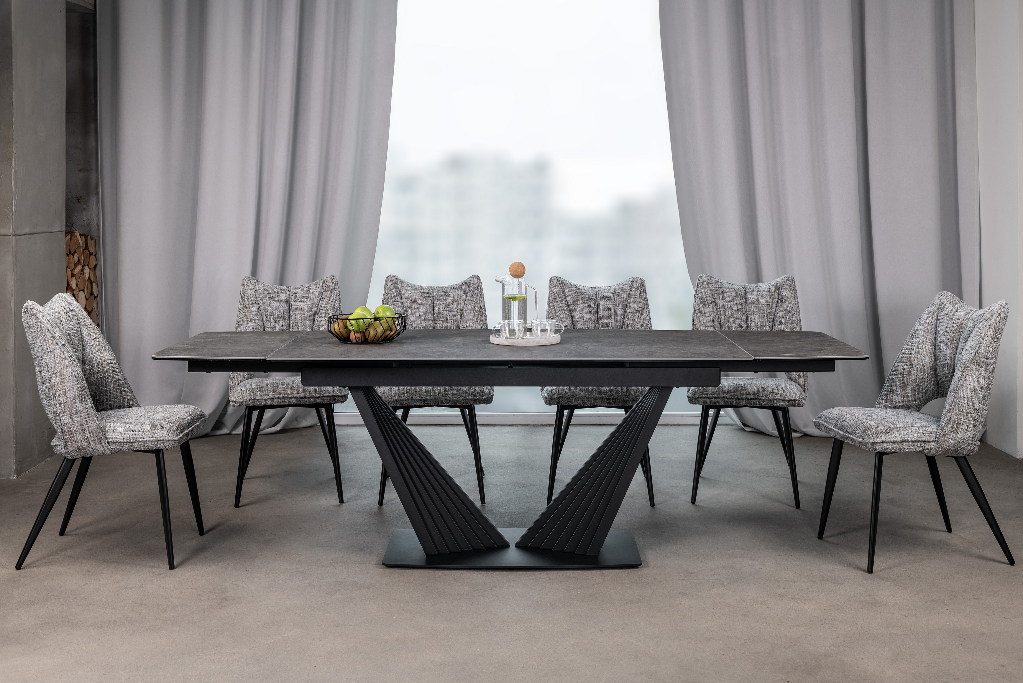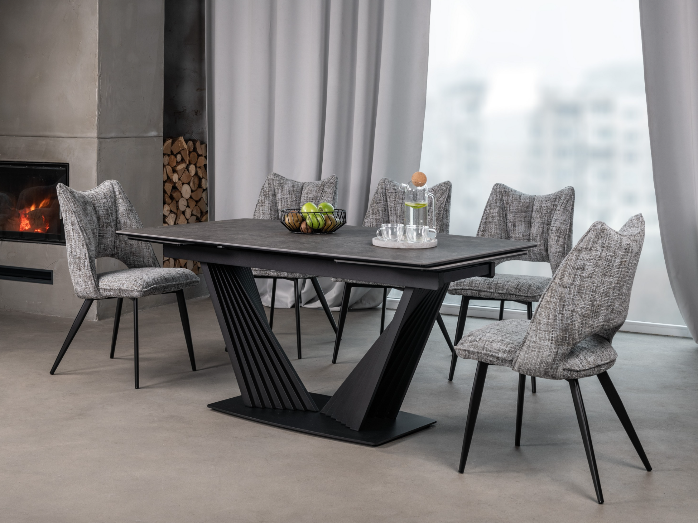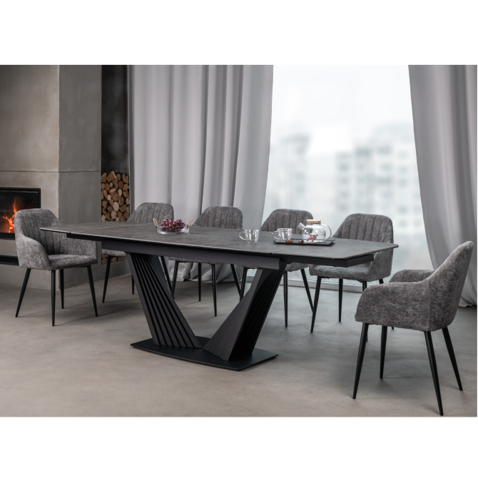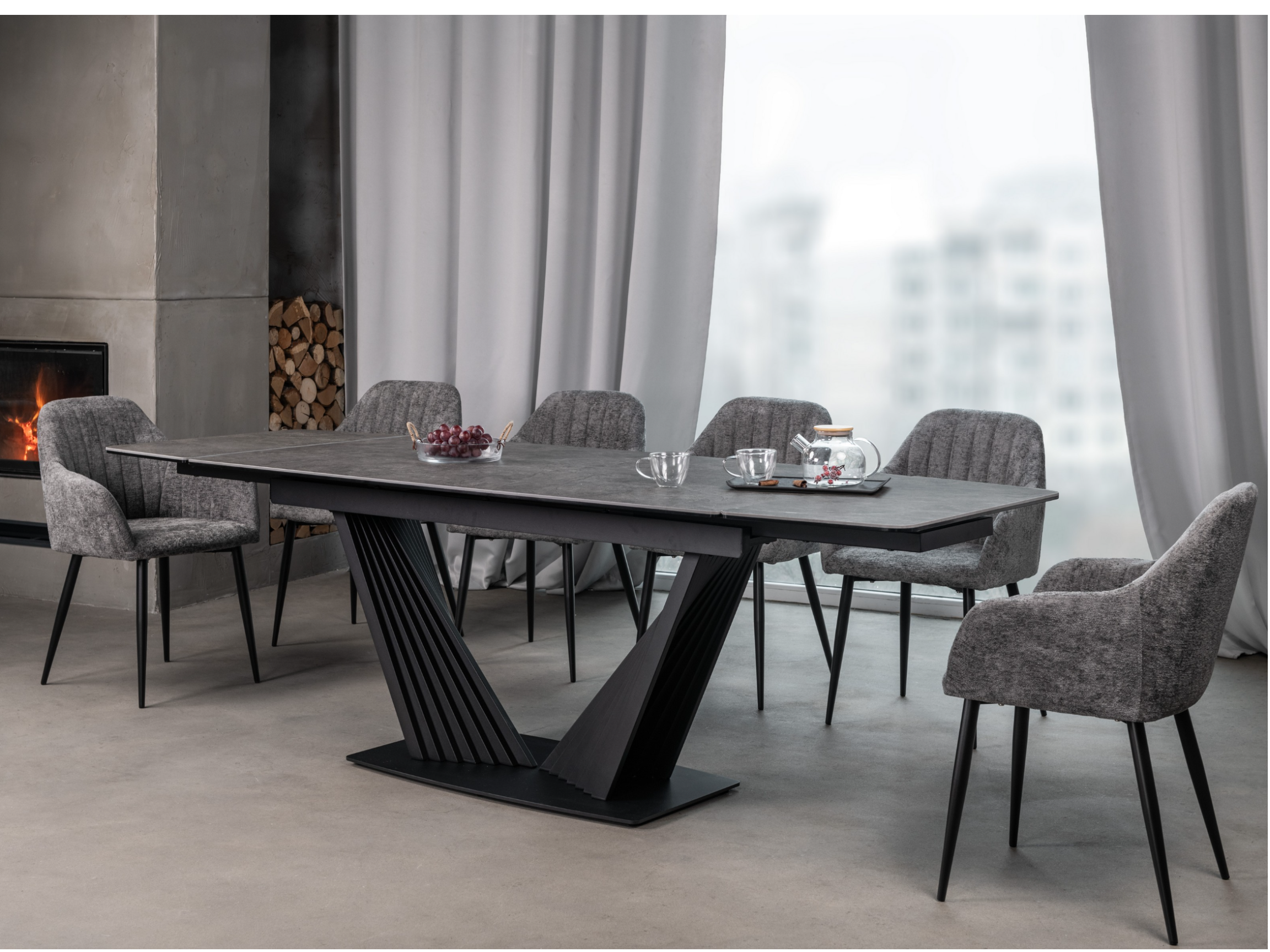 Матова кераміка з поєднанням гартованого скла надає столу особливий вигляд і підвищує його стійкість до подряпин і плям. Колір «грей шторм» додає елегантності та сучасності.