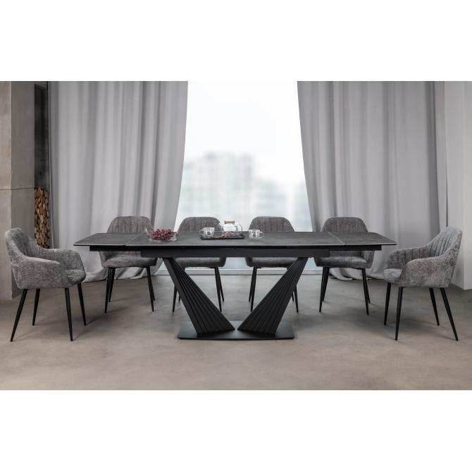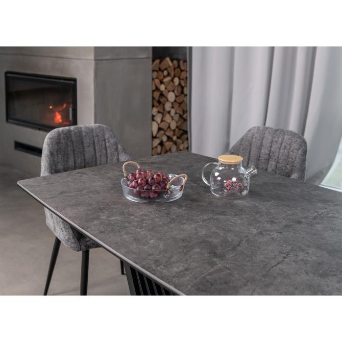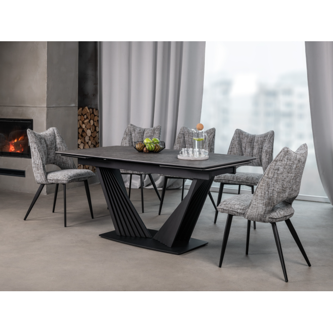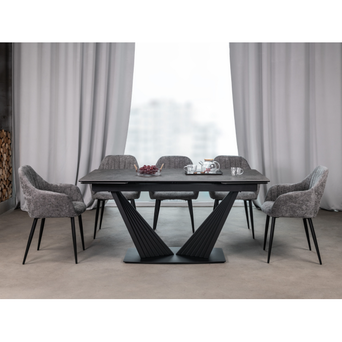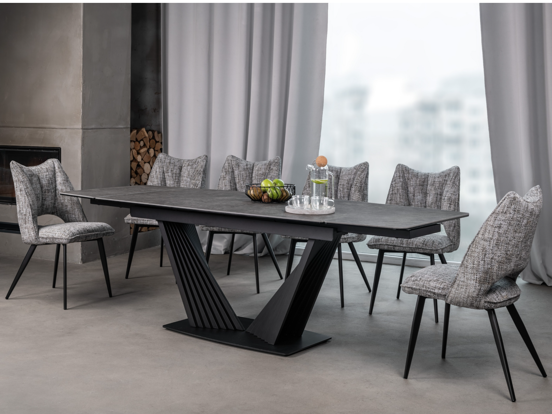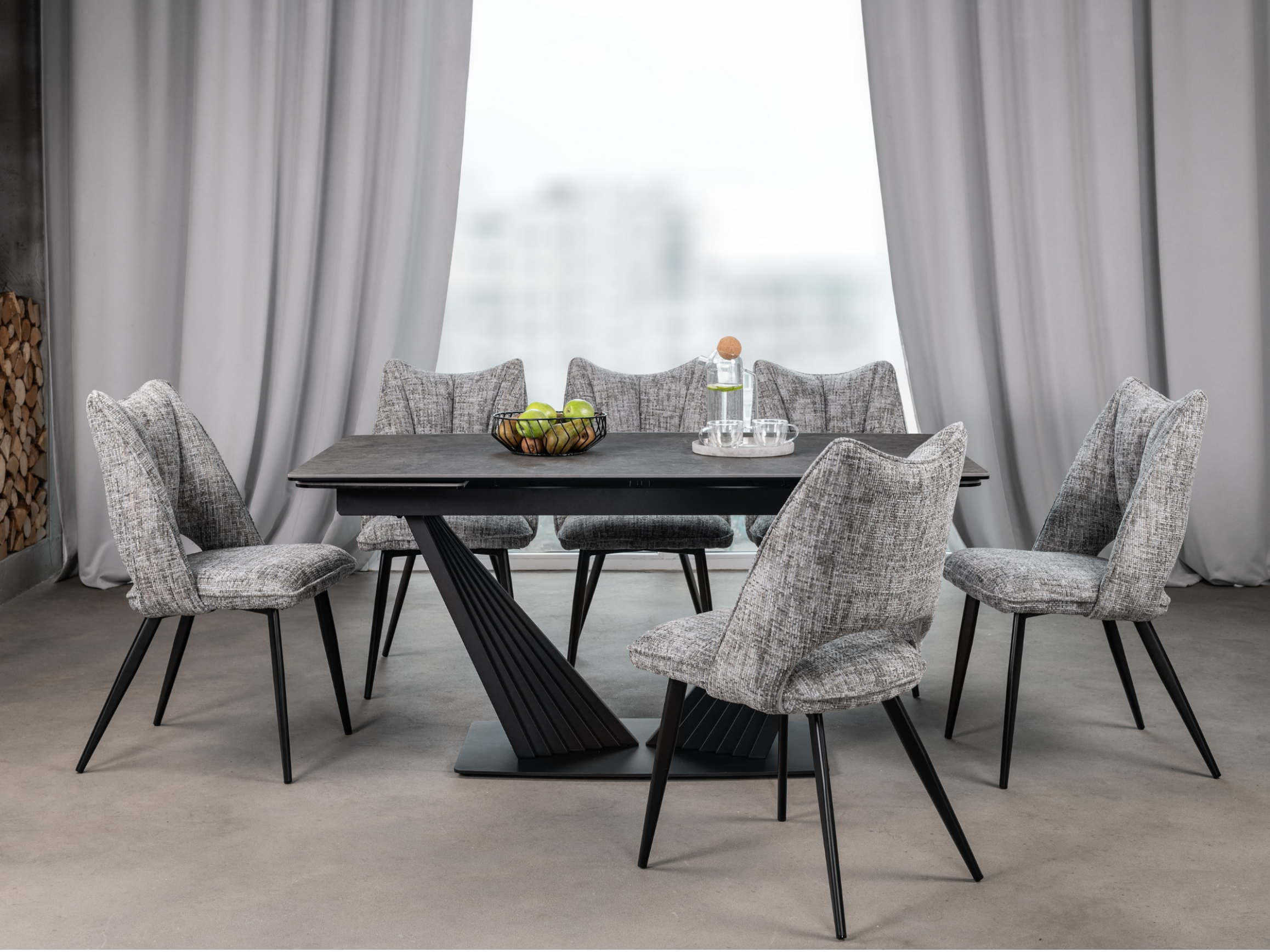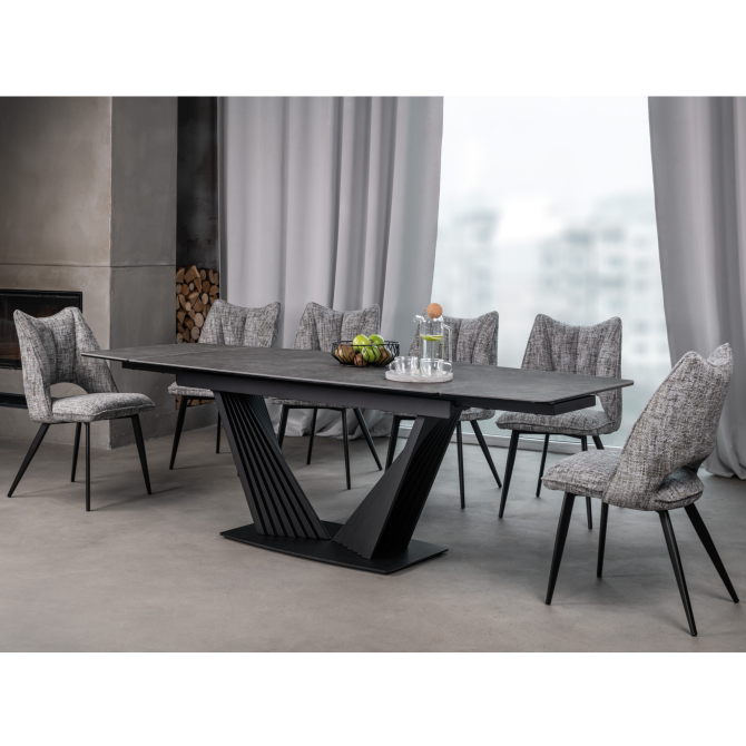 Матова кераміка з поєднанням гартованого скла надає столу особливий вигляд і підвищує його стійкість до подряпин і плям. Колір «грей шторм» додає елегантності та сучасності.