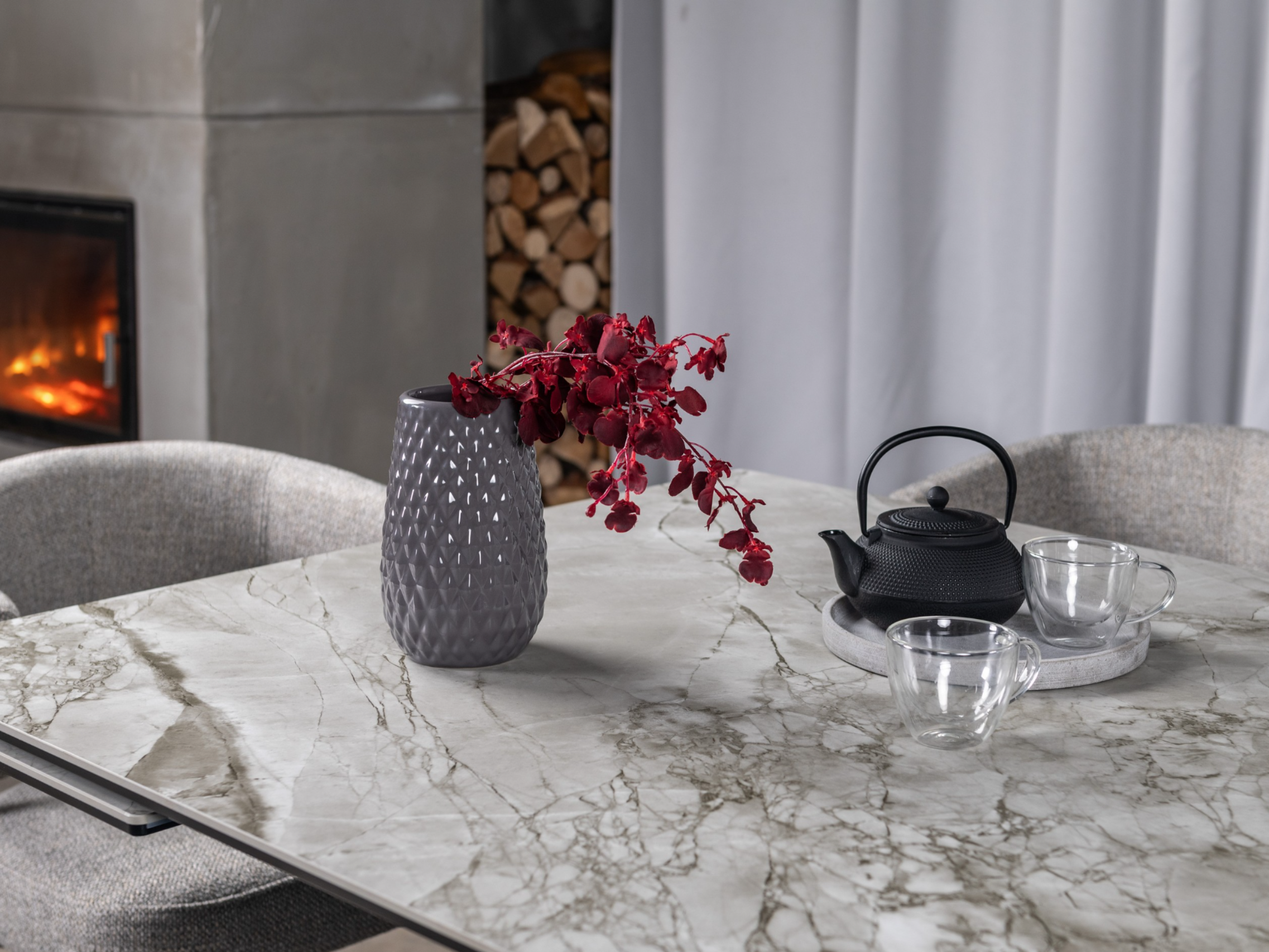 З компактною довжиною 180 см у зібраному стані та можливістю розширення до розкішних 260 см, стіл Орфео адаптується під будь-яку ситуацію – від тихих вечорів на двох до яскравих сімейних зустрічей.