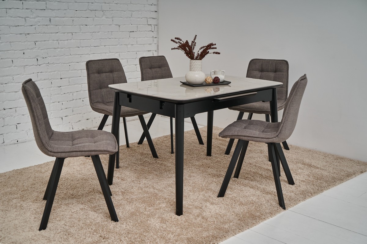 Керамічний стіл TM-76 калакатта мармур (сіра кераміка) + чорний