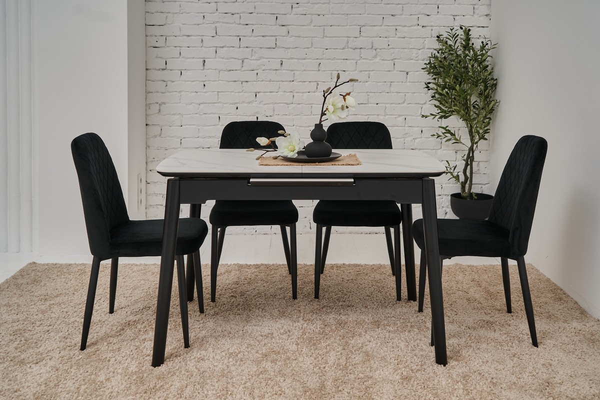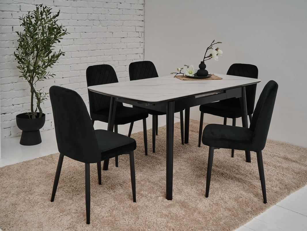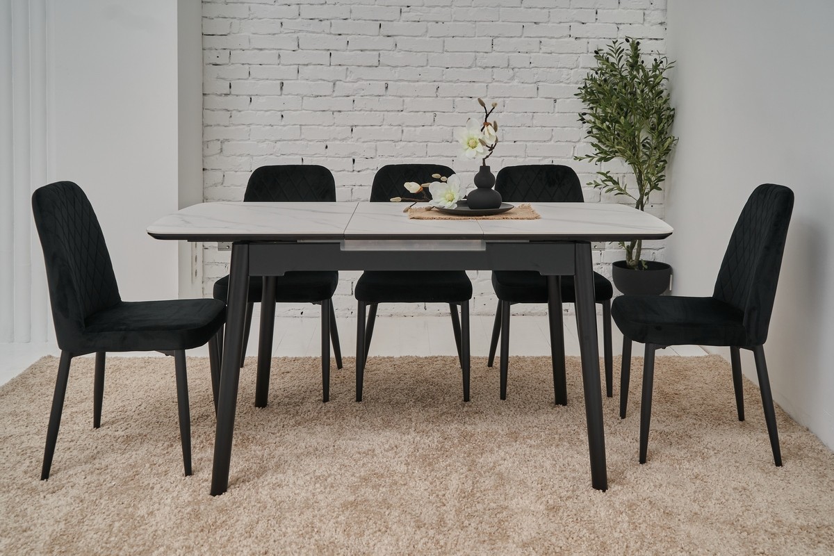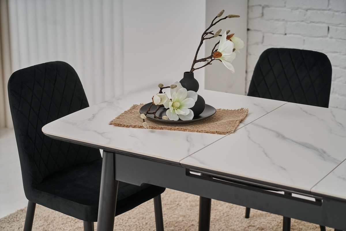 Керамічний стіл TM-76 калакатта мармур (сіра кераміка) + чорний