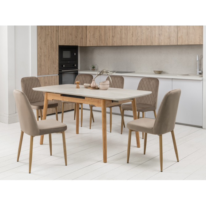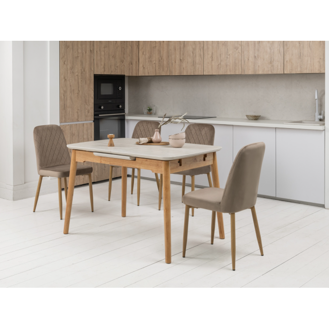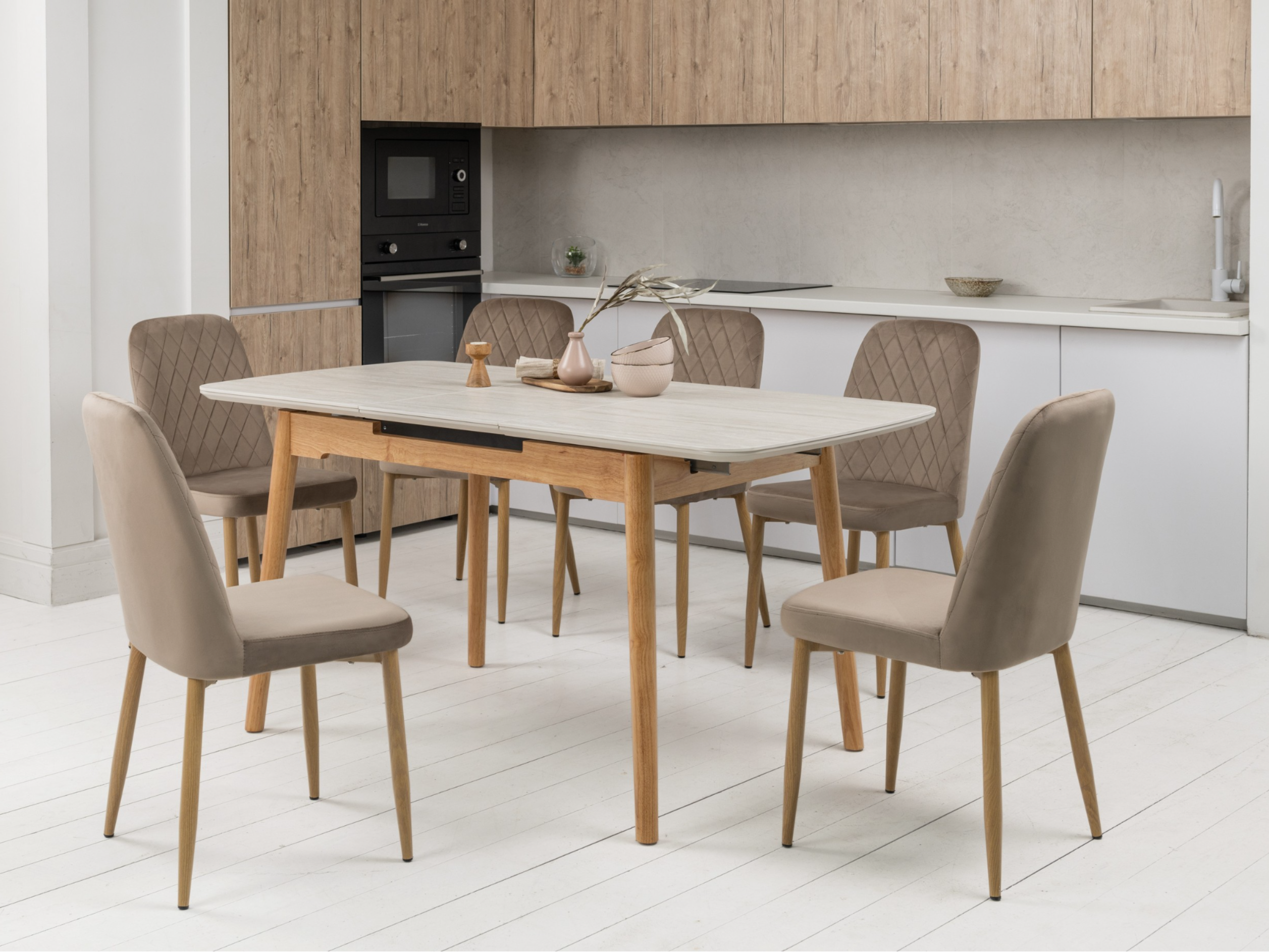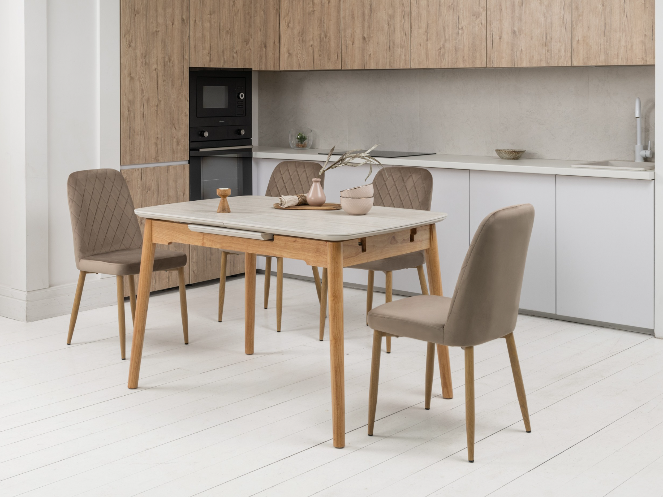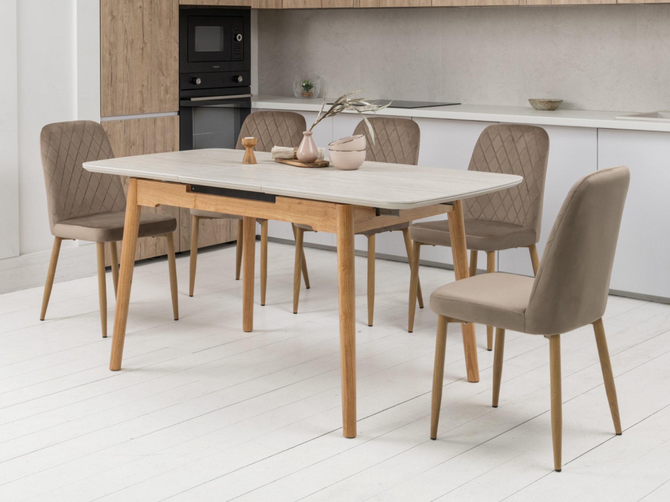 Сучасний автоматичний механізм розкладання робить використання столу легким та зручним. Просто потягніть за край столу, і додаткова секція з'явиться в його центрі, ваш стіл миттєво трансформується, надаючи додатковий простір для гостей.