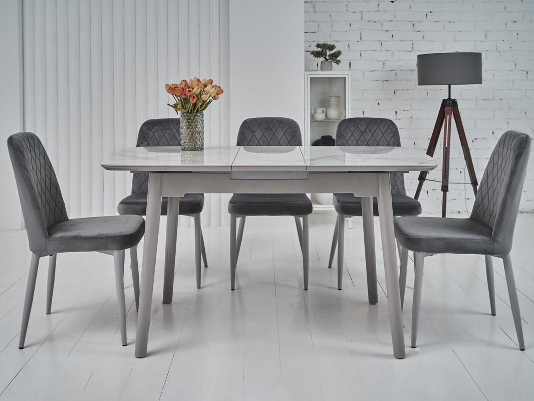 Стіл має розкладну конструкцію, що дозволяє збільшувати його розміри за потреби, забезпечуючи більше місця для гостей або сімейних обідів.