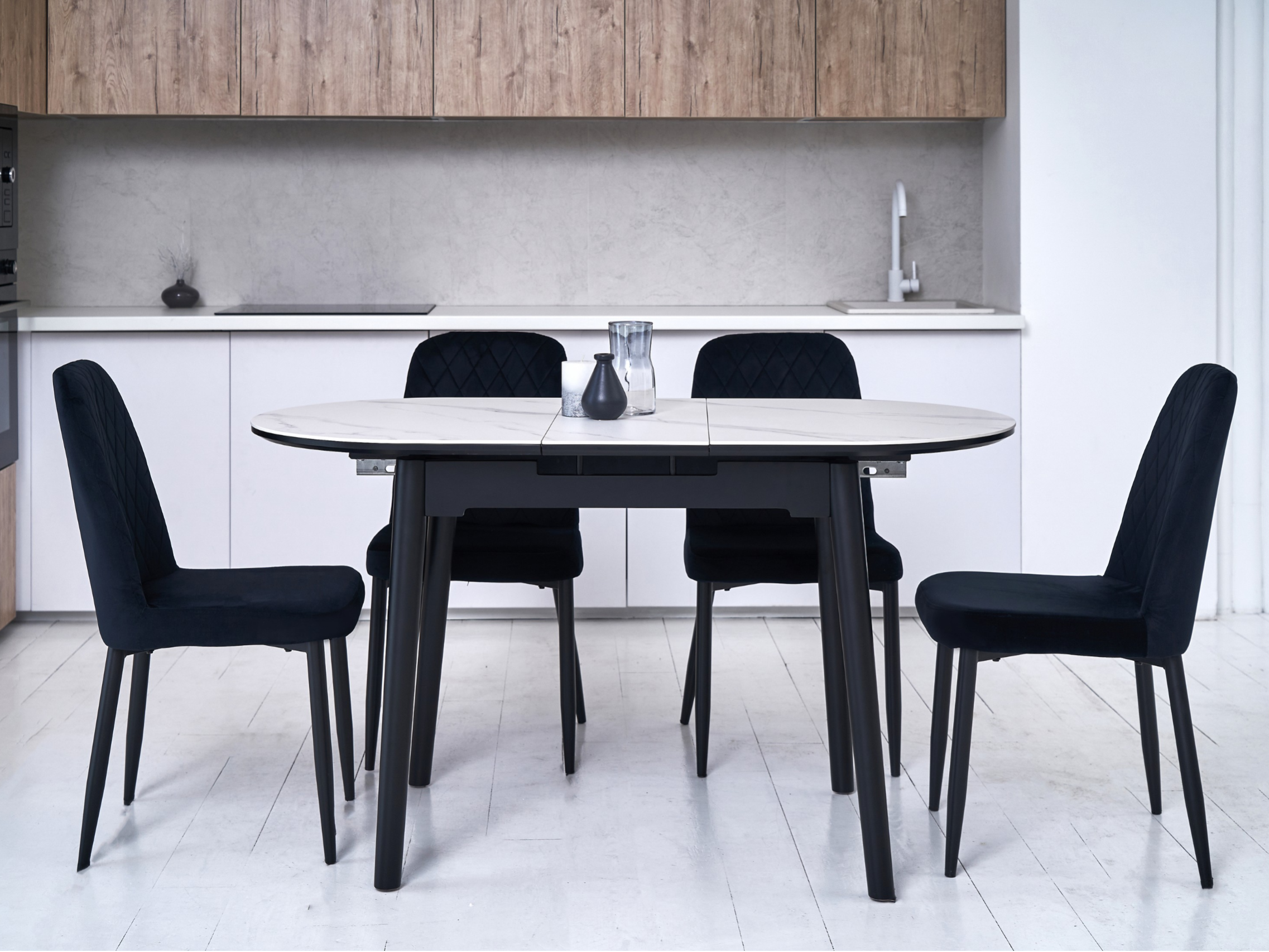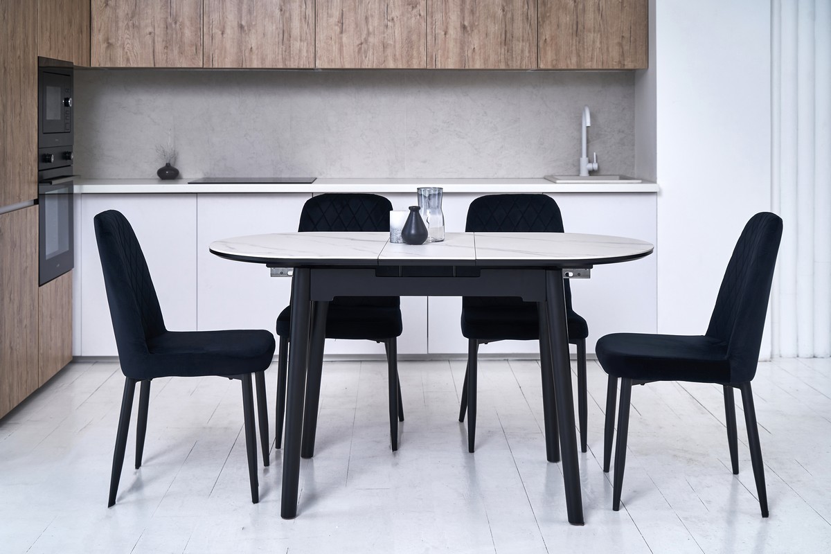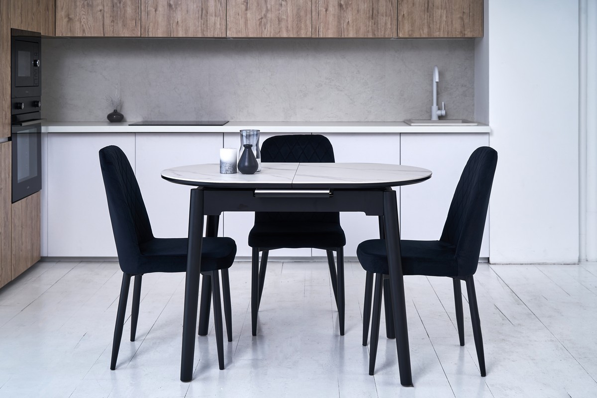 Обідній стіл у кольорі Чорний онікс привнесе стиль та вишуканість у ваш інтер'єр. Його овальна форма надає столу вишуканий вигляд, а чорний онікс додає елегантності та розкоші.