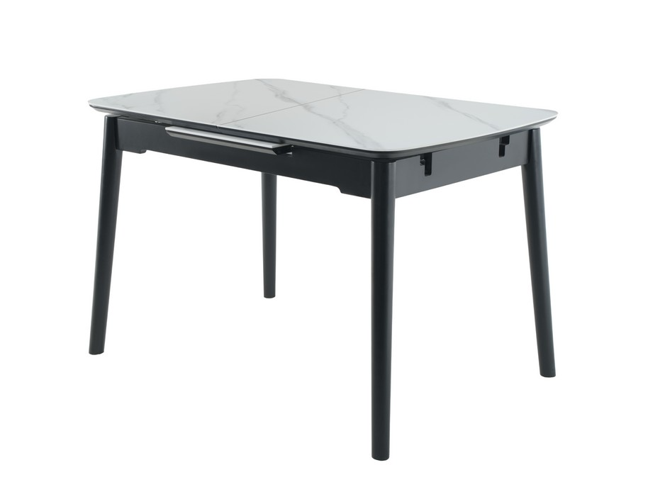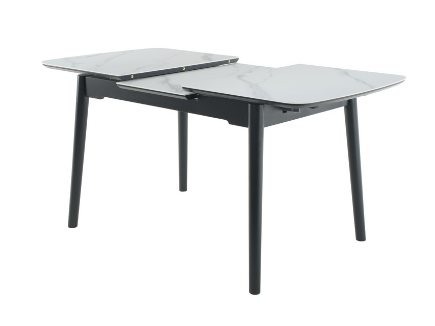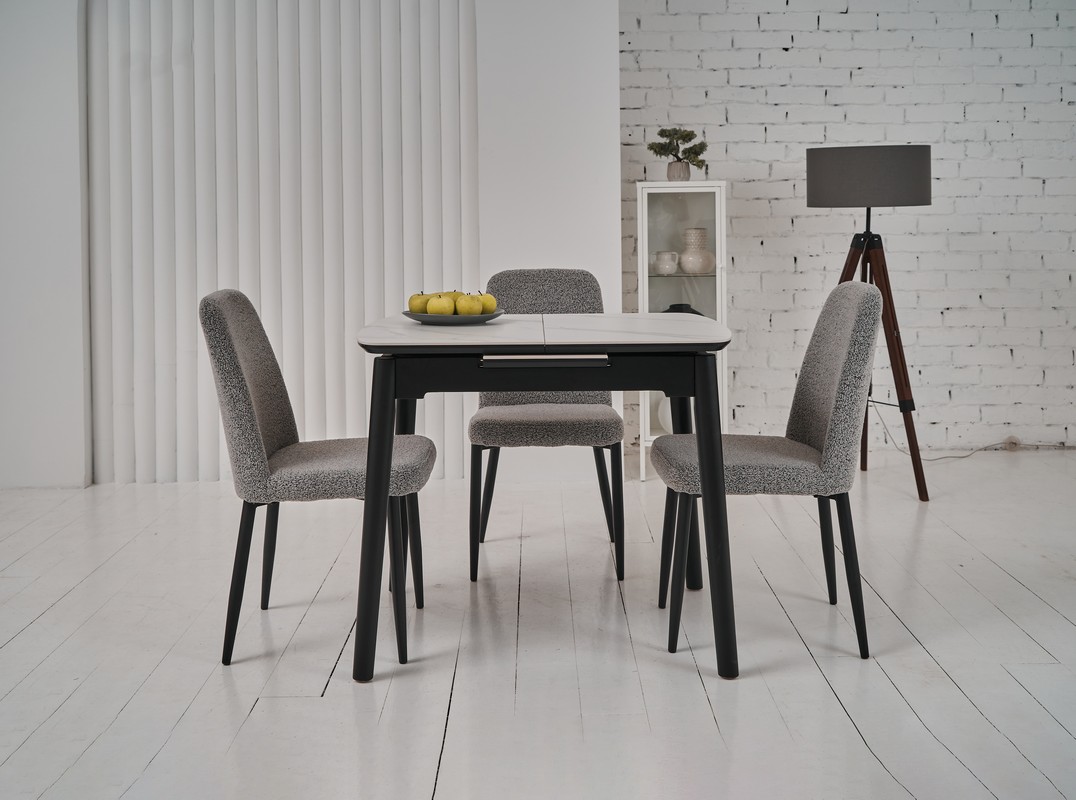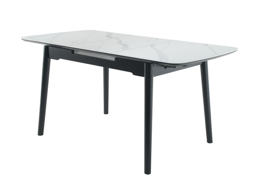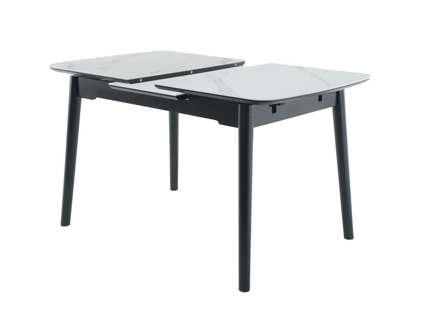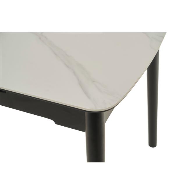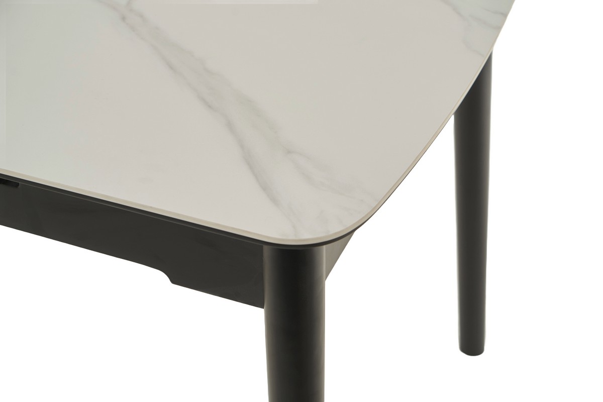 Основа столу виконана з фарбованого дерева чорного кольору, що створює стильний контраст з білою стільницею та додає меблям стійкості та міцності. Дерев'яна основа підкреслює сучасний дизайн столу та гармонійно вписується в різноманітні інтер'єрні рішення.