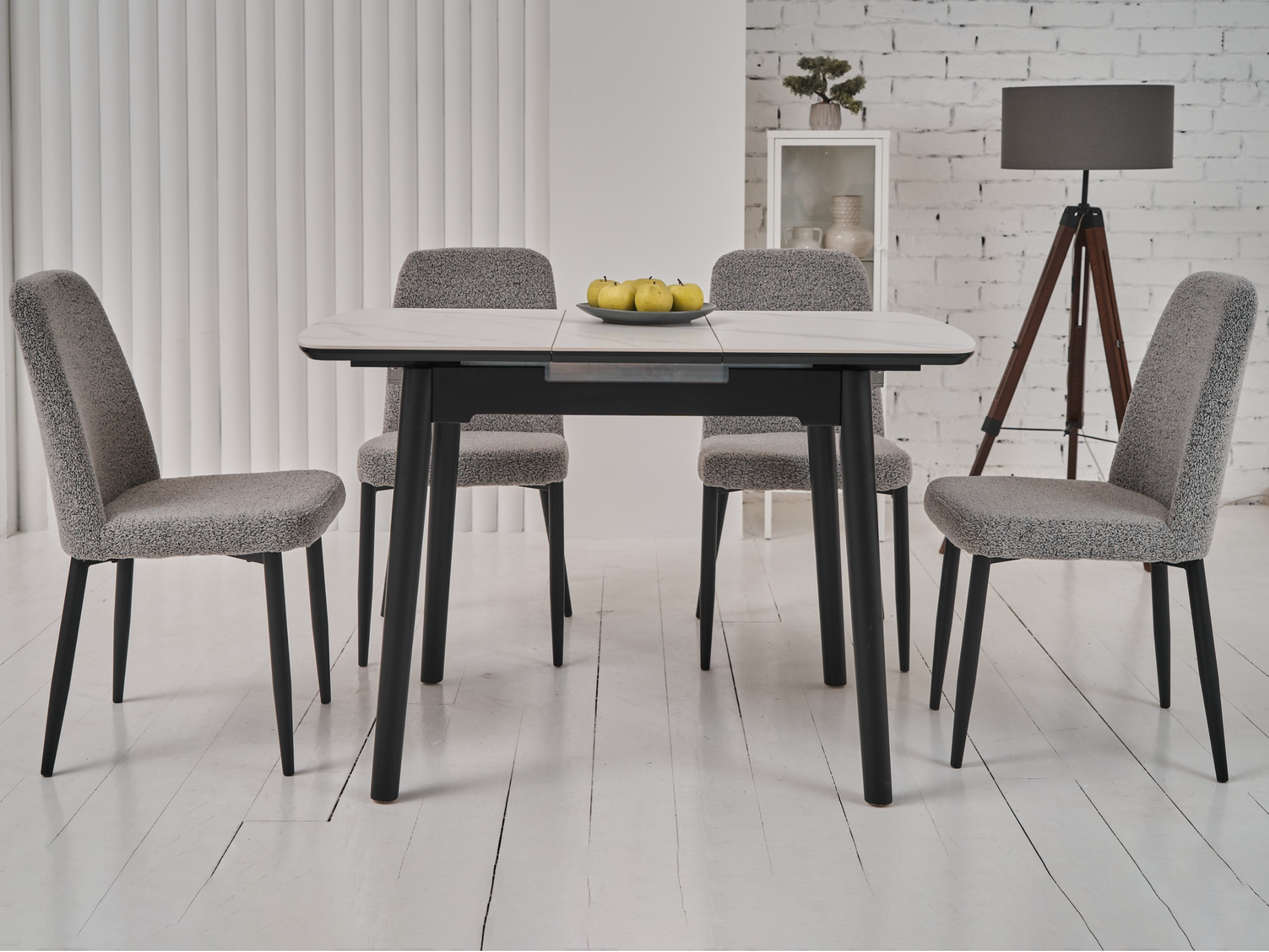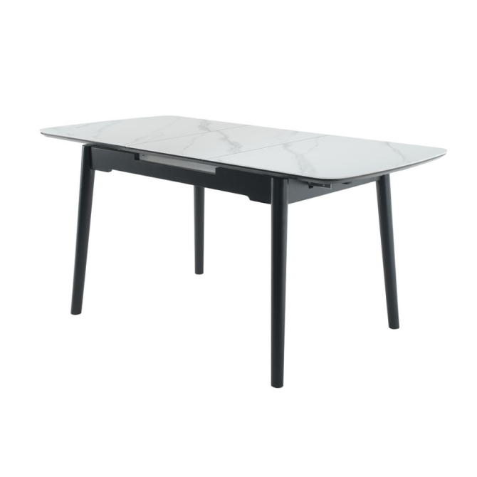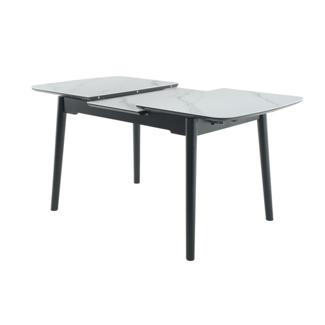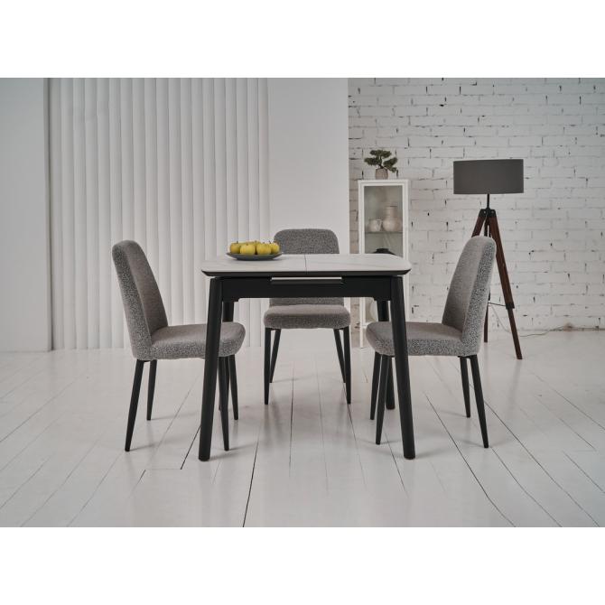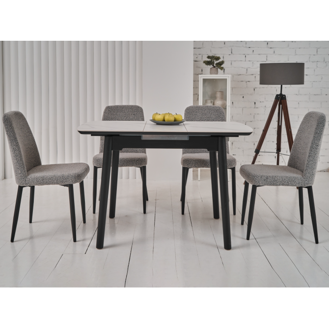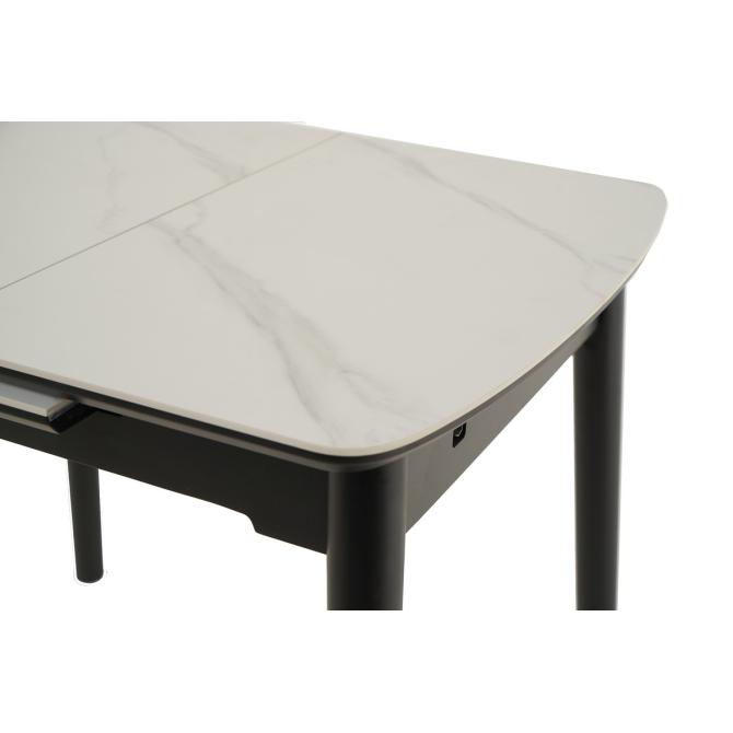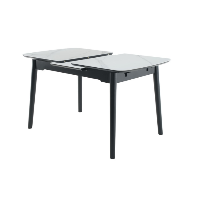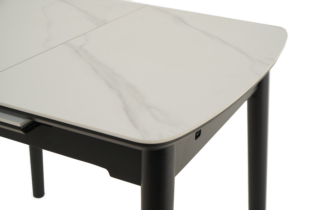 Основа столу виконана з фарбованого дерева чорного кольору, що створює стильний контраст з білою стільницею та додає меблям стійкості та міцності. Дерев'яна основа підкреслює сучасний дизайн столу та гармонійно вписується в різноманітні інтер'єрні рішення.