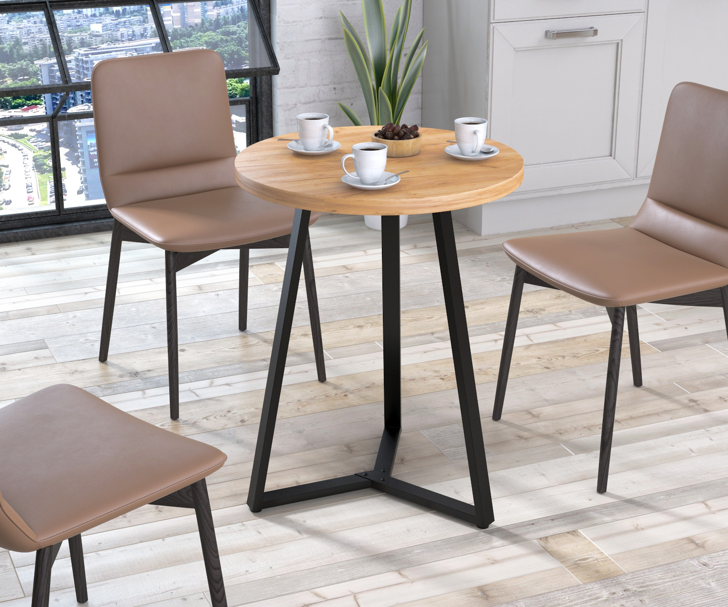 Круглий стол Трікс від компанії Loft Design - чудове поєднання витонченості і практичності. Він легко інтегрується у вашу кухню, обідню зону офісу чи кафе. Стильний та сучасний дизайн столу Трікс додає нотку сучасності та шарму у будь-який простір.