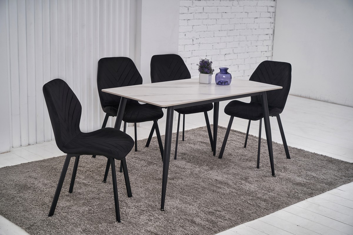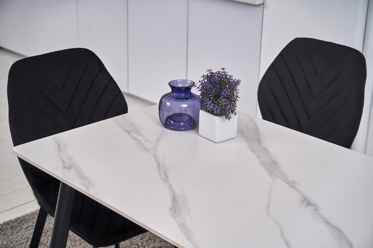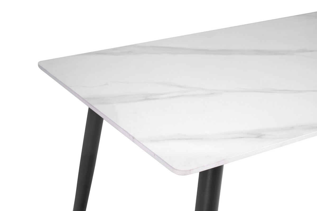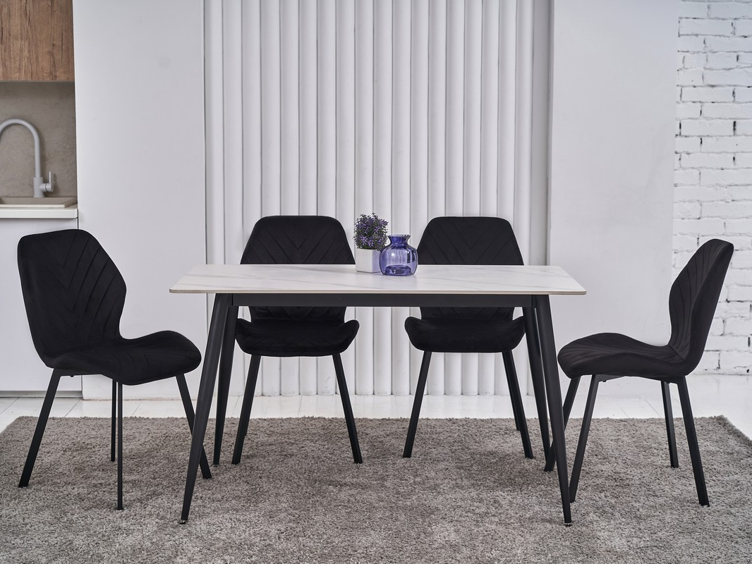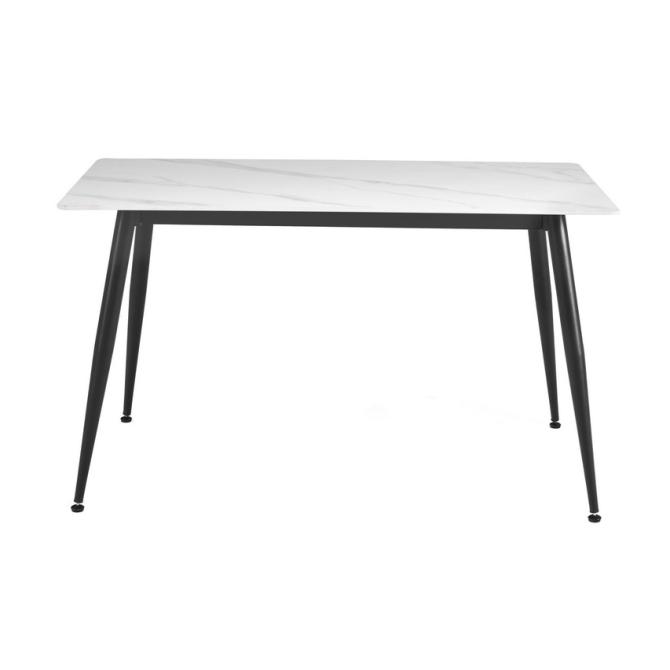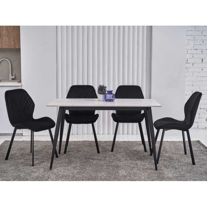 Прямокутна форма столу дозволяє легко вписати його в різні інтер'єри, будь то кухня, їдальня або вітальня. Чорні ніжки додають сучасності і легко поєднуються з іншими кольорами та матеріалами в приміщенні.