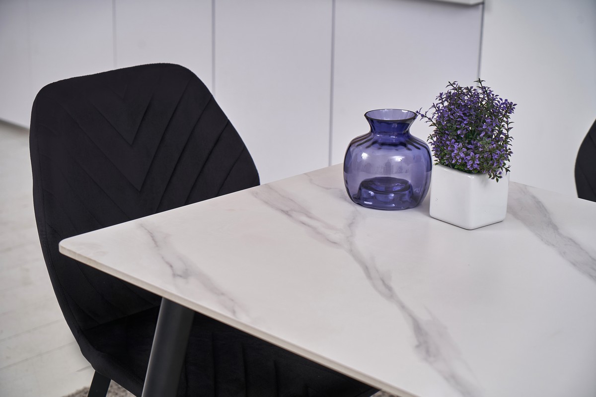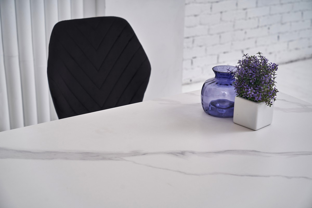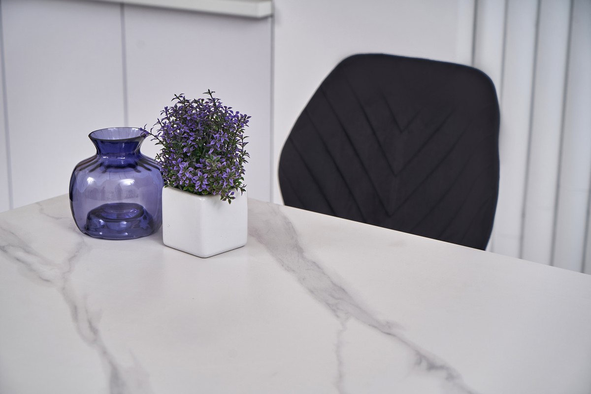 Матова керамічна стільниця є стійкою до подряпин і легко чиститься. Вона не відбиває світло, тому не залишає видимих слідів від пальців чи плям. Це робить стіл зручним у догляді, що важливо для повсякденного використання.
