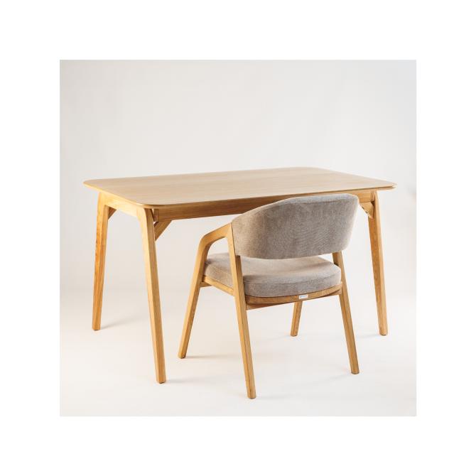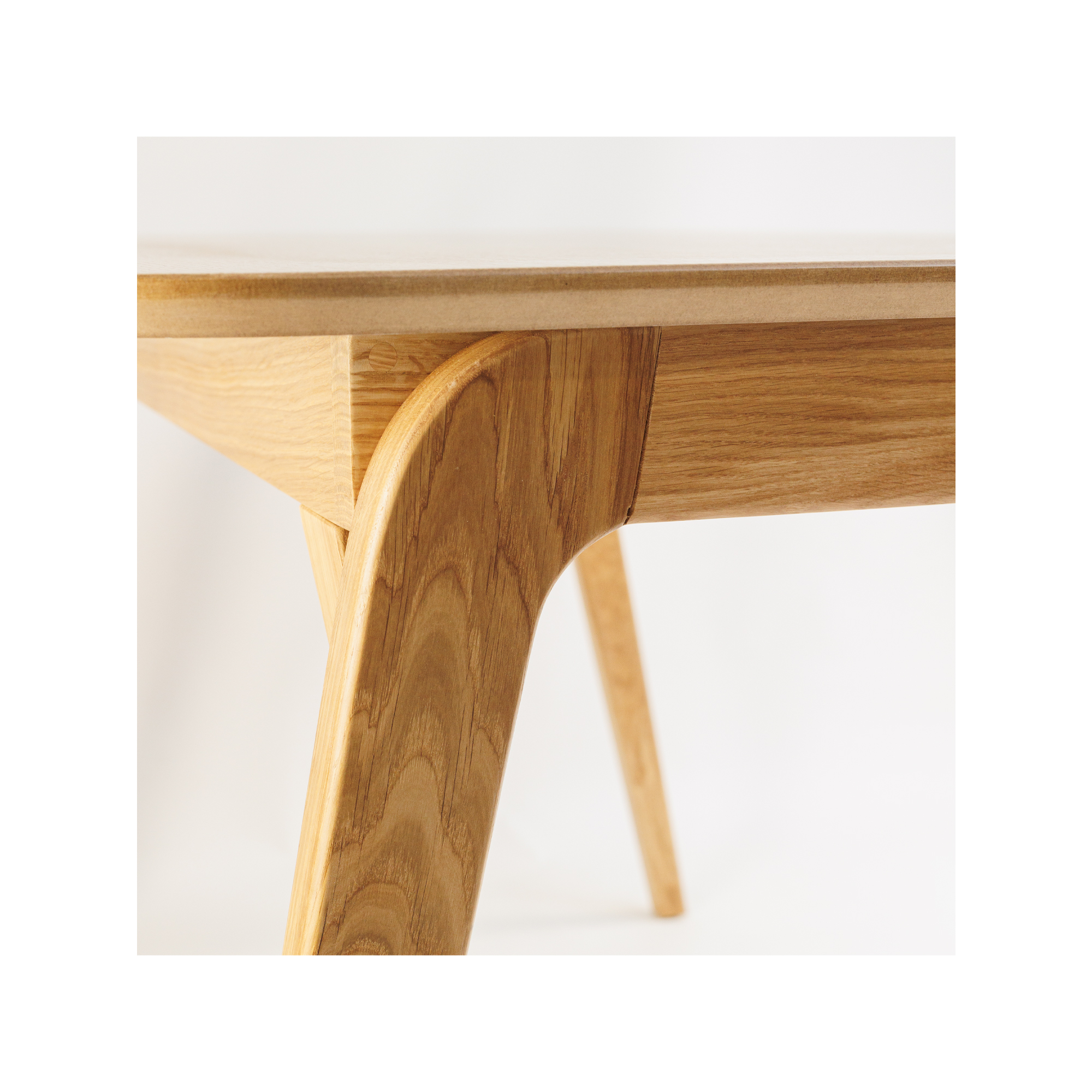 Стіл виготовляється з використанням натуральних і екологічних матеріалів. Каркас виготовлений з масиву дуба, а стільниця із МДФ шпонованого натуральним дубом.
