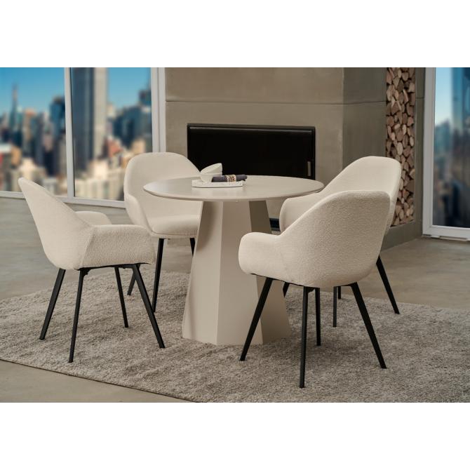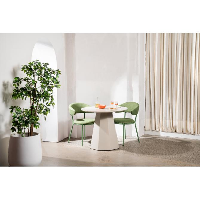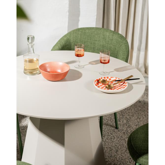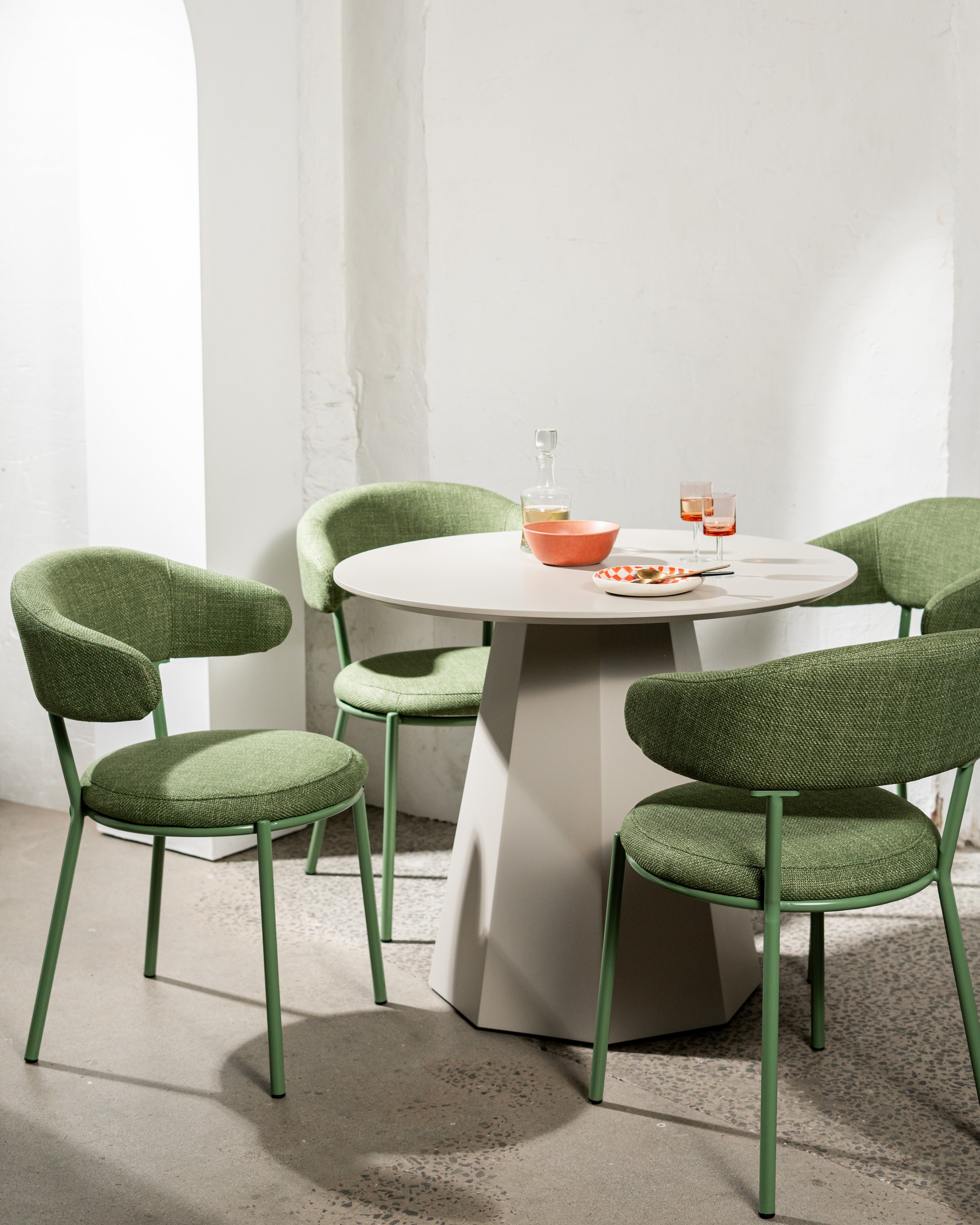 Кругла форма столу забезпечує рівномірний розподіл місць для сидіння навколо нього. Це сприяє більш затишному та природньому розташуванню гостей під час розмови або прийому їжі. Ніхто не опиняється "за кутом", що створює атмосферу комфорту та рівності.