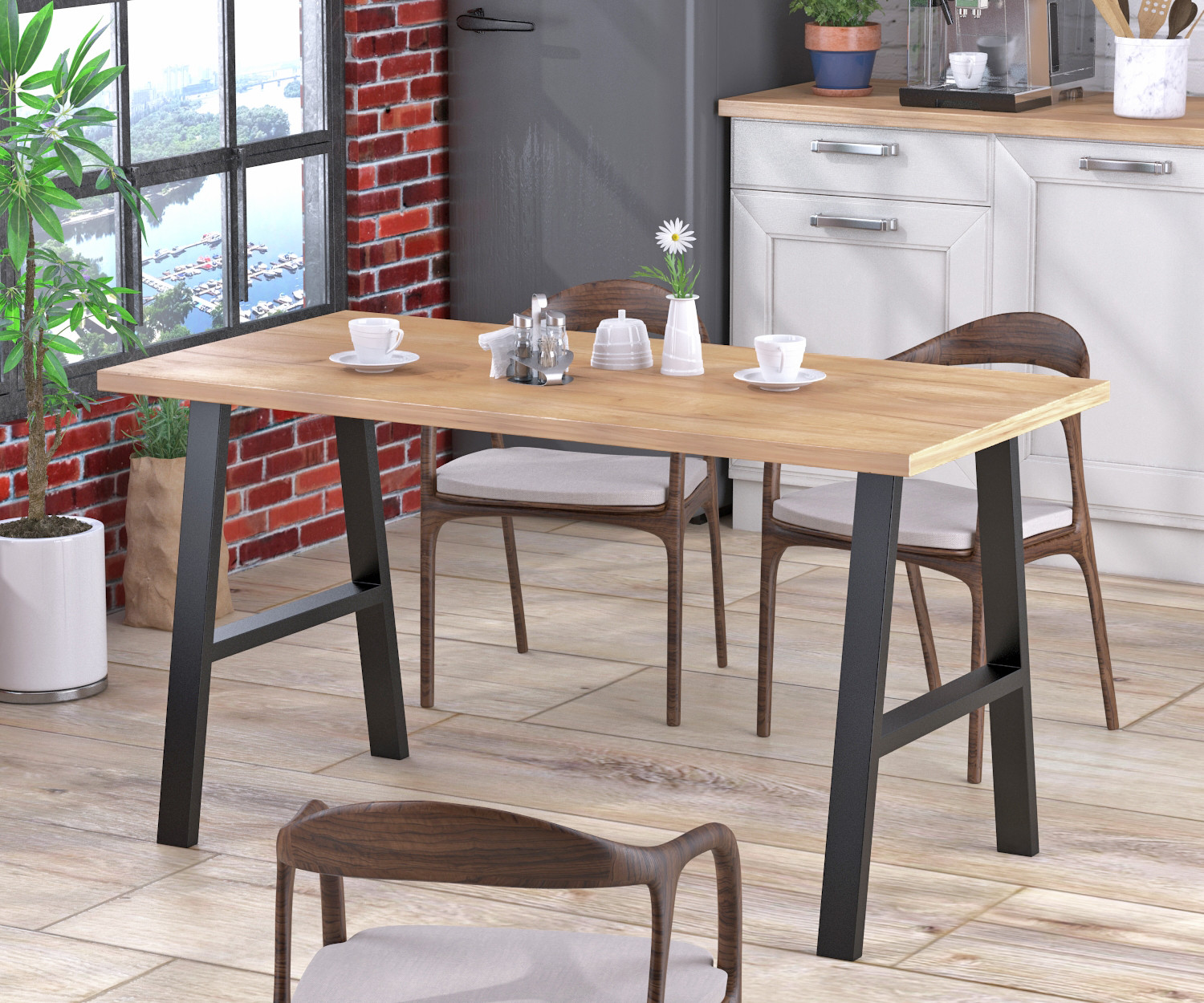 Обідній стіл Атлант від компанії Loft Design виконаний в стилі Лофт в самому класичному розумінні: масивні металеві ніжки поєднуються з масивною стільницею з красивою текстурою імітує дорогі породи дерева. Оригінальна конструкція ніжок виглядає дуже стильно і свіжо.