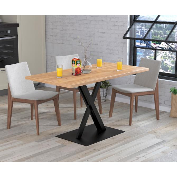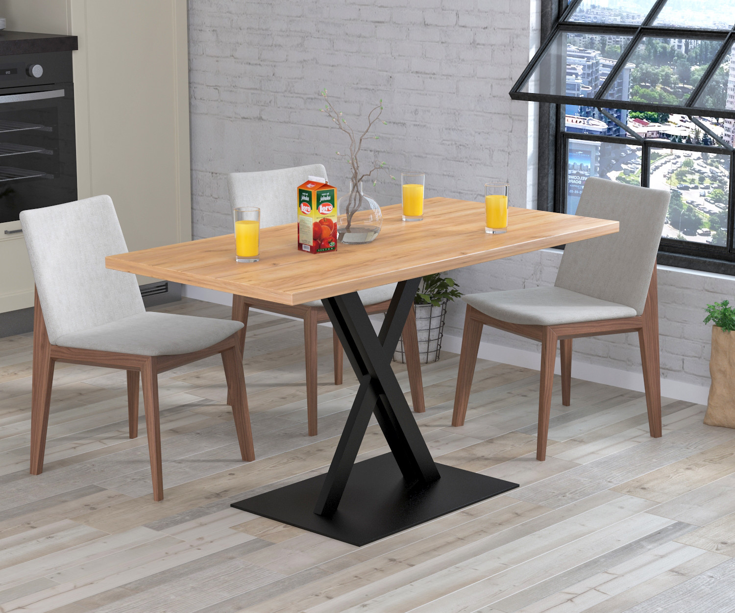 Обідній стіл Експозишн від компанії Loft Design – витончена модель у стилі Лофт, для вашої кухні чи кафе. Унікальна Х-подібна конструкція опори з металу, надає столу солідного та сучасного вигляду.