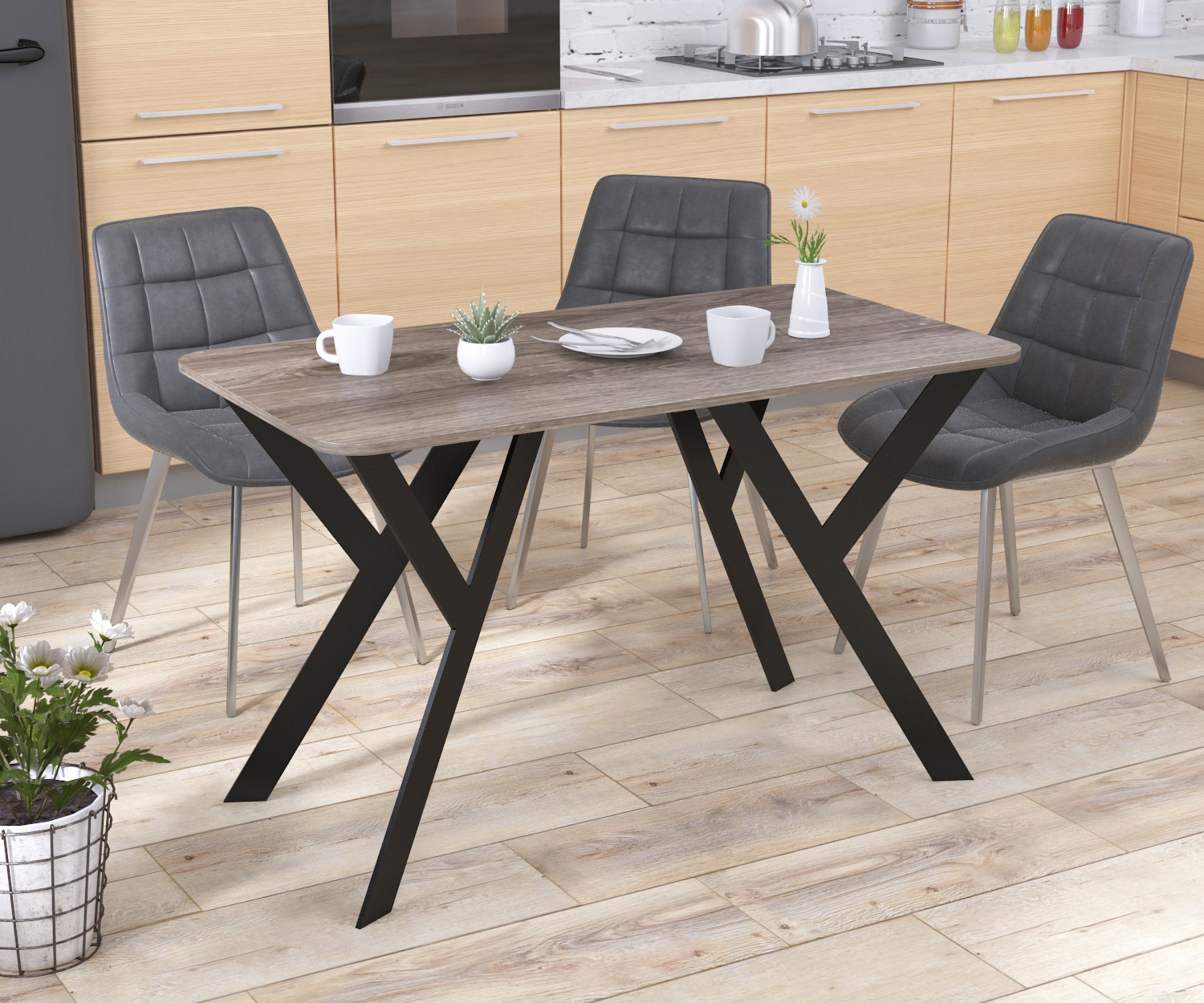 Обідній стіл Ішла розміром 120 см на 65 см - витончена та стильна веш. Головною перевагою столу є його металеві ніжки, які виготовлені з вузької труби з профілем 60*15 мм.