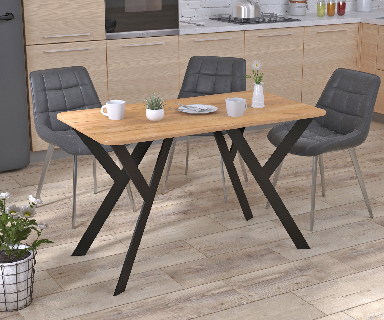 Обідній стіл Ішла розміром 120 см на 65 см - витончена та стильна веш. Головною перевагою столу є його металеві ніжки, які виготовлені з вузької труби з профілем 60*15 мм.
