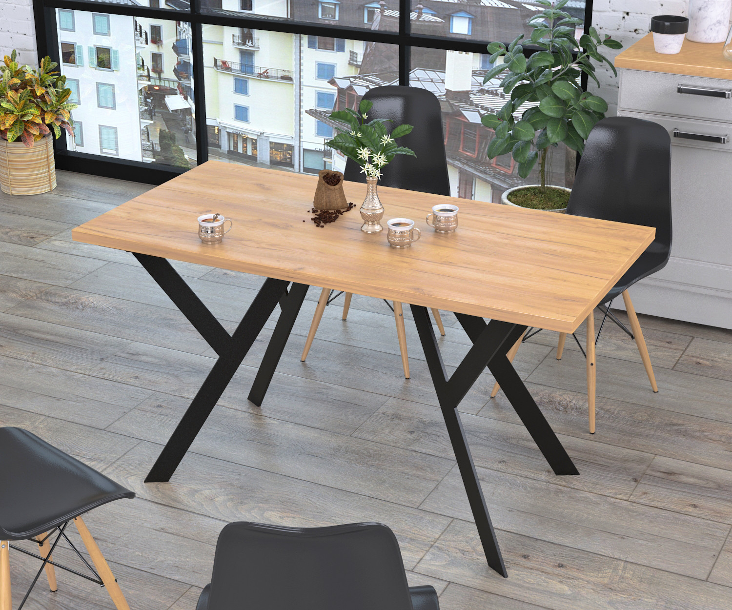Обідній стіл Ішла від компанії Loft Design - витончений і стильний. Головною гордістю столу є його металеві ніжки, які виконано з вузької труби з профілем 60*10 мм. Їх витончена форма підкреслює граціозність столу. Цей стіл підійде для будь-якої сучасної кухні.