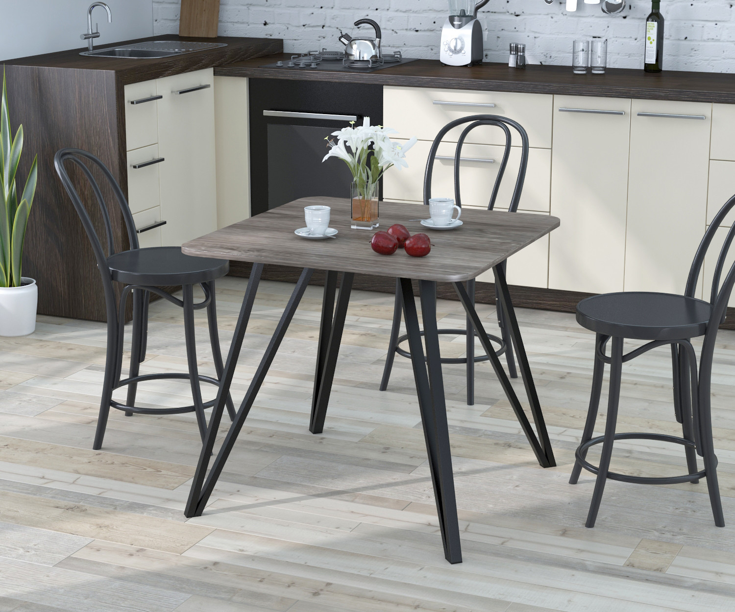 Квадратний обідній стіл Ліма 80-80 від компанії Loft Design - елегантний та стильний предмет інтер'єру. У ньому немає нічого зайвого: невелика стільниця та акуратні та стійкі металеві ніжки.