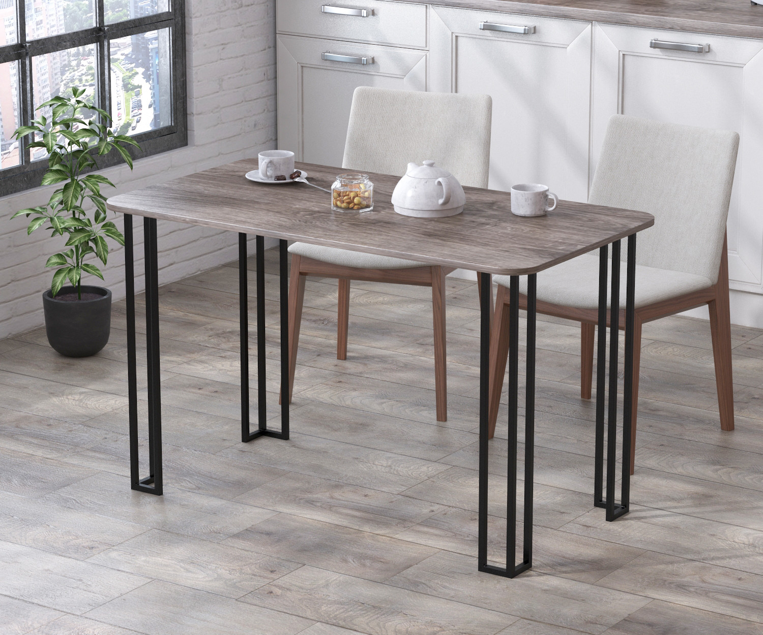 Цей стіл підійде для будь-якої сучасної кухні. Прямі ніжки столу, виконані з тонких труб, виглядають солідно і в той же час прозоро і привертають на себе зайву увагу. Це сучасне бачення класичного дизайну з ухилом на популярний стиль Лофт.