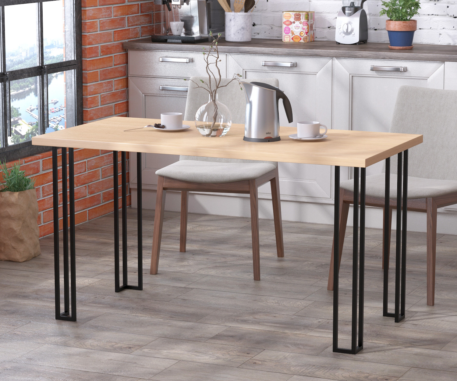 Обідній стіл Сквер від компанії Loft Design виконаний у стилі Лофт: металеві ніжки поєднуються з масивною стільницею з красивою текстурою дерева, що імітує дорогі породи.
