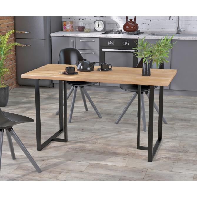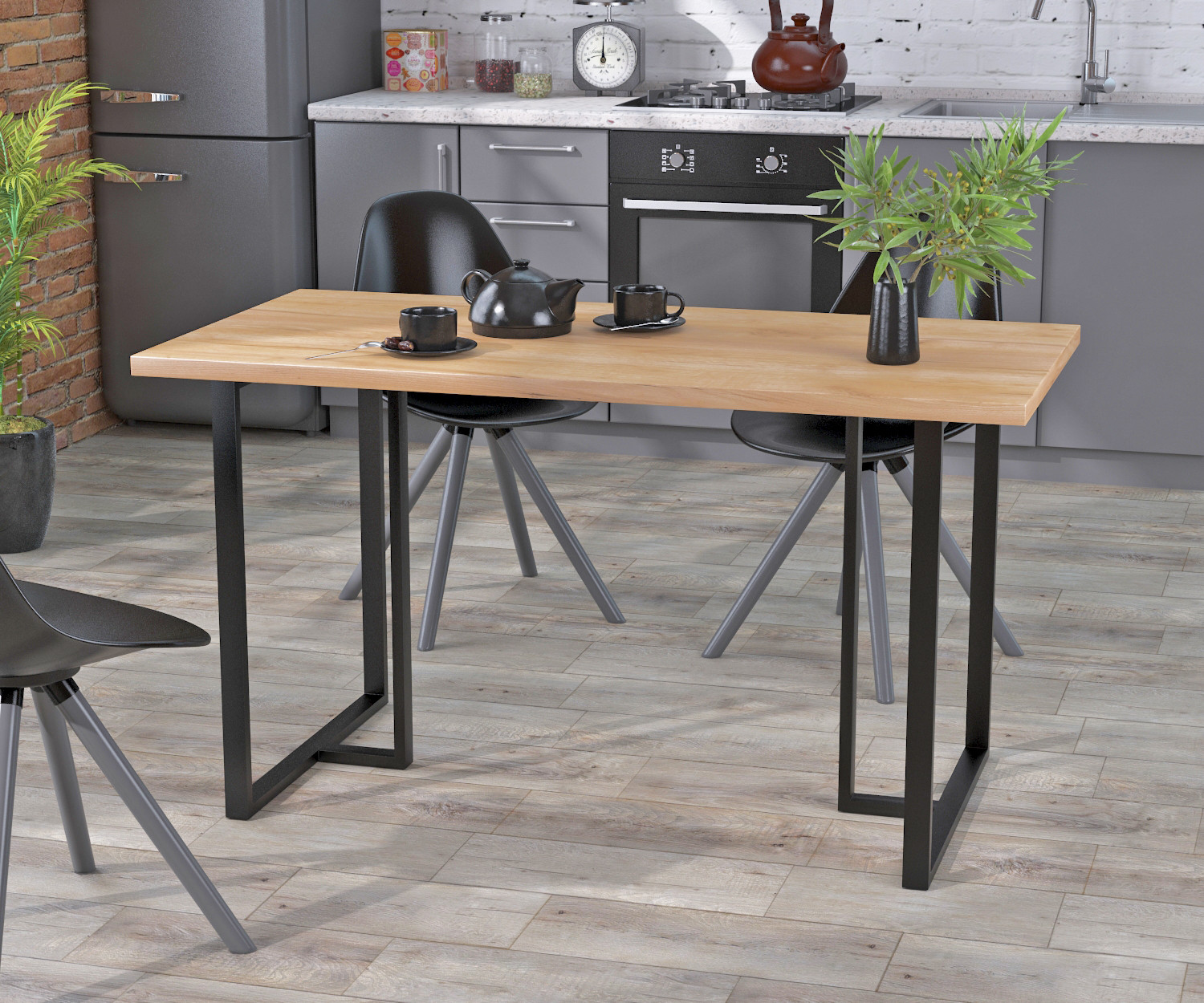 Обідній стіл Тетра від компанії Loft Design виконаний у стилі Лофт у самому класичному розумінні: масивні металеві ніжки поєднуються з масивною стільницею з красивою текстурою дерева, що імітує дорогі породи. Цей стіл підійде для будь-якої сучасної кухні чи офісної обідньої зони.