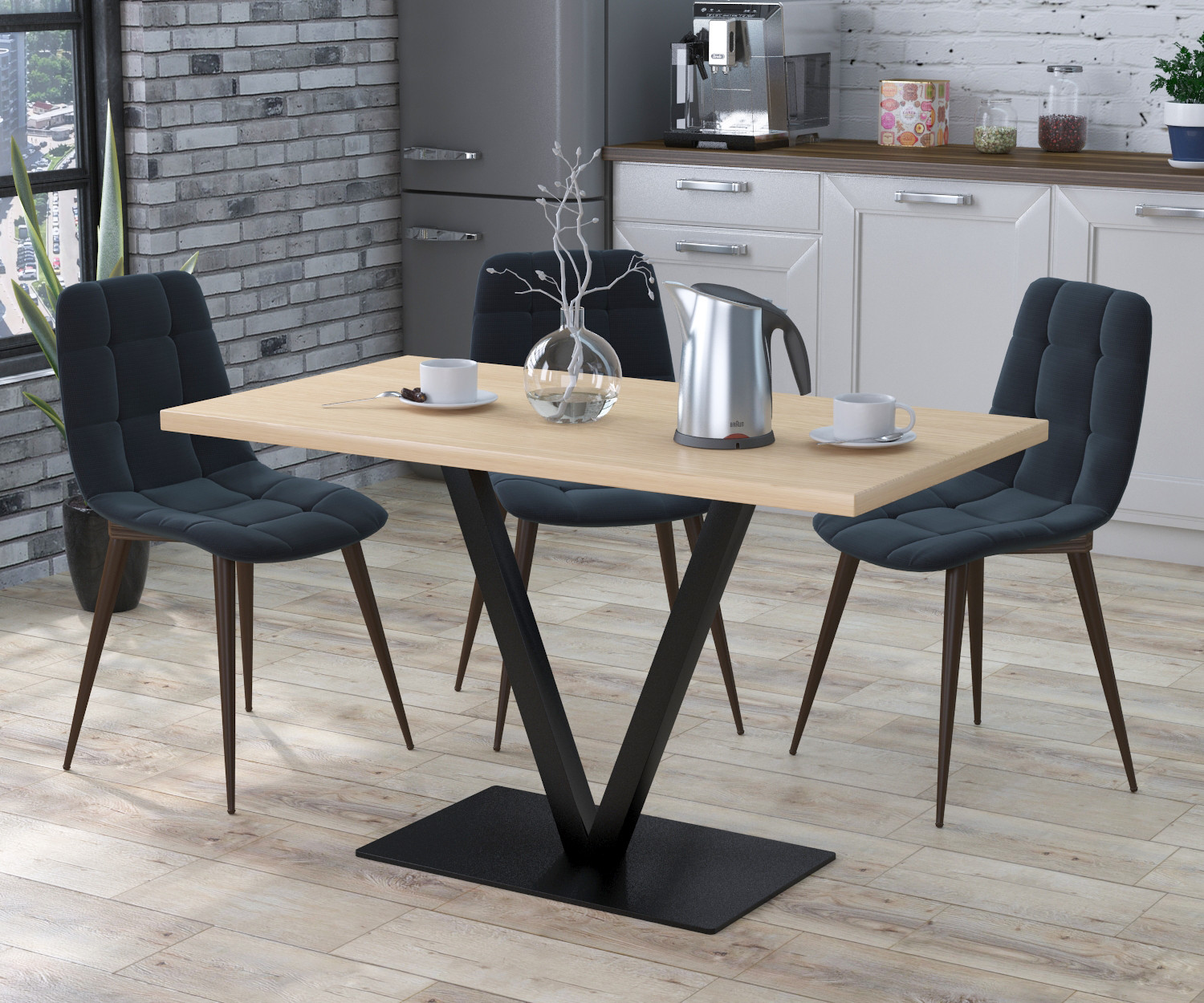 Обідній стіл Вінсент - втілення елегантності та стилю. Він привертає увагу своїми металевими ніжками, які розташовані в унікальній композиції, що надає столуграційність.