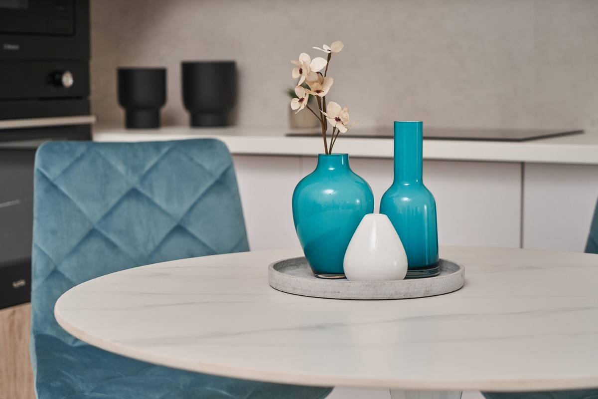 Кругла форма стільниці діаметром 90 см робить стіл ідеальним для невеликих обідніх зон або кухонь. Така форма сприяє комфортному спілкуванню і дозволяє розмістити за столом більше людей у порівнянні з прямокутними столами.
