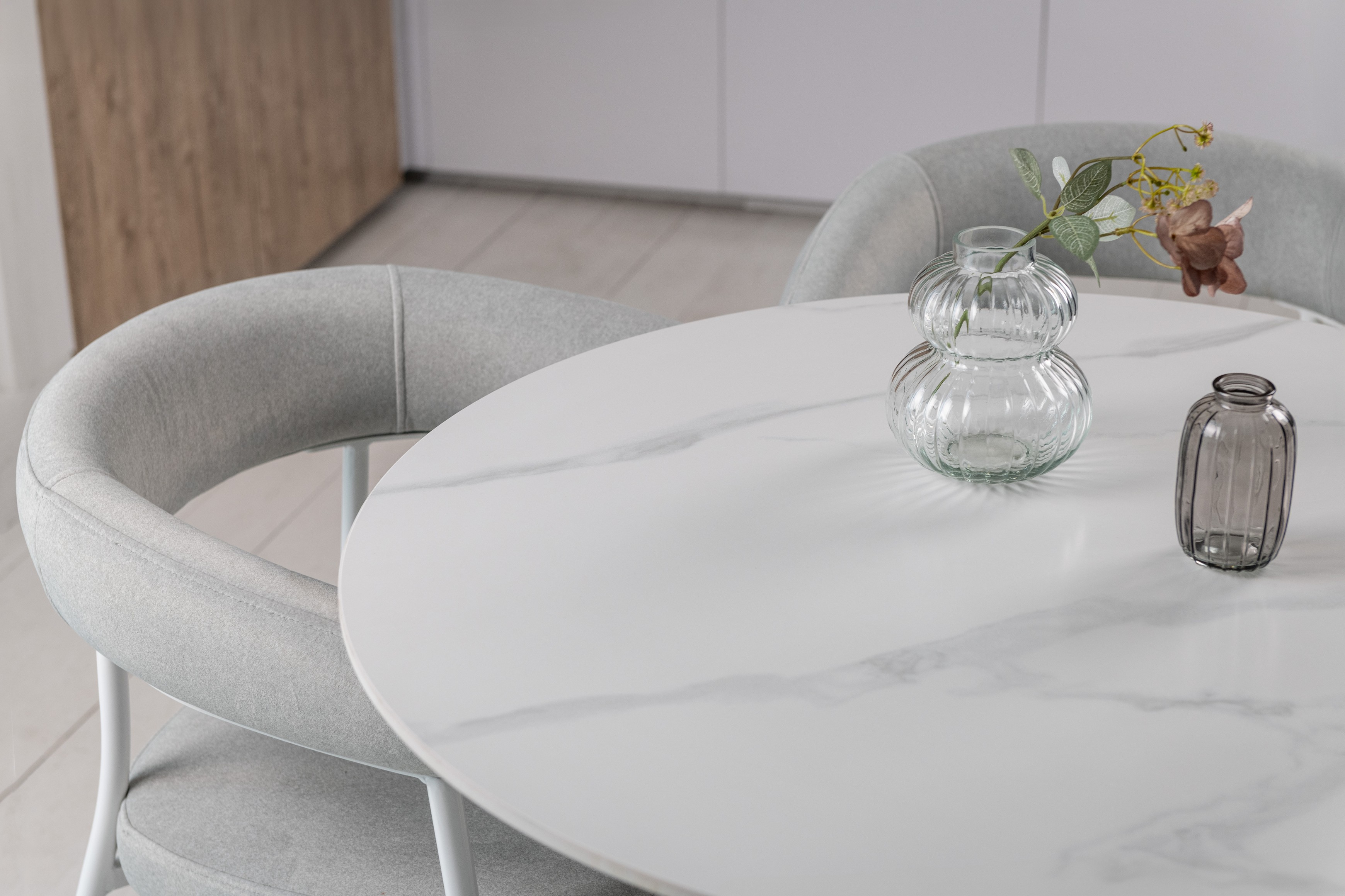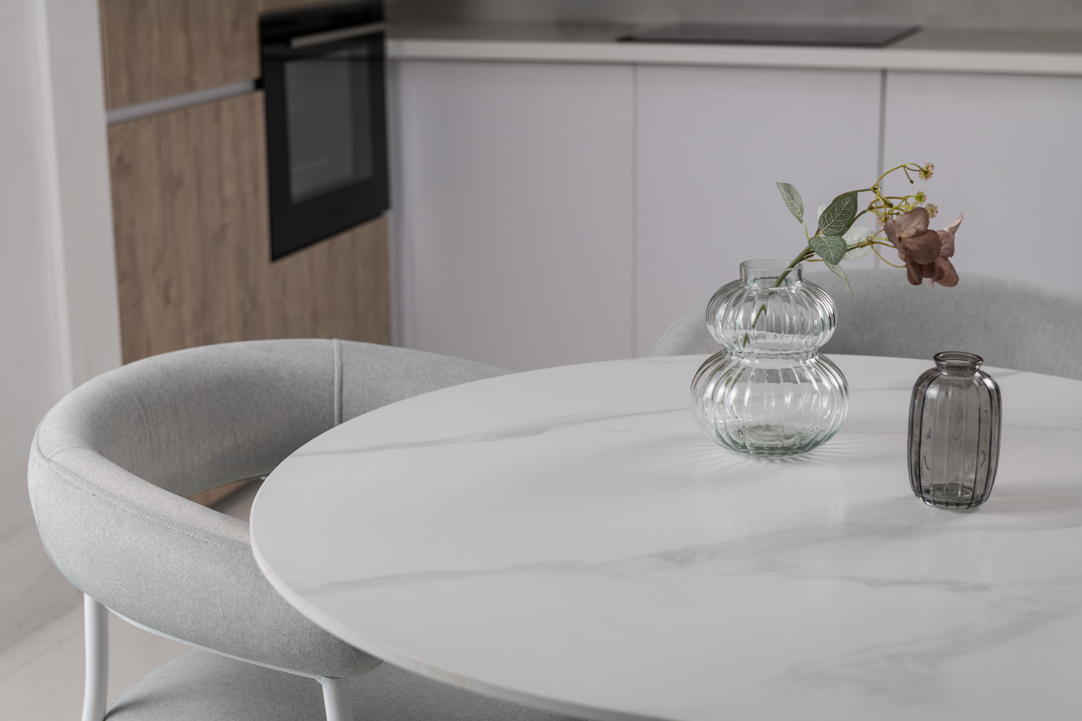 Діаметр 90 см робить стіл ідеальним для невеликих кухонь, їдалень або кавових зон. Він не займає багато місця, але достатній для комфортного розміщення 2-4 осіб.