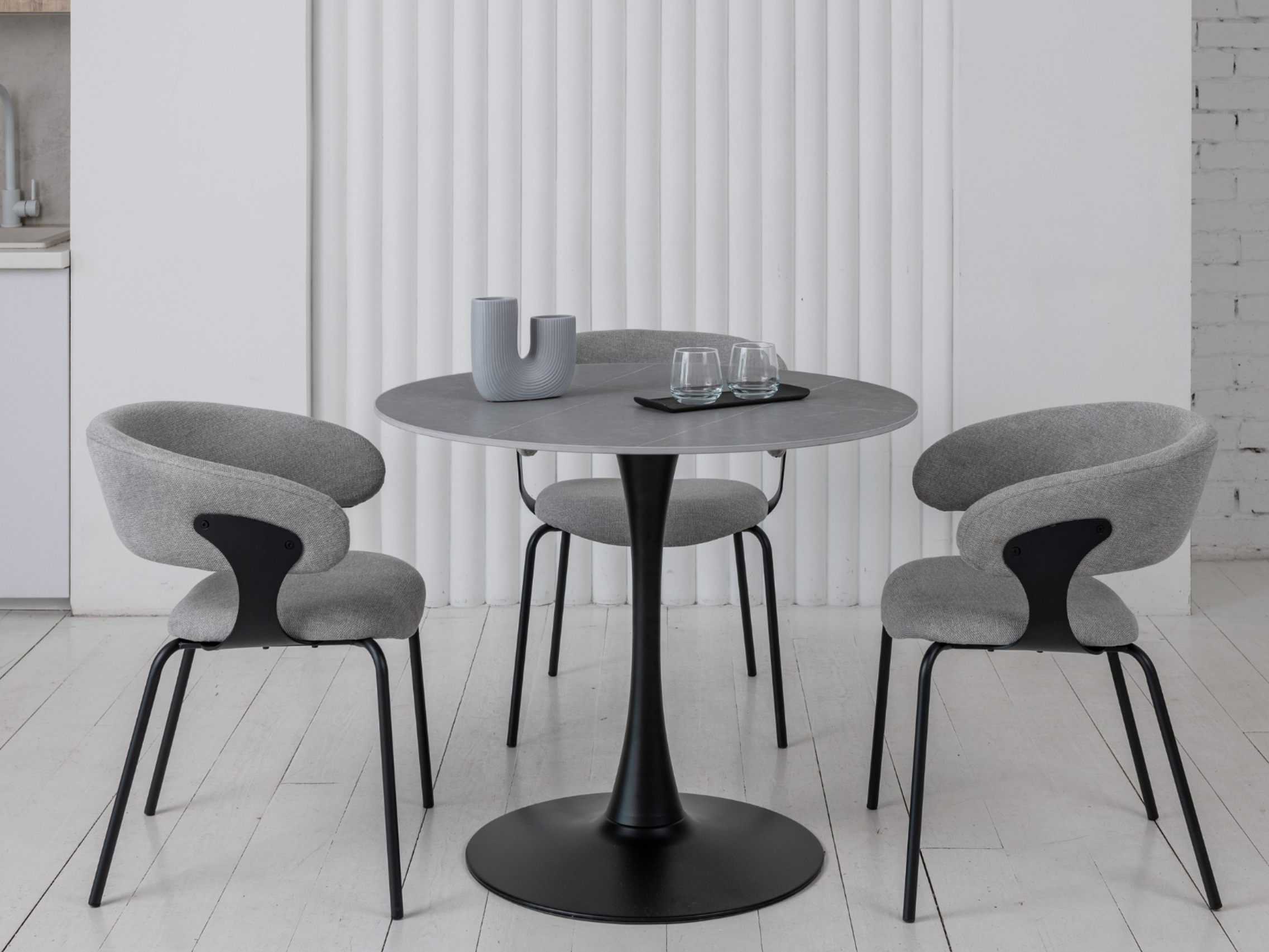Кругла форма стільниці діаметром 90 см робить стіл ідеальним для невеликих обідніх зон або кухонь. Така форма сприяє комфортному спілкуванню і дозволяє розмістити за столом більше людей у порівнянні з прямокутними столами.
