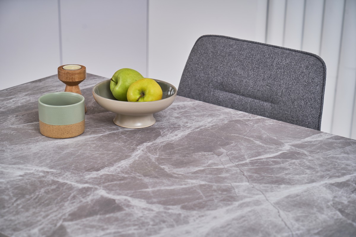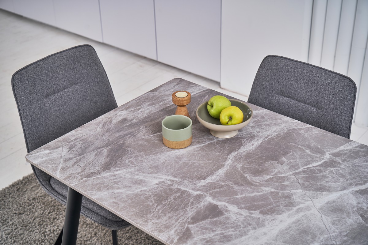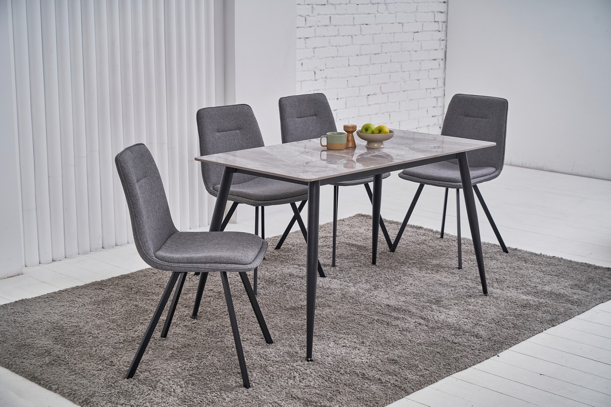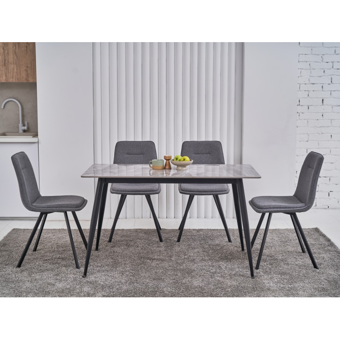 Прямокутна форма стола дозволяє легко вписати його в різні інтер'єри, будь то кухня, їдальня чи вітальня. Чорні ніжки додають сучасності і легко поєднуються з іншими кольорами та матеріалами в приміщенні.