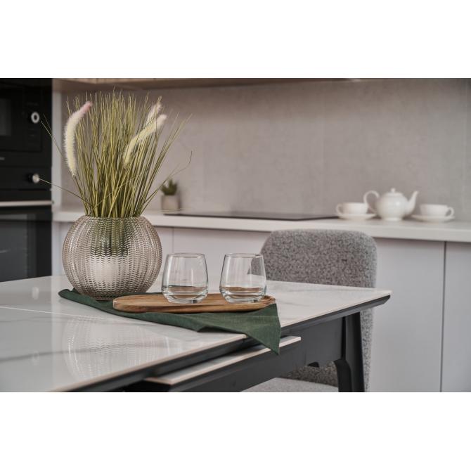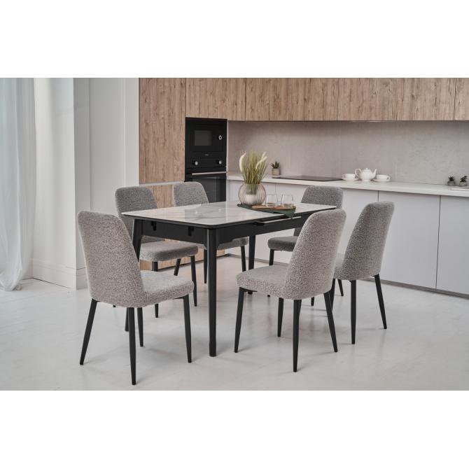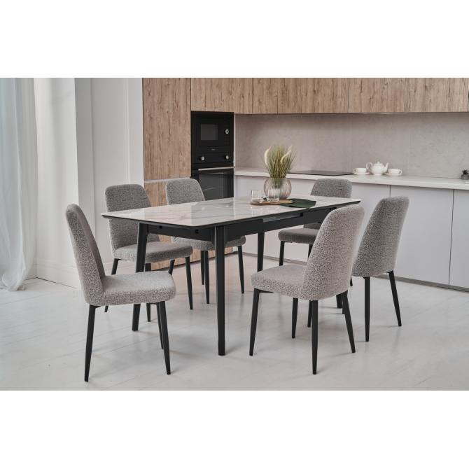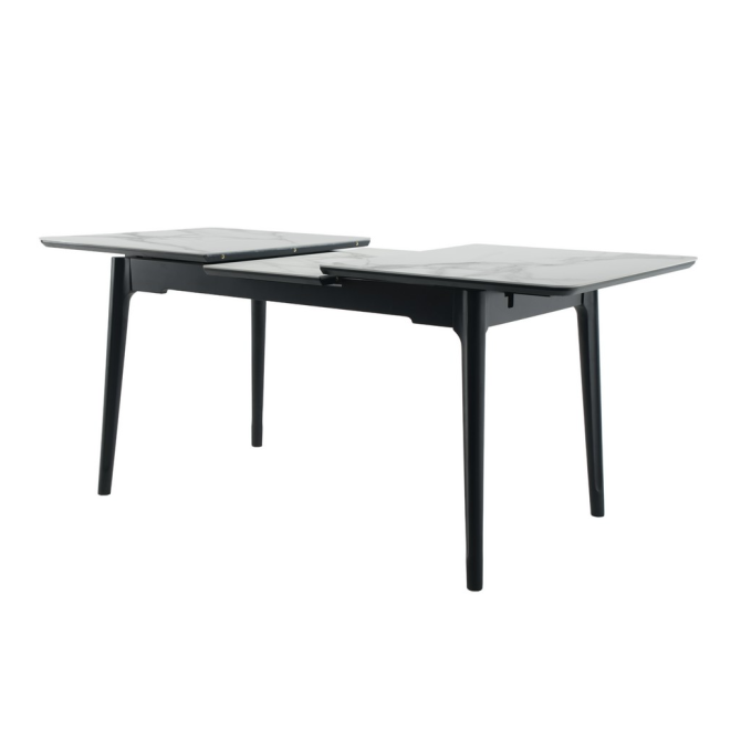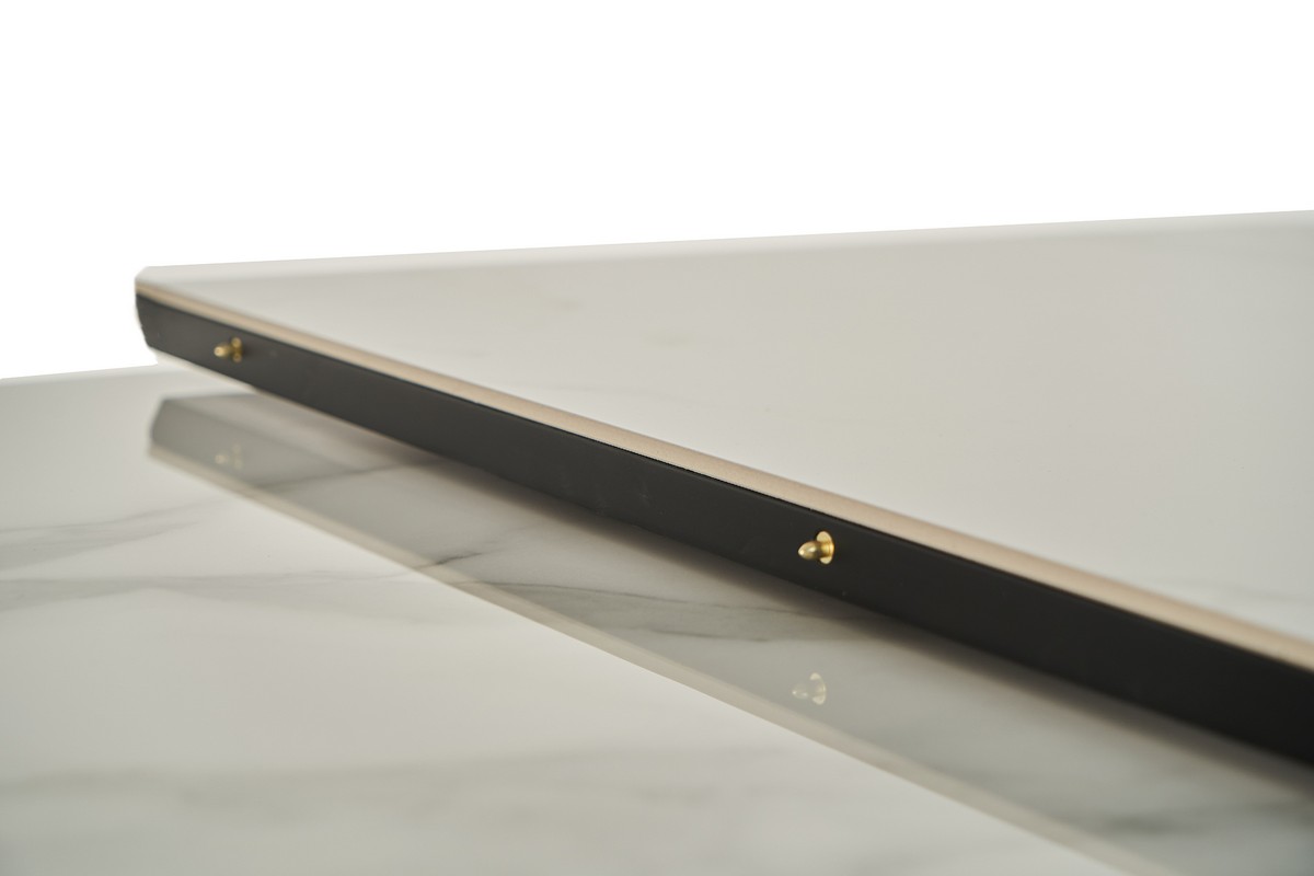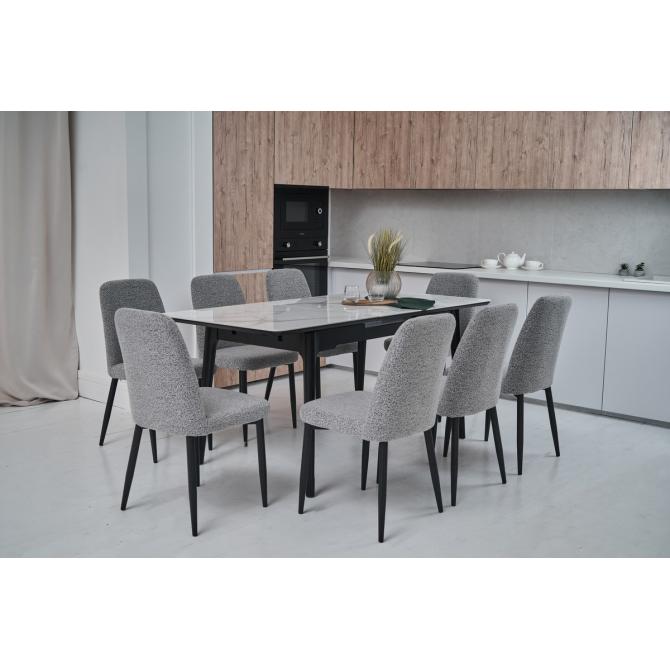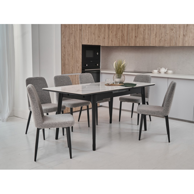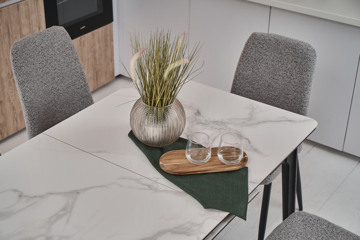 Стіл виготовлений з глянцевої кераміки та глянцевого МДФ, він привнесе в ваш інтер'єр витонченість і шарм. Автоматичний механізм розкладання дозволяє легко змінювати його розміри, роблячи його ідеальним для різних ситуацій - від сімейних обідів до вечірок з друзями.