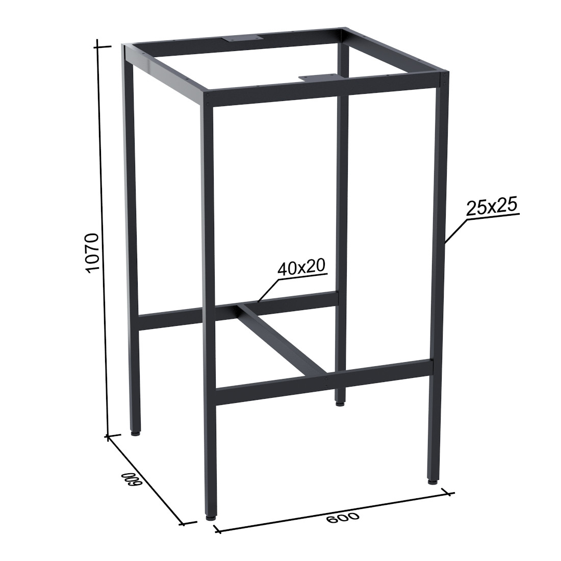 Розмір опори: 600х600х1070 мм. Опора пофарбована в чорний колір RAL 9011 порошковою фарбою, стійкою до стирання.