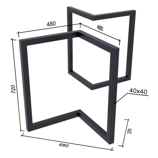 Ніжка зроблена з металевої труби профілем 40*40 мм. Вгорі опори є наскрізні отвори для кріплення до стільниці за допомогою саморізів по дереву.